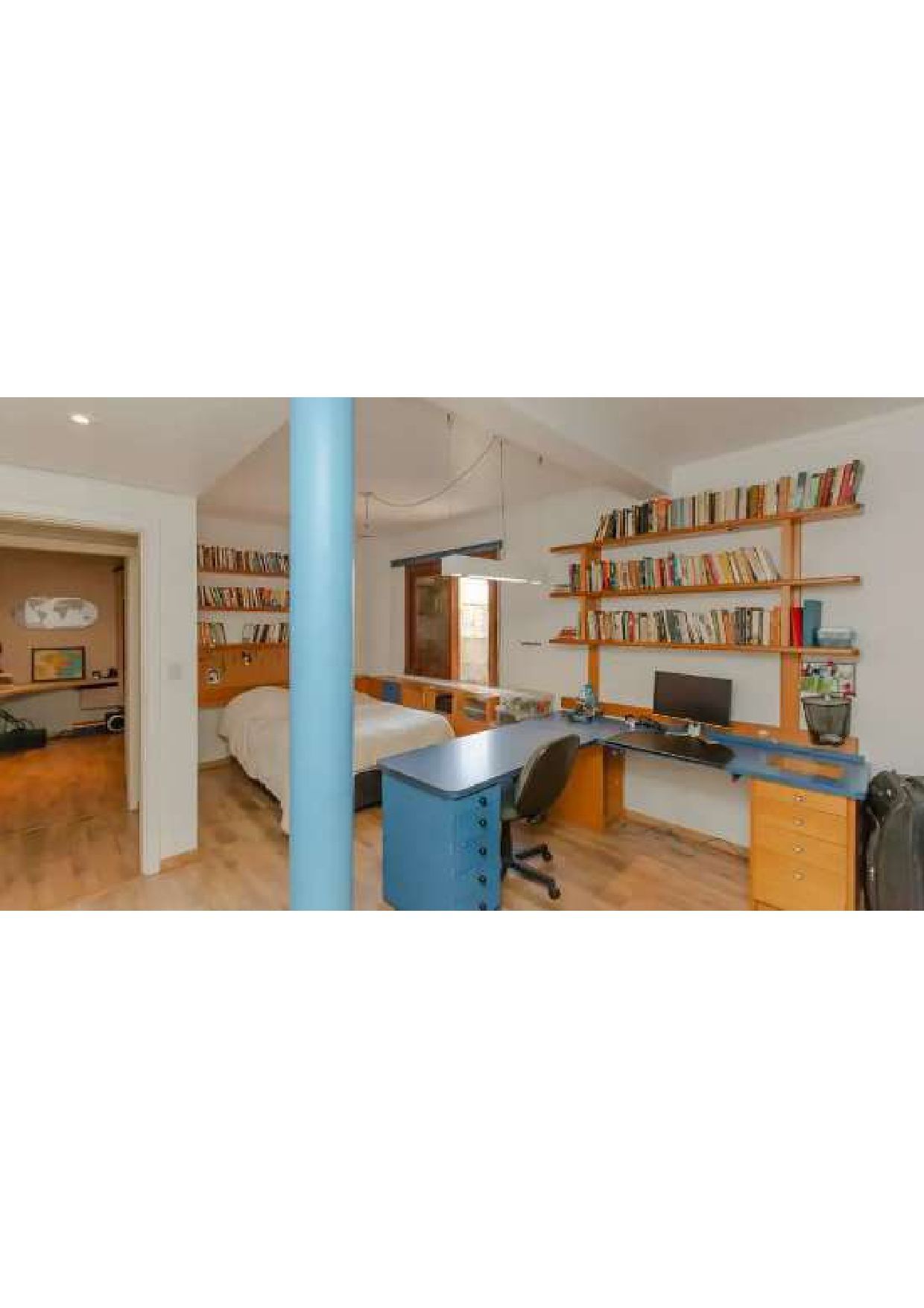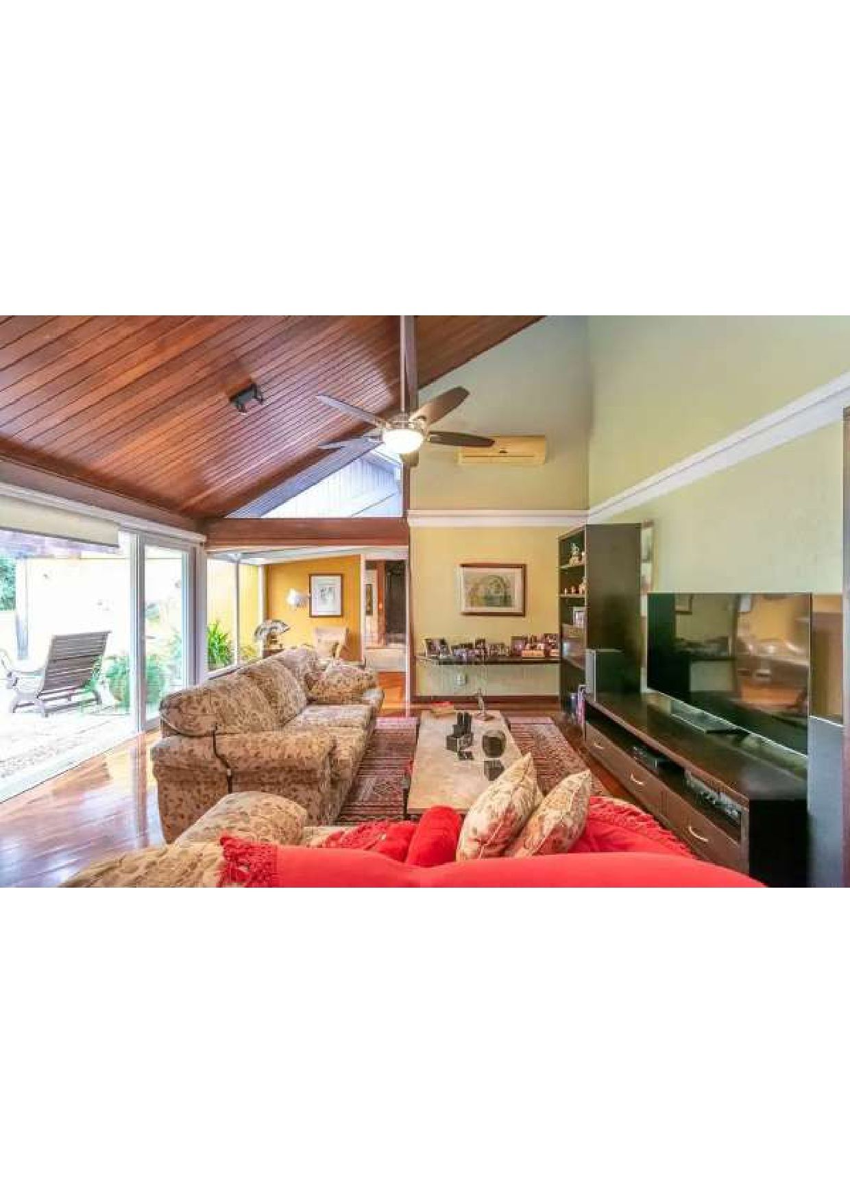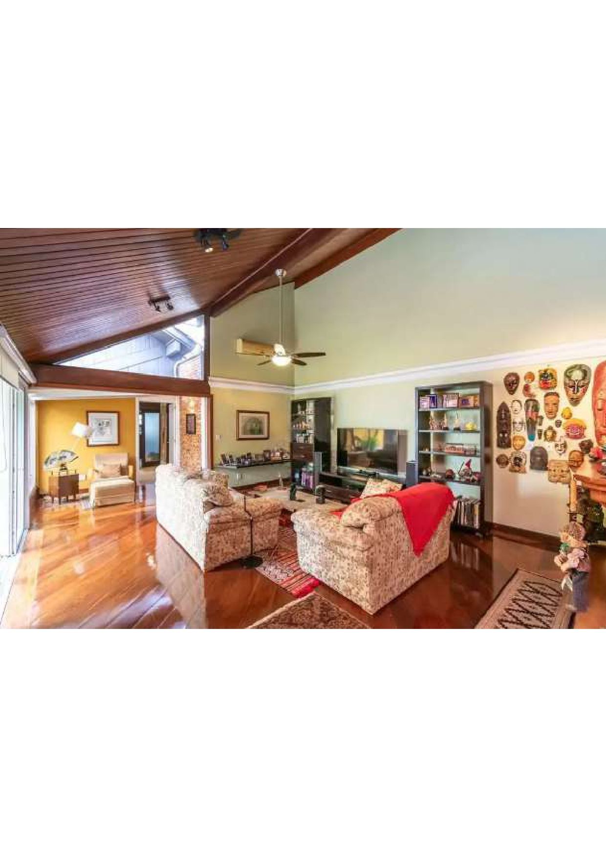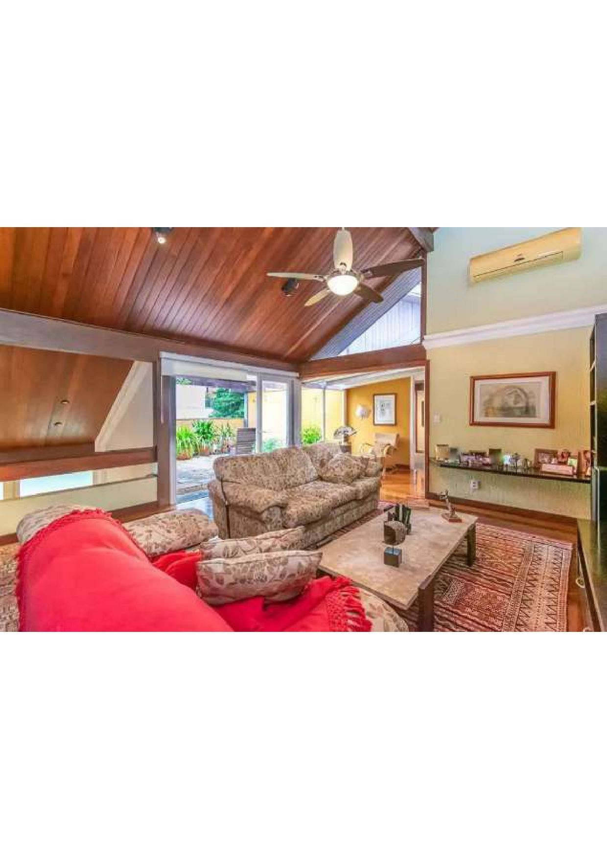 Hall de entrada, lavabo, living 3 ambientes com lareira com ótima luminosidade e muito sol, piso tabuão, cozinha/copa montada e dependência de emprega completa.