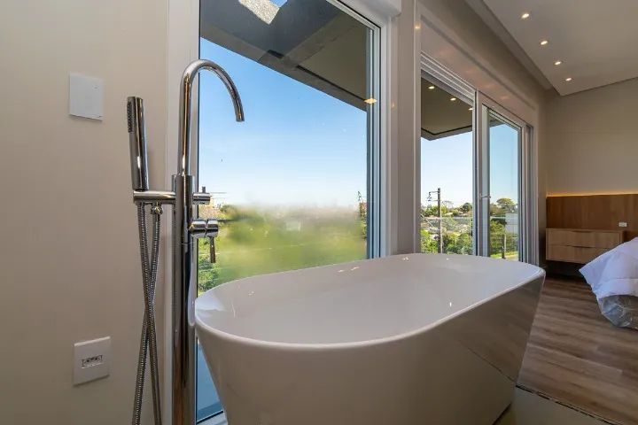 Automação em toda casa, aberturas em PVC com persianas automatizadas com controle direto do seu celular ou tablet.