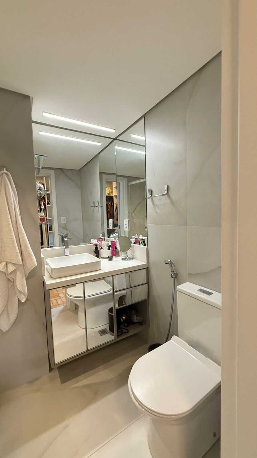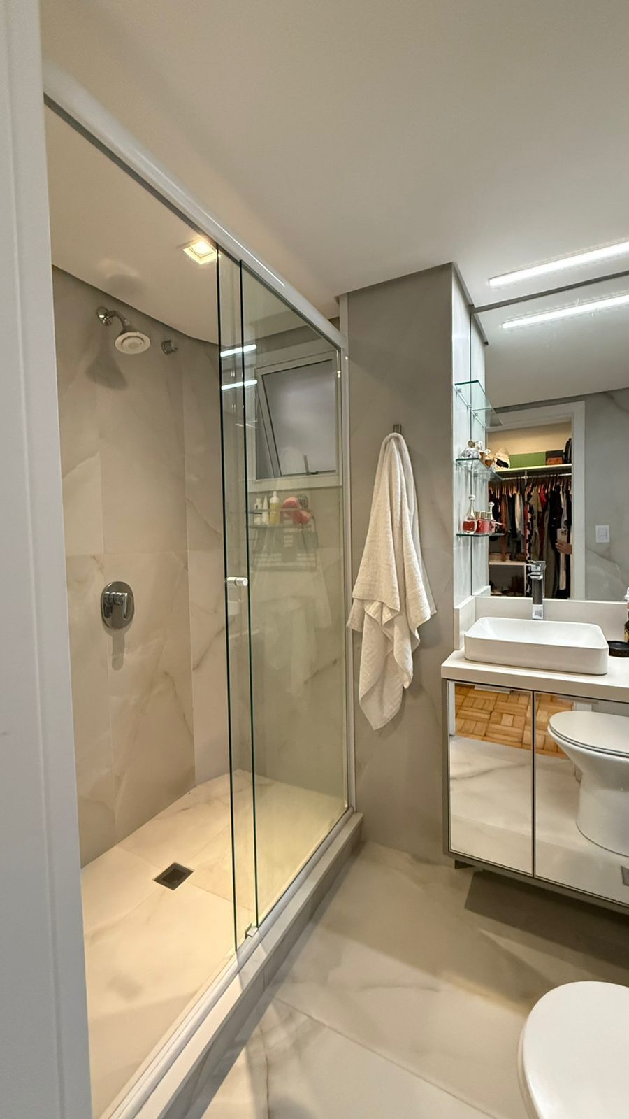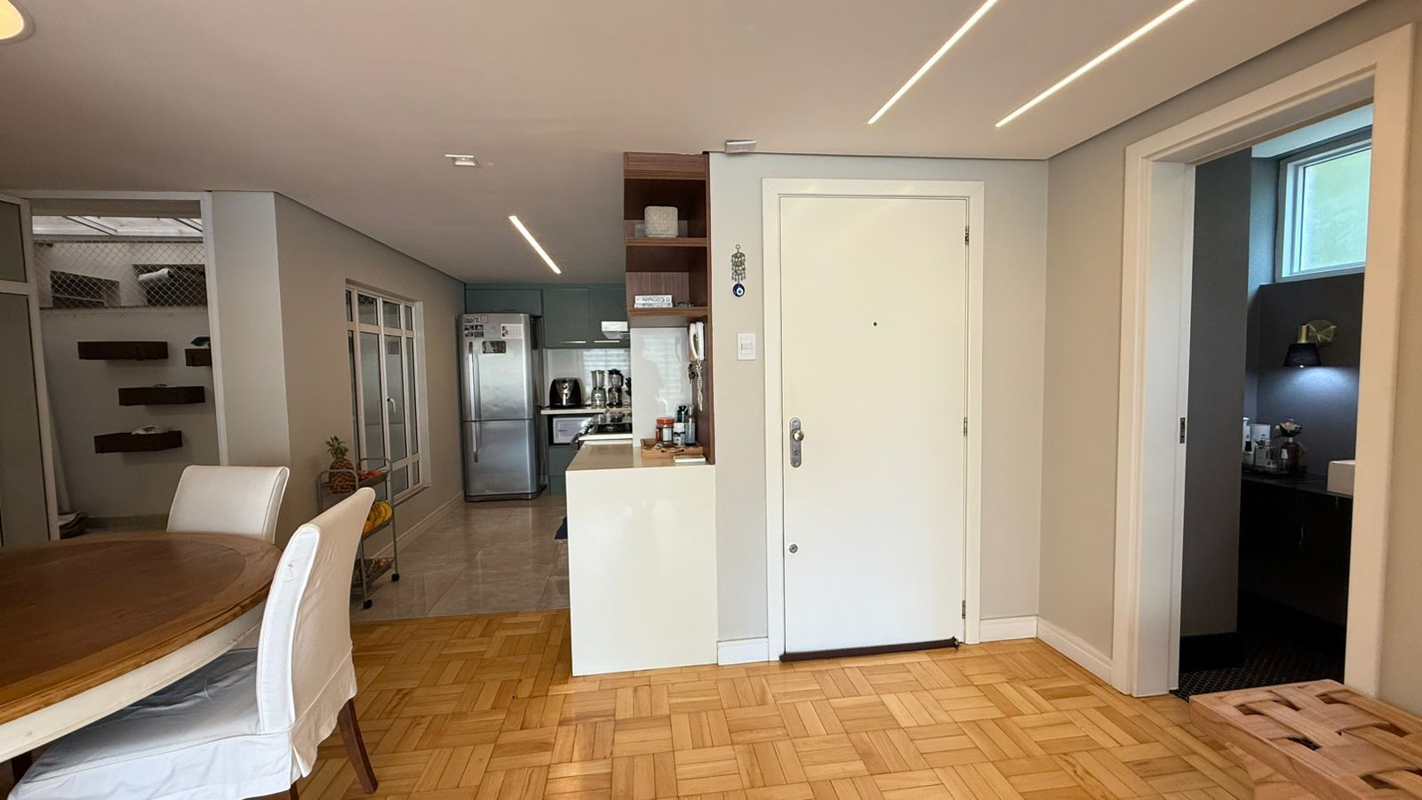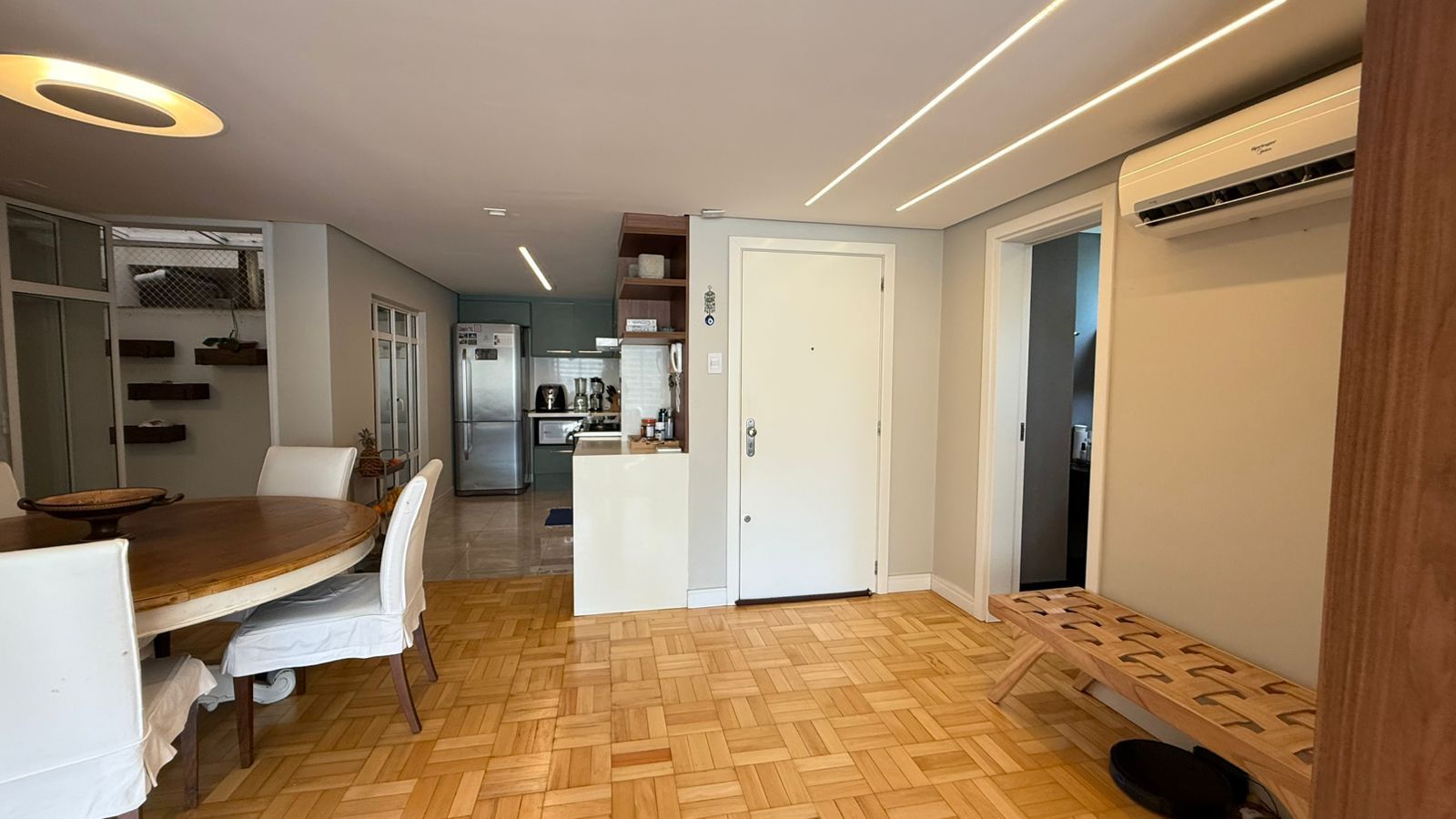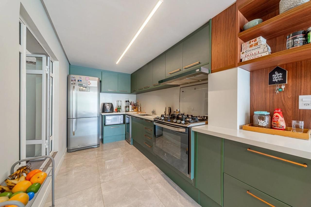 Possui 3 dormitórios, sendo 1 suíte com closet, a área íntima conta com banheiro social, o Living amplo e iluminado, com luz natural durante todo o dia. Cozinha planejada, área de serviço separada e lavabo.