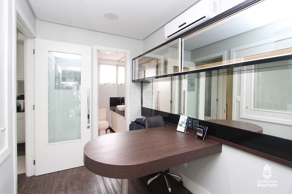 Boletto Imóveis aluga conjunto comercial composto por duas salas mobiliadas, Localizado no bairro Menino Deus, imediações com o Supermercado Nacional, Tribunal Regional Eleitoral e R. Gonçalves Dias. Prédio composto por 1 torre de 6 pavimentos, sendo 6 unidades por andar, portaria 12hs e elevador. Serviço de limpeza, sistema de segurança, salão de eventos com churrasqueira e terraço.Mobiliada, comporta de 06 a 10 pessoas trabalhando. Possui recepção, cozinha com micro e geladeira, sala de reunião, 2 escritórios/ gabinetes privativos, 1 espaçoso com sofá e TV, outro menor. Possui 2 banheiros.Sala com 4 estações de trabalho, armários sob medida com gavetões para arquivos suspenso, outros armários funcionais.04 Splits instalados.Apesar do Bluetooth, os ambientes recebem cabos de rede/telefone que ficam ligados no armário do servidor.Sistema de câmeras de vídeo segurança na porta externa/corredor e em todos os ambientes. Com gravador de imagem, exceto no banheiro e na copa.1 vaga coberta