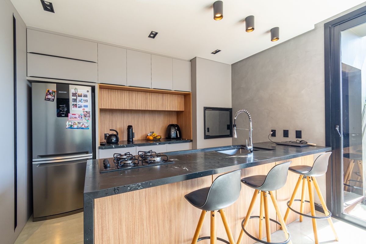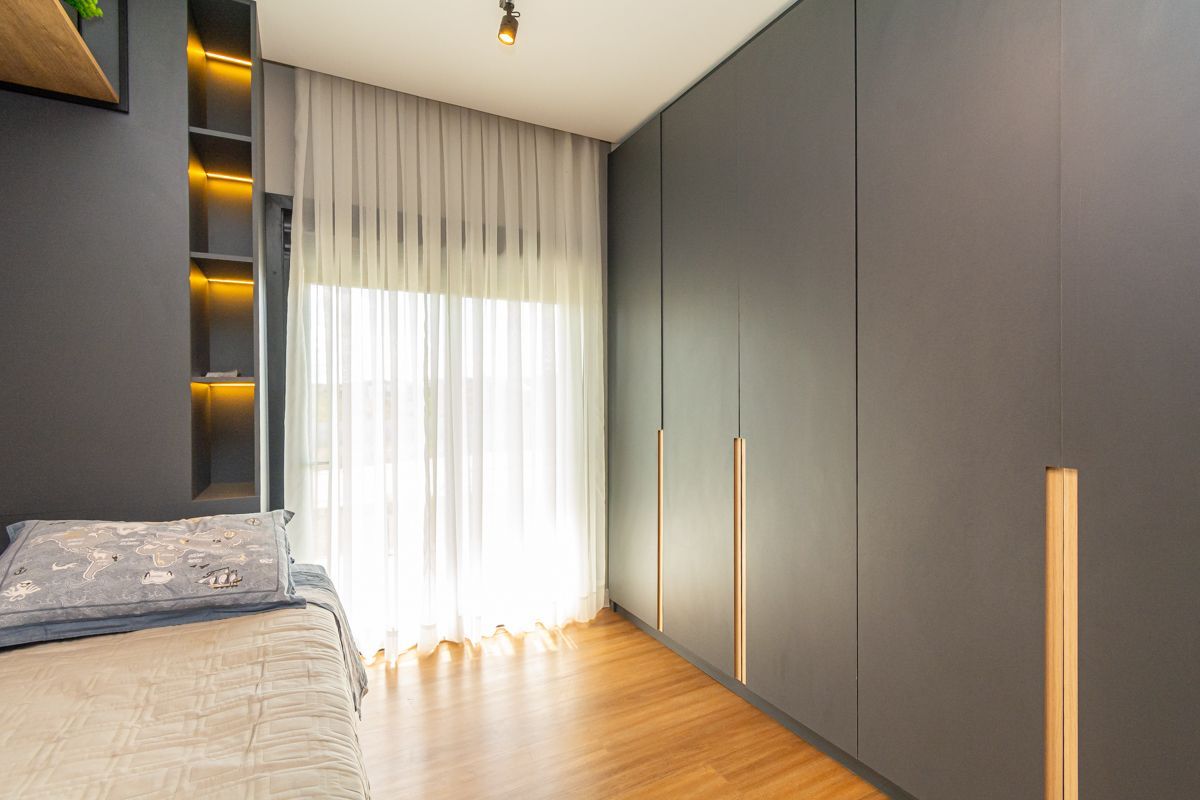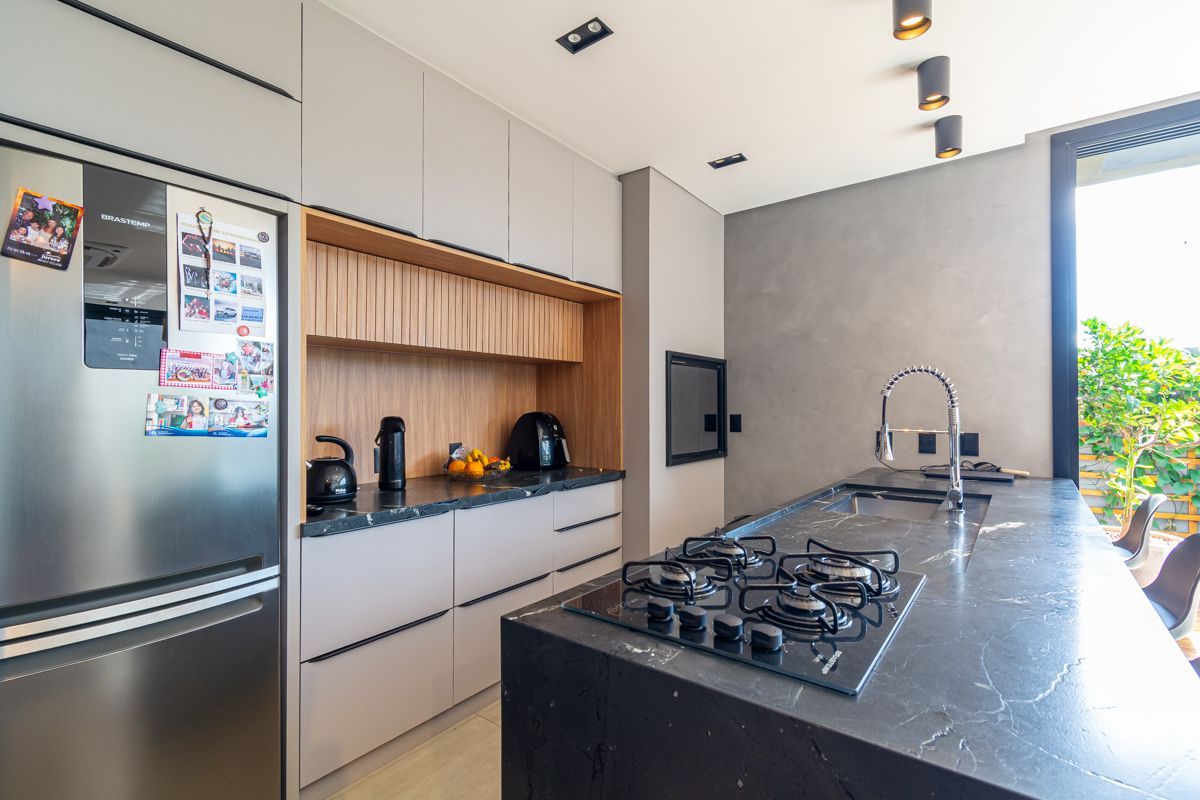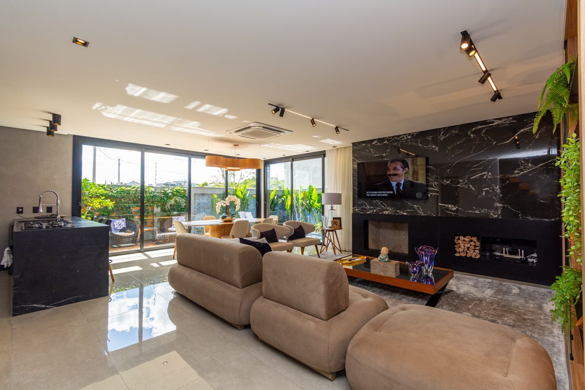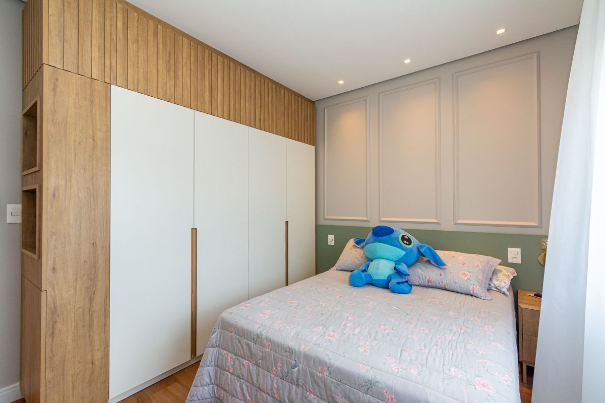 Será entregue totalmente equipada: cozinha planejada com ilha e eletrodomésticos, marcenaria na sala, ar-condicionado instalado, lavanderia montada, suíte com closet completo e três dormitórios mobiliados.
