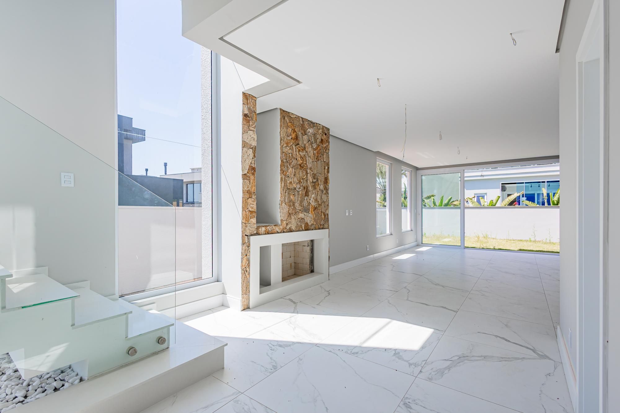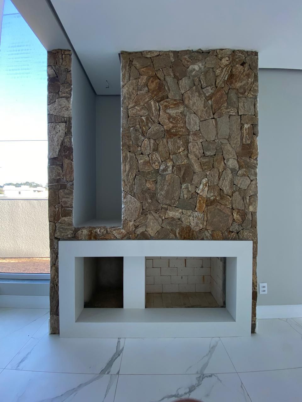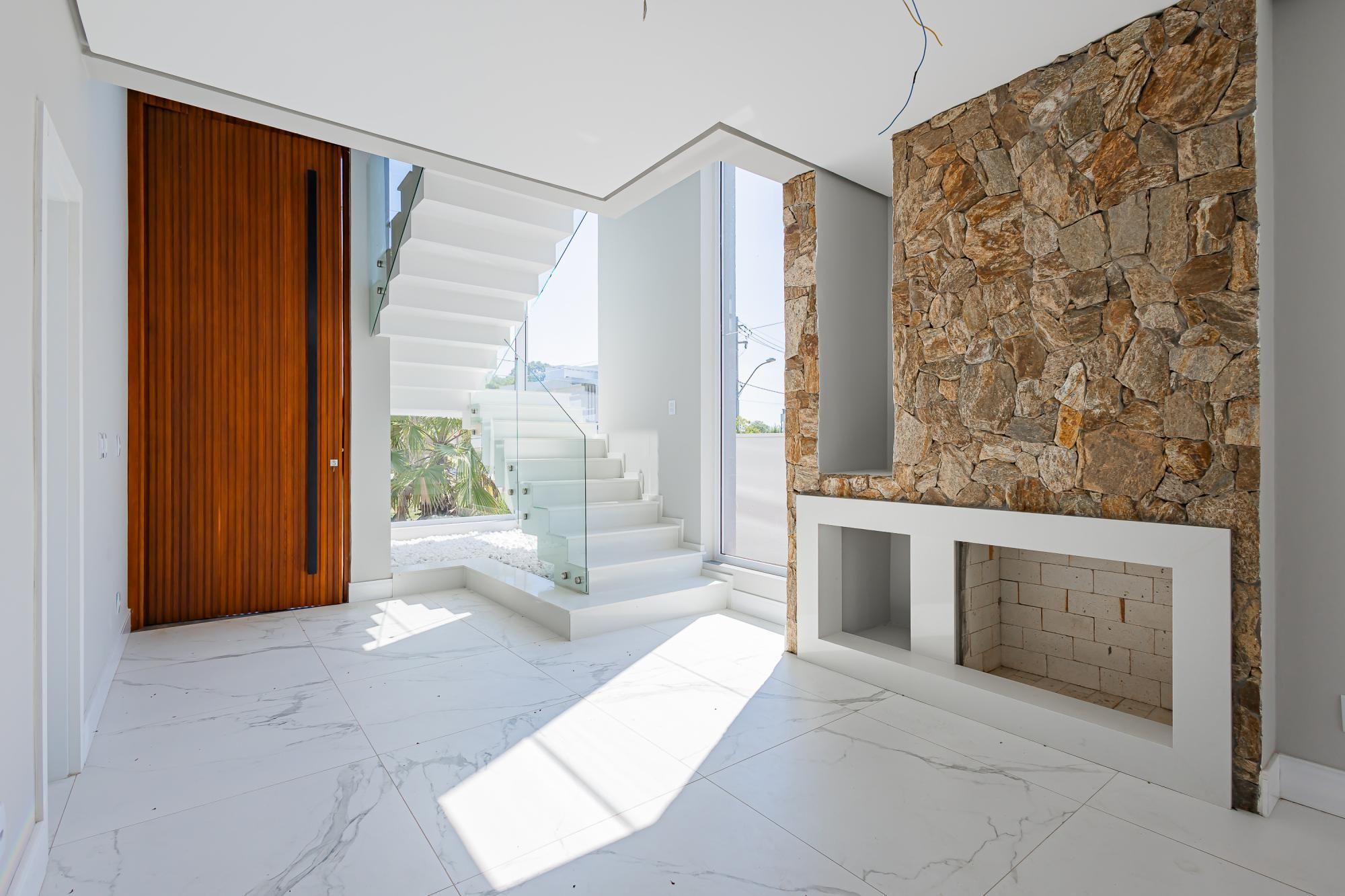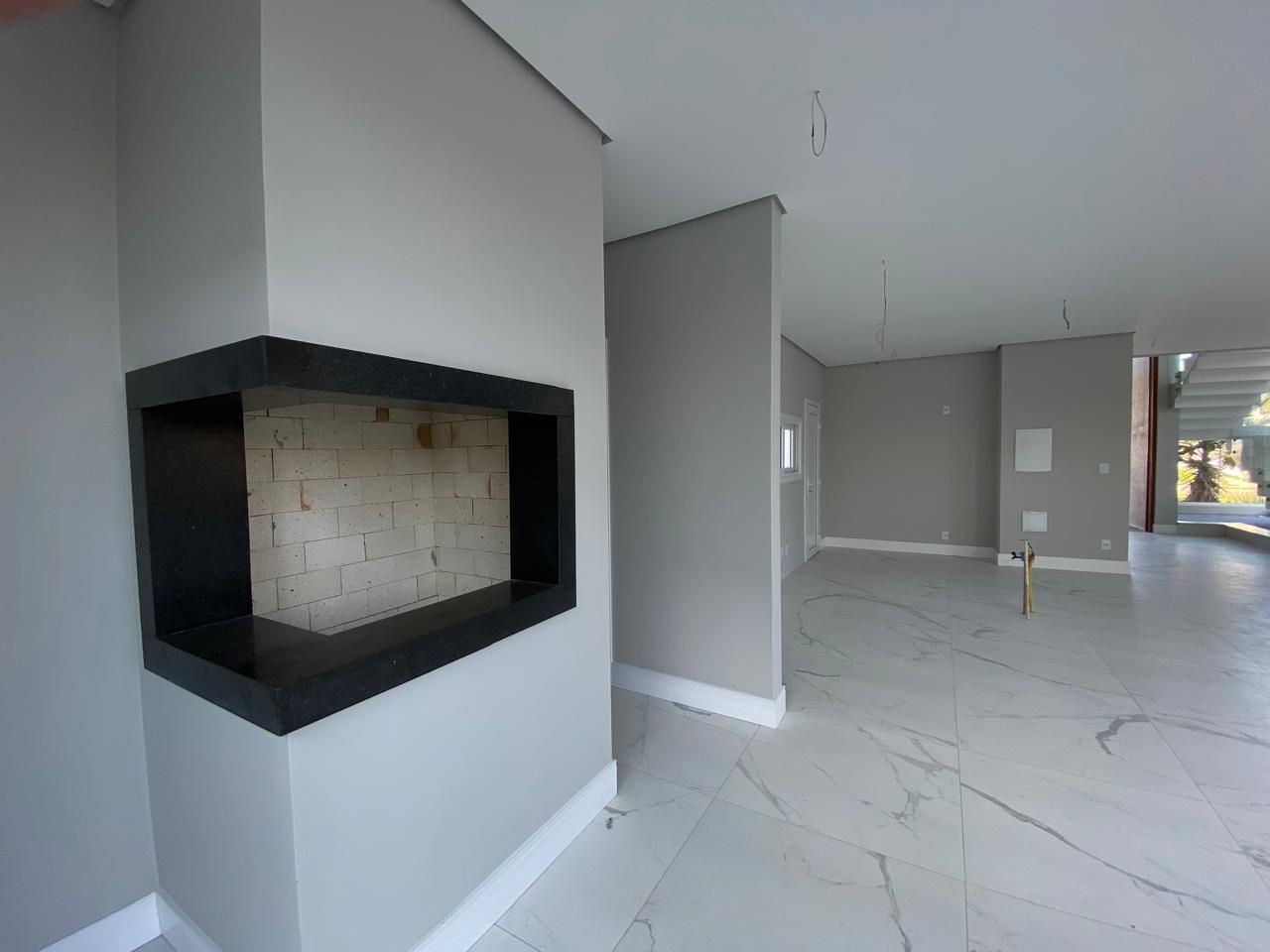 Residência moderna com 3 dormitórios, todos suítes com sacada. Conta com living amplo em dois ambientes com lareira, integrado à cozinha, além de um elegante espaço gourmet com churrasqueira. Dispõe também de lavabo, escritório e área de serviço.