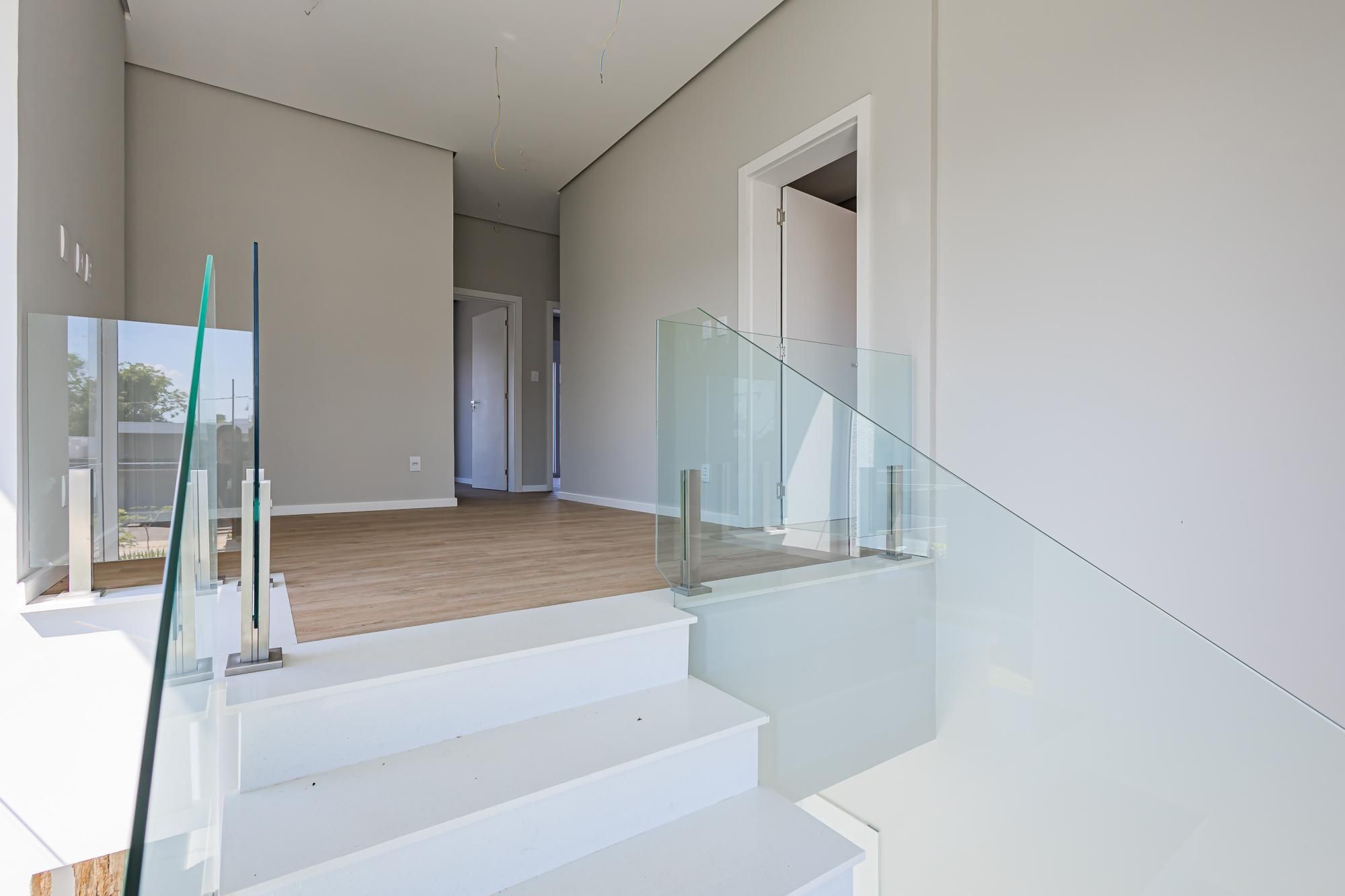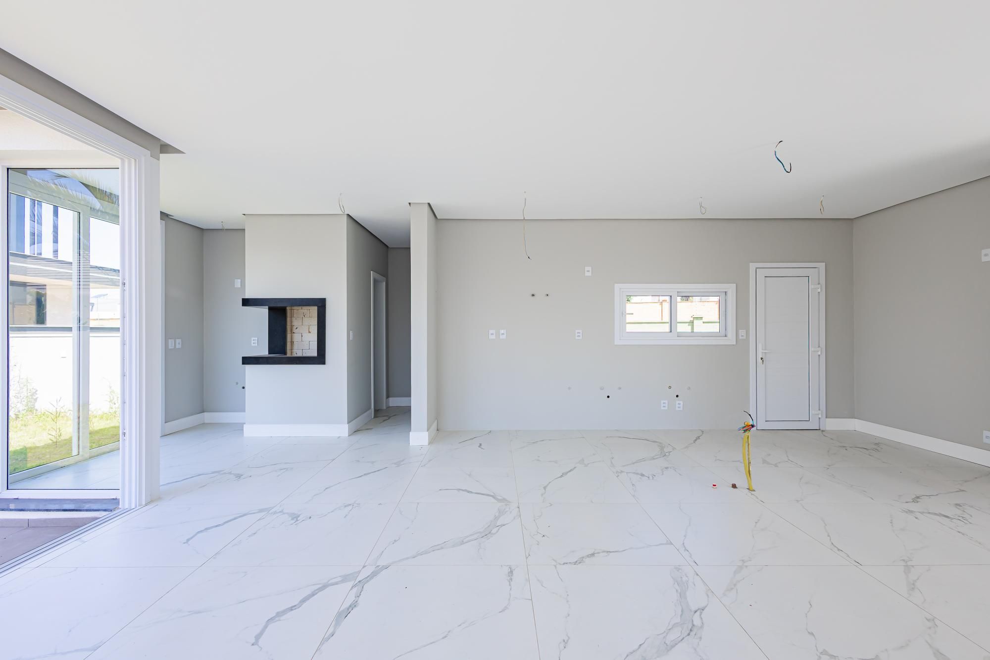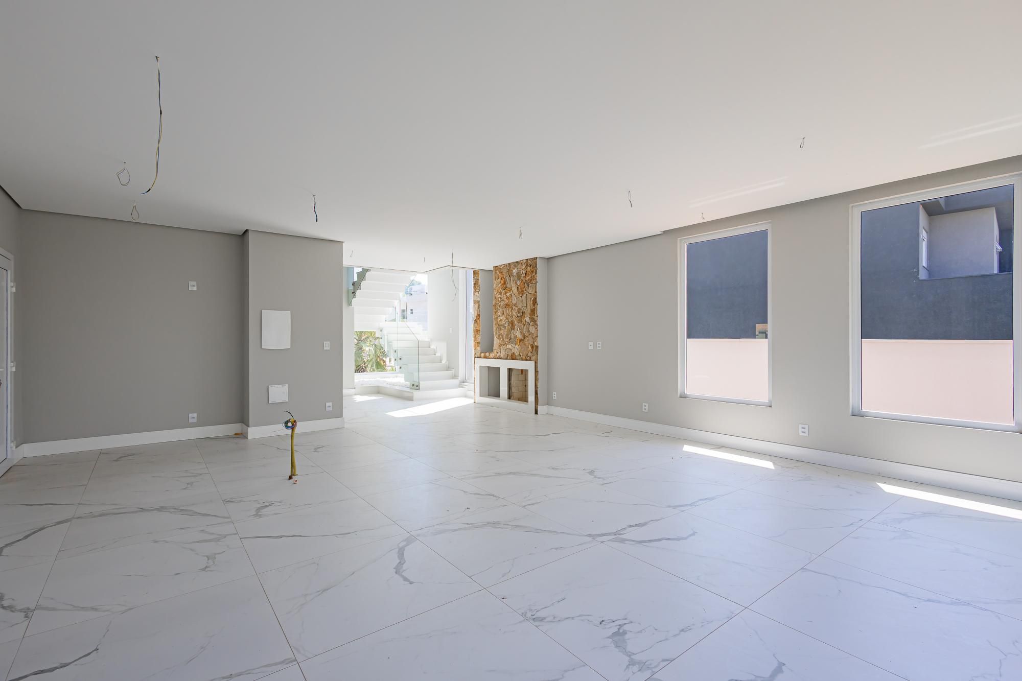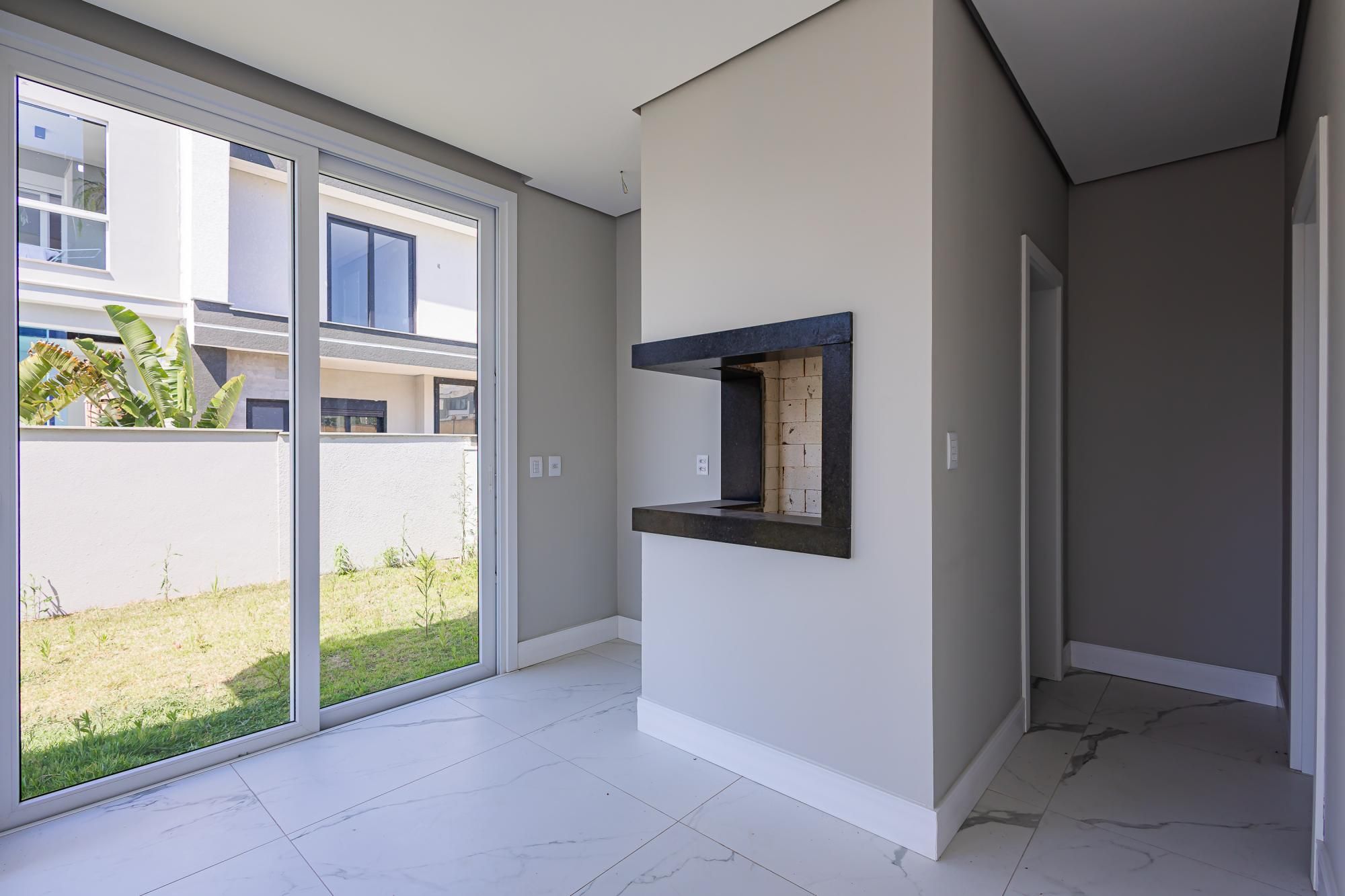 Residência moderna com 3 dormitórios, todos suítes com sacada. Conta com living amplo em dois ambientes com lareira, integrado à cozinha, além de um elegante espaço gourmet com churrasqueira. Dispõe também de lavabo, escritório e área de serviço.
