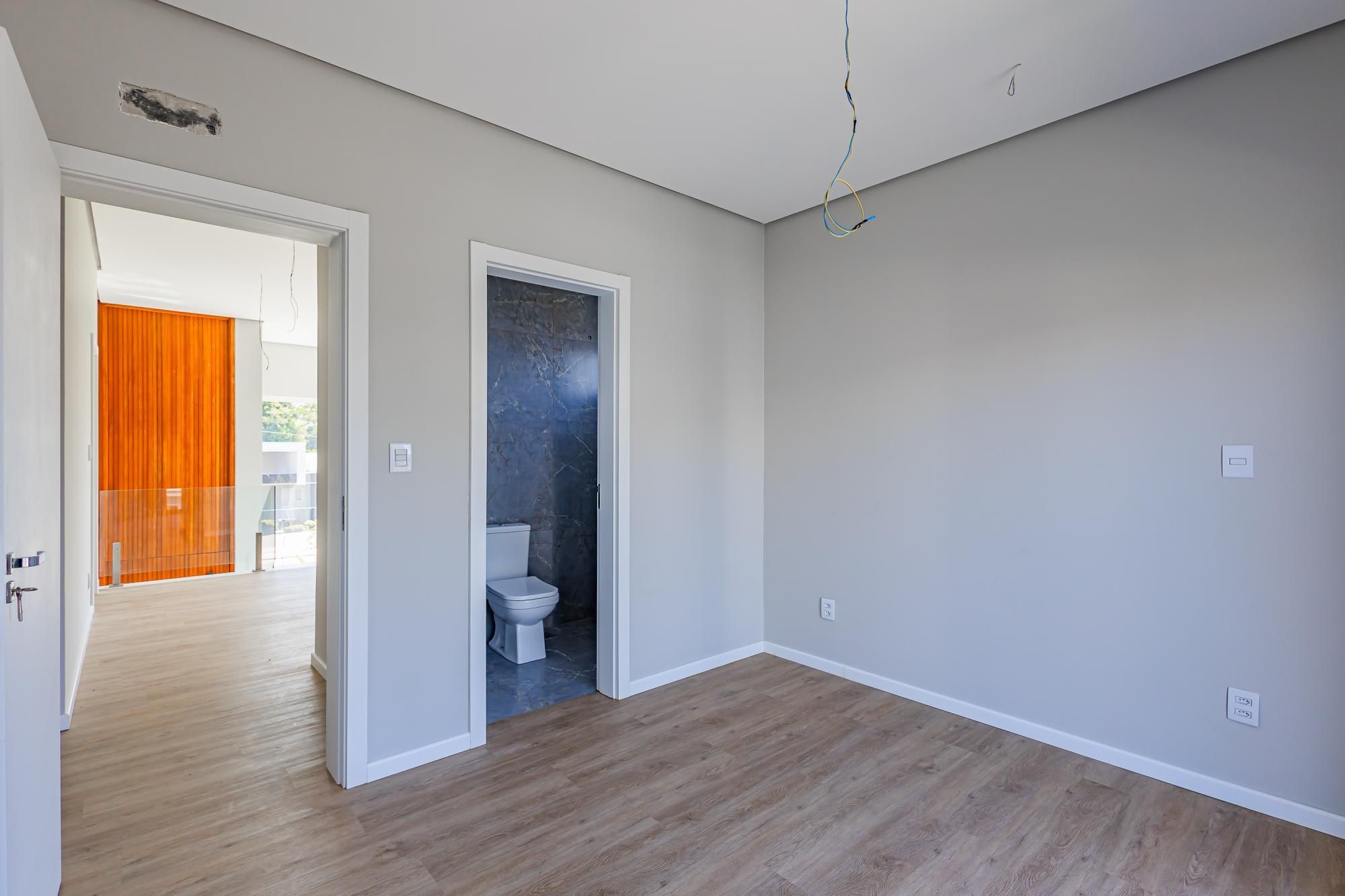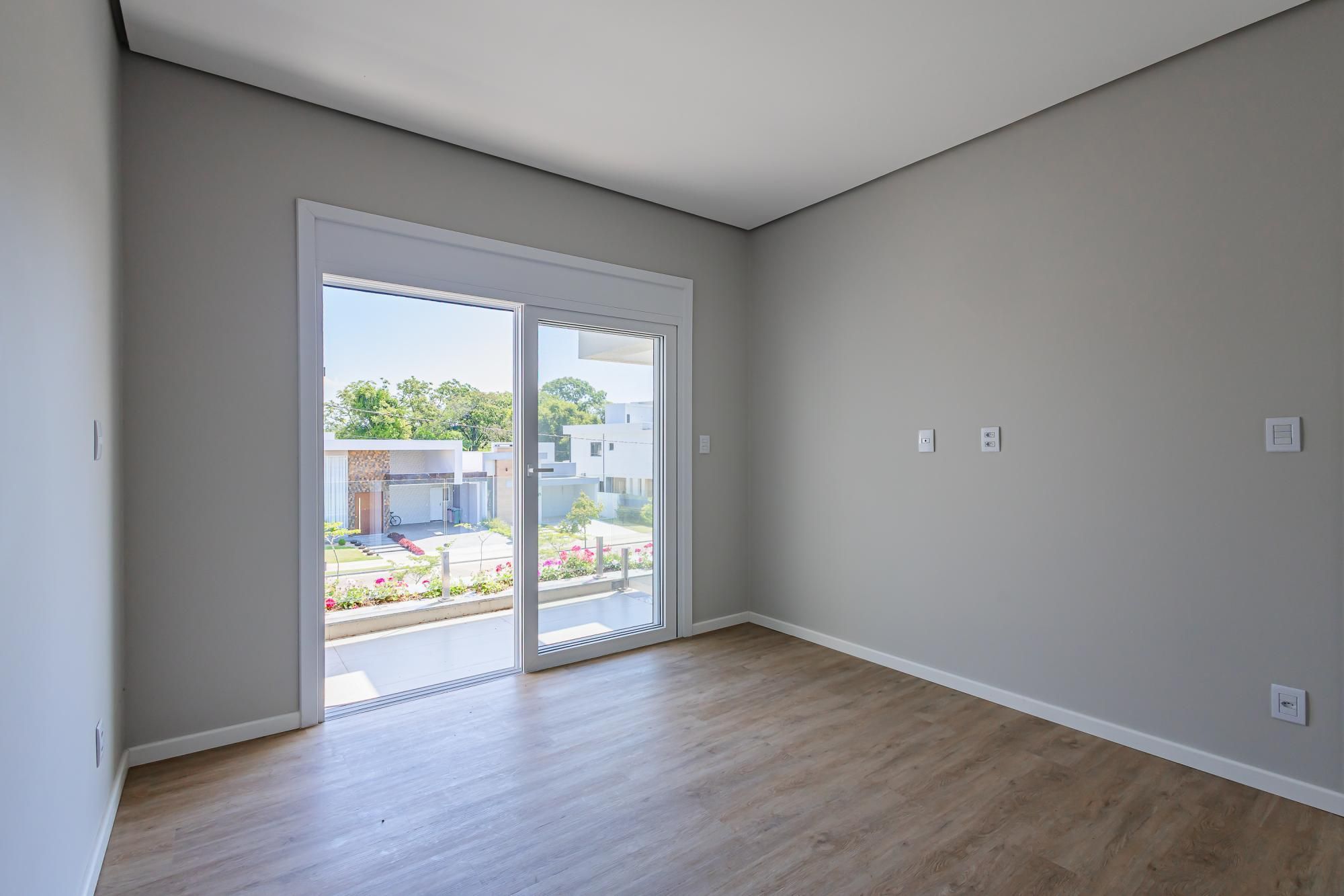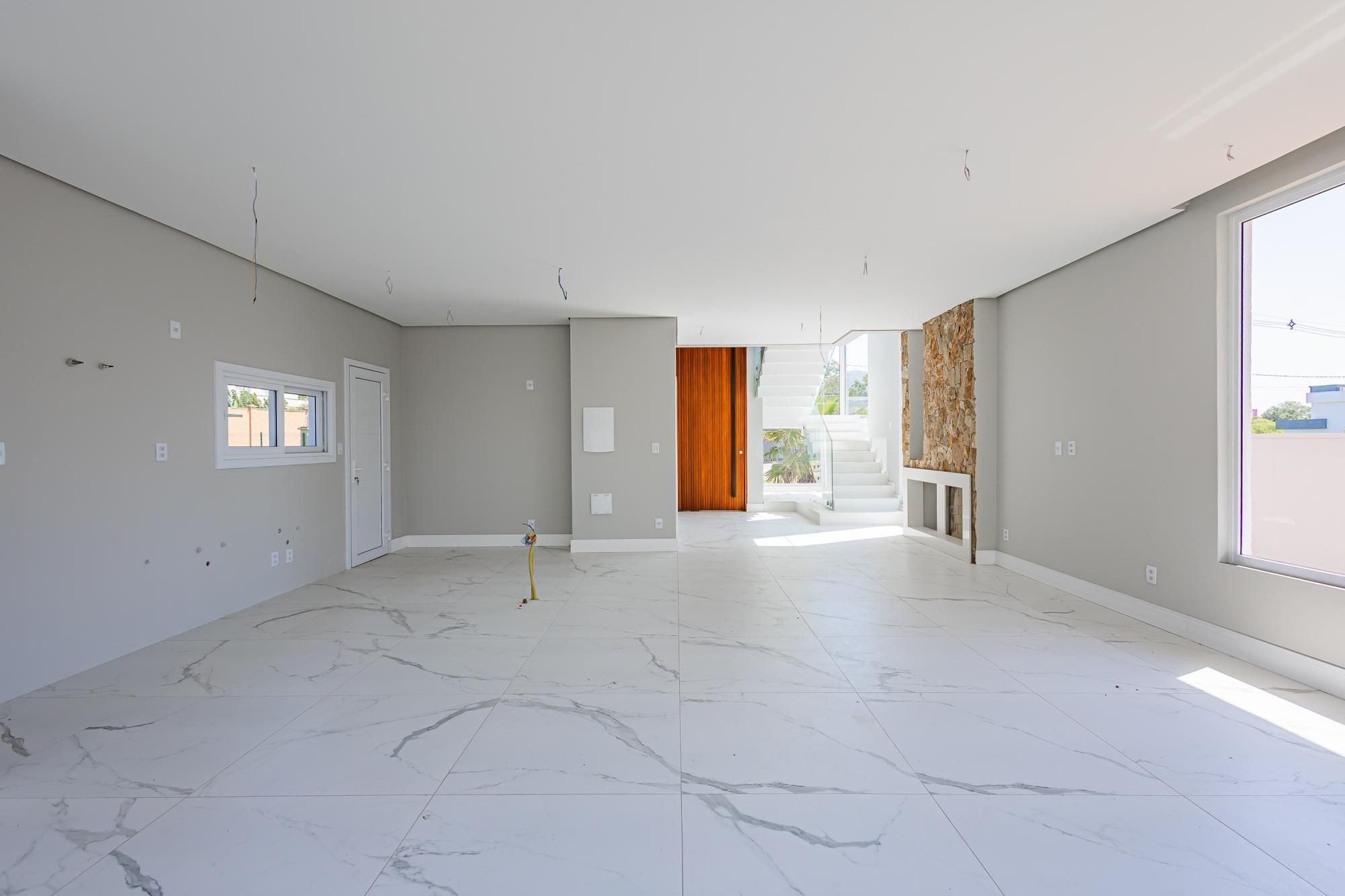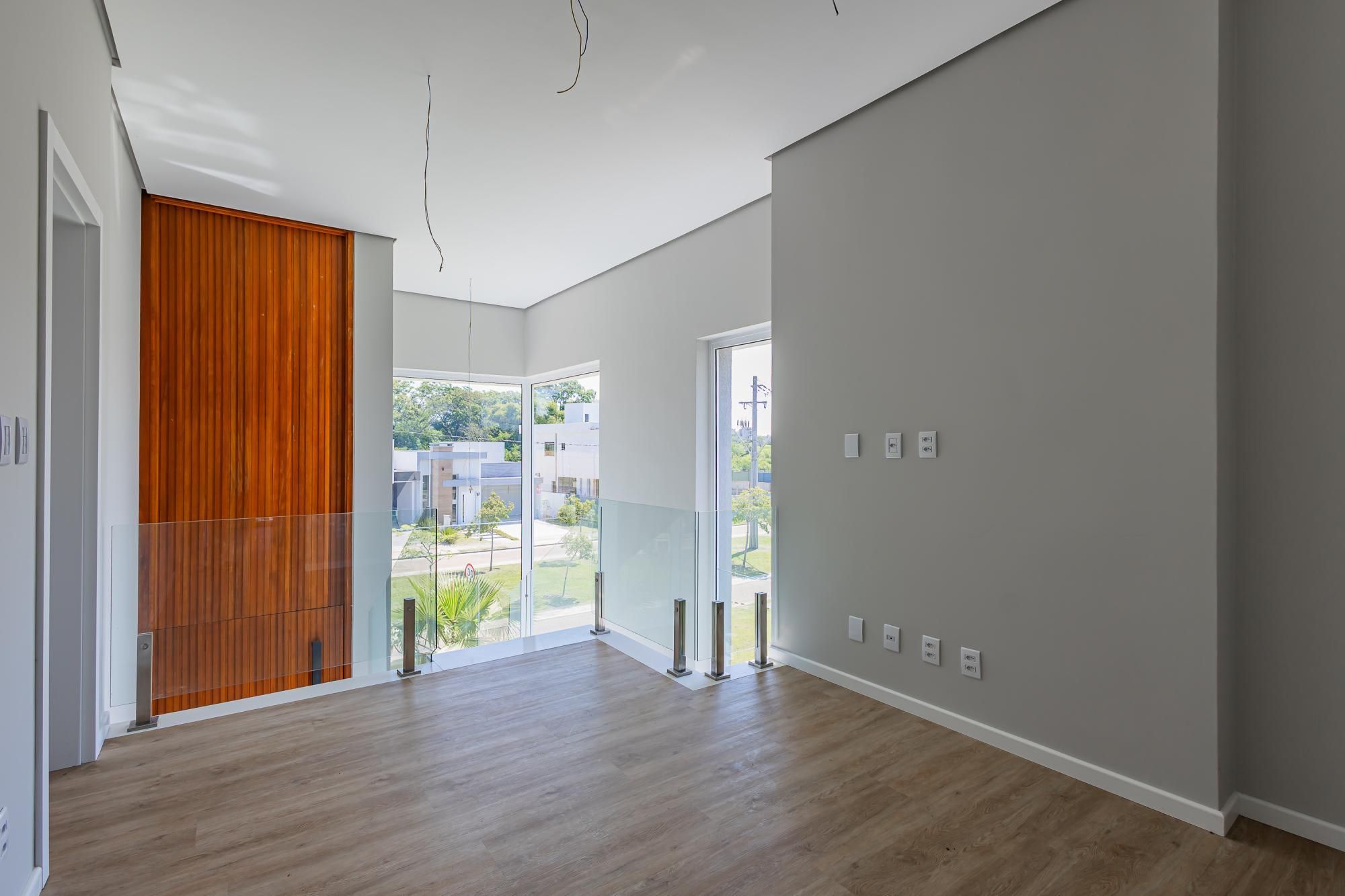 Residência moderna com 3 dormitórios, todos suítes com sacada. Conta com living amplo em dois ambientes com lareira, integrado à cozinha, além de um elegante espaço gourmet com churrasqueira. Dispõe também de lavabo, escritório e área de serviço.