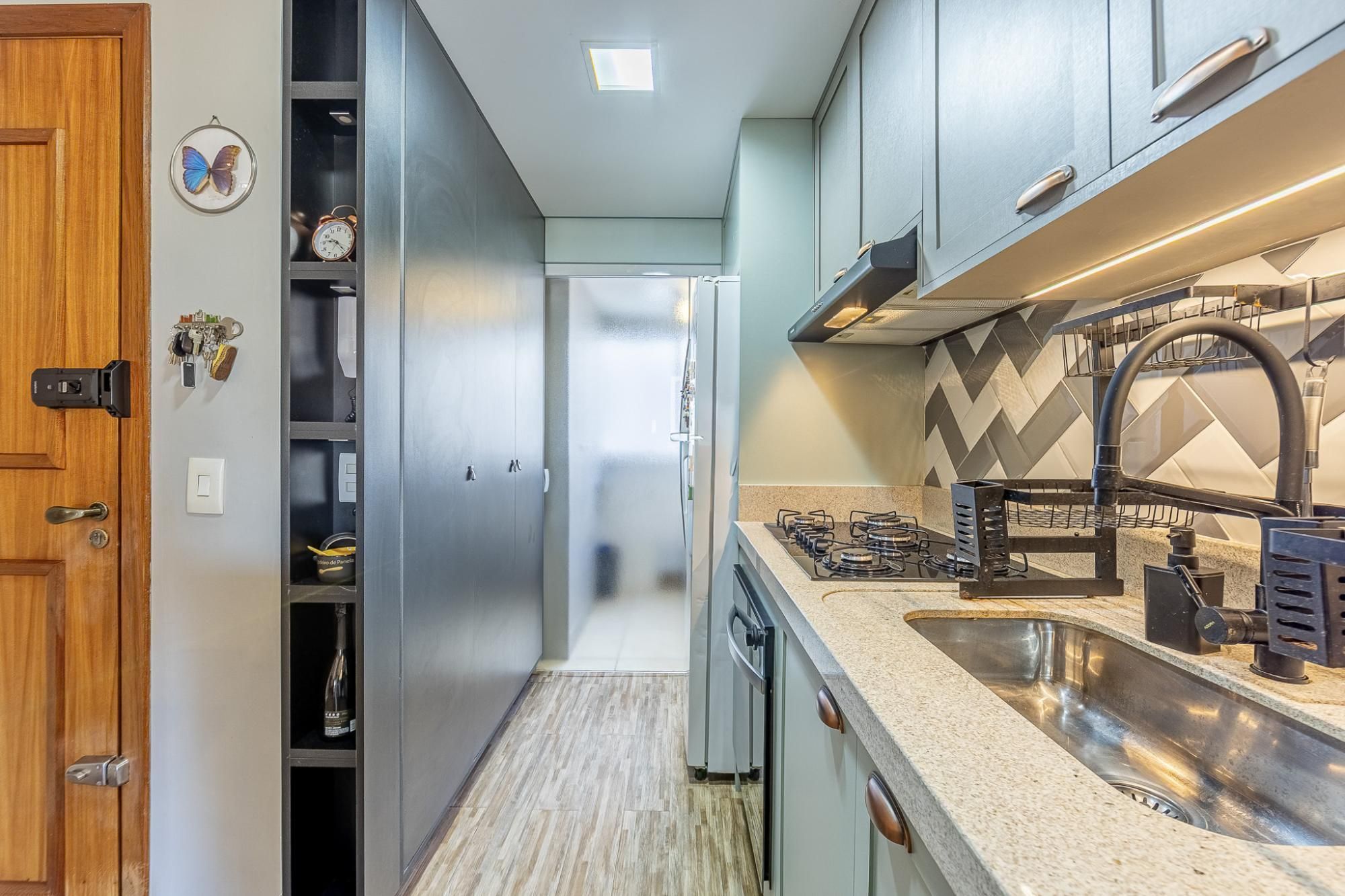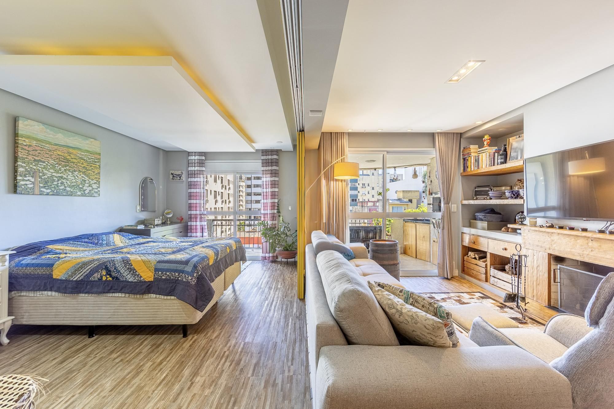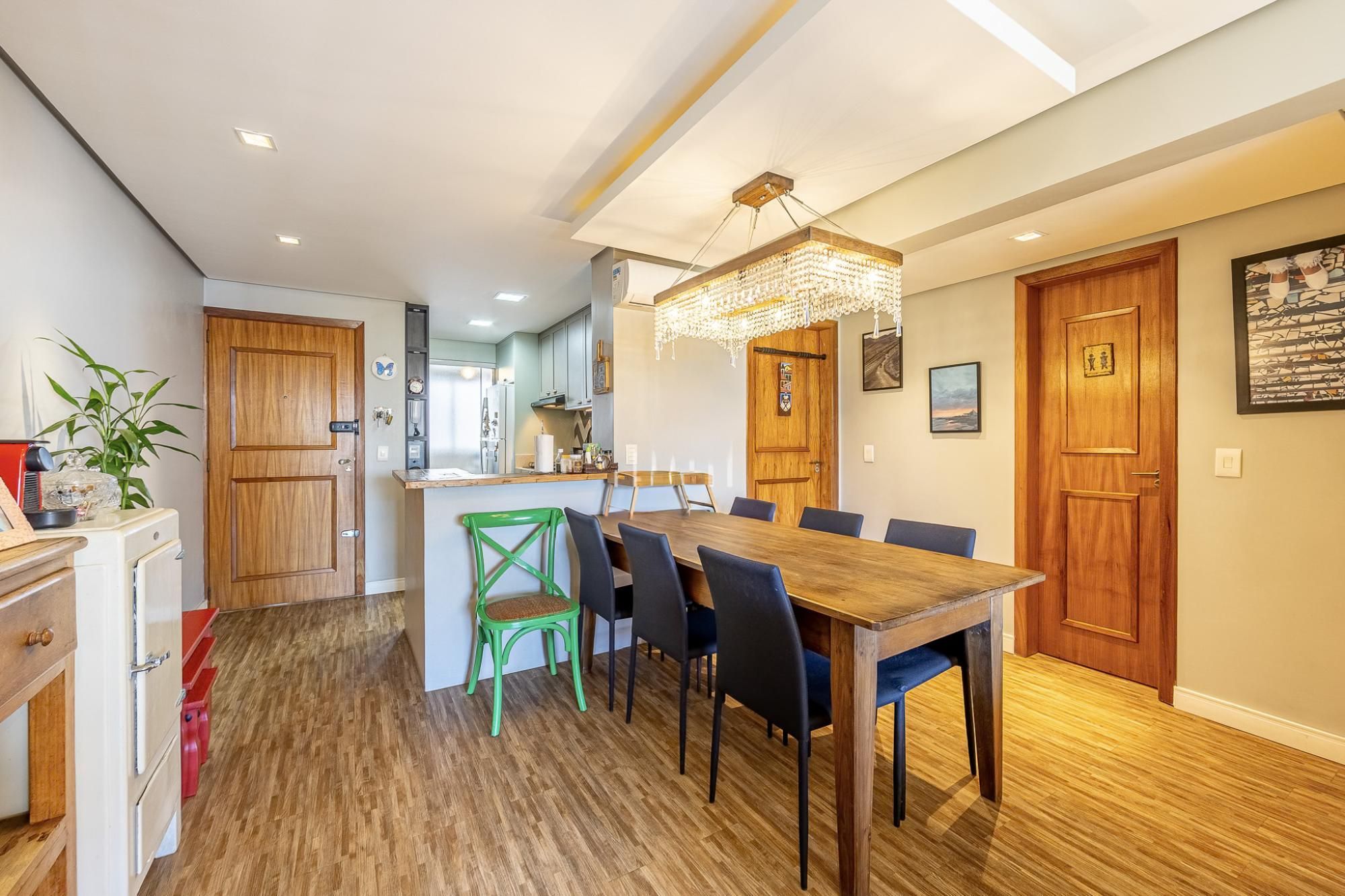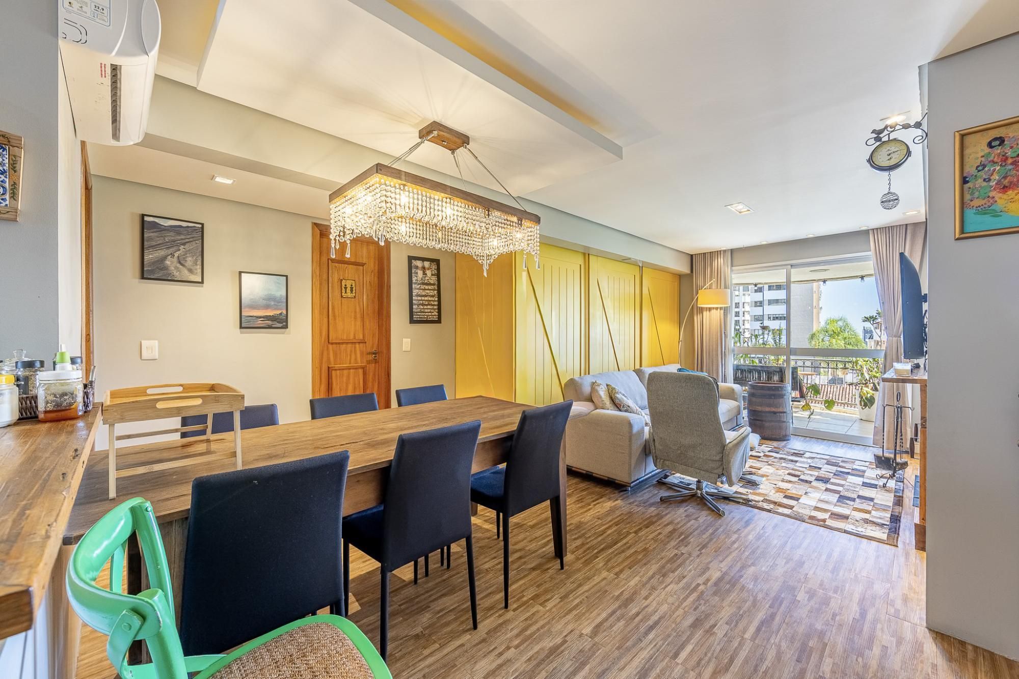 Apartamento em andar alto com 83 m² de área privativa com 2 dormitórios sendo 1 suíte, banheiro social, living amplo para 2 ambientes com lareira e sacada com churrasqueira, cozinha americana planejada com área de serviço. Possui 1 vaga de garagem coberta e escriturada.