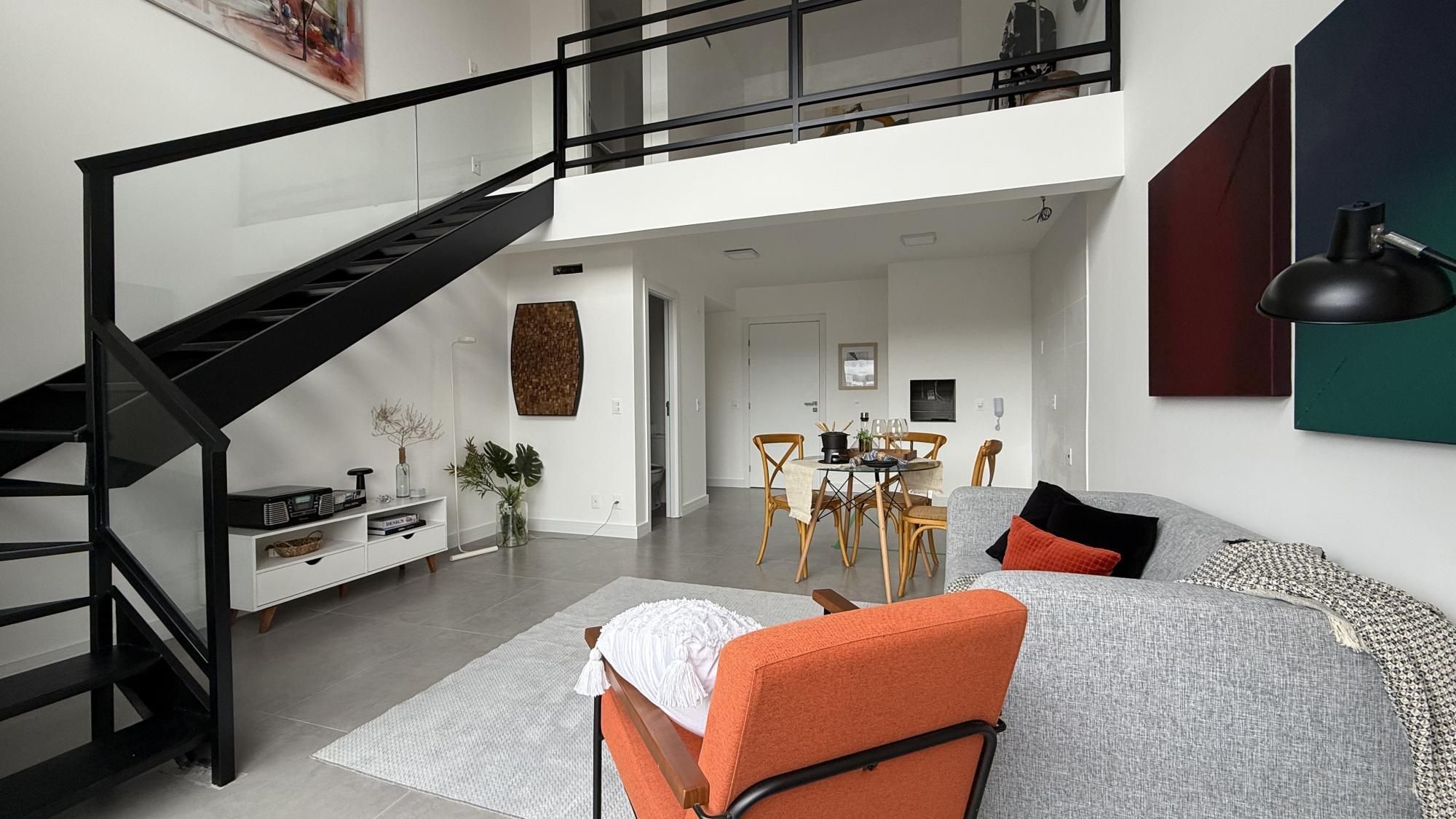 Apartamento duplex em andar alto, 01 suíte, 58,62 de área privativa e 01 vaga de garagem escriturada e coberta.