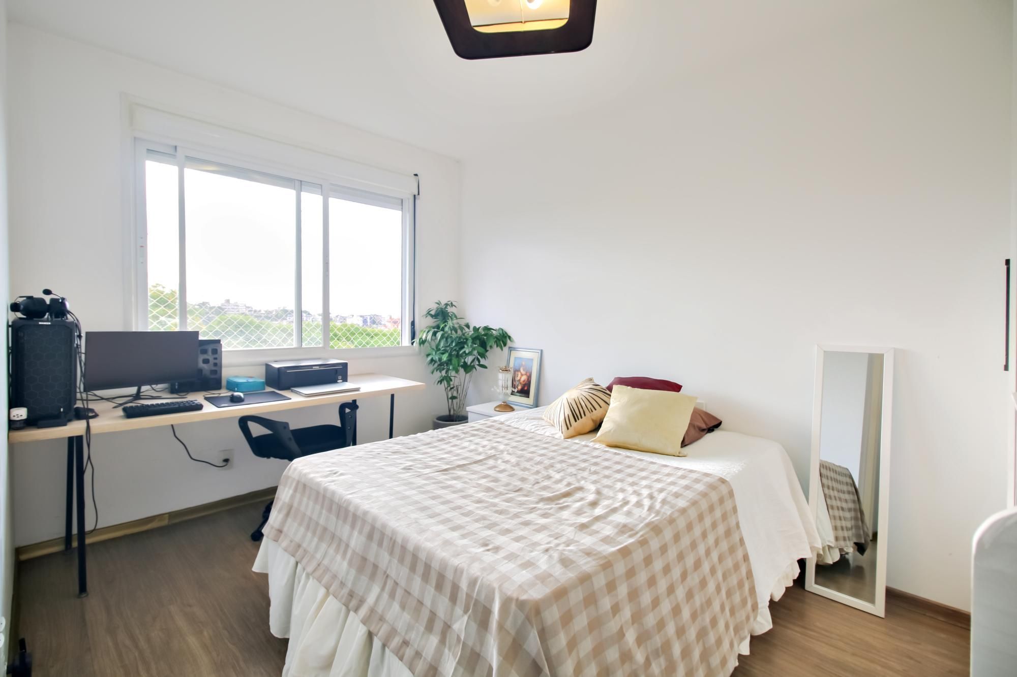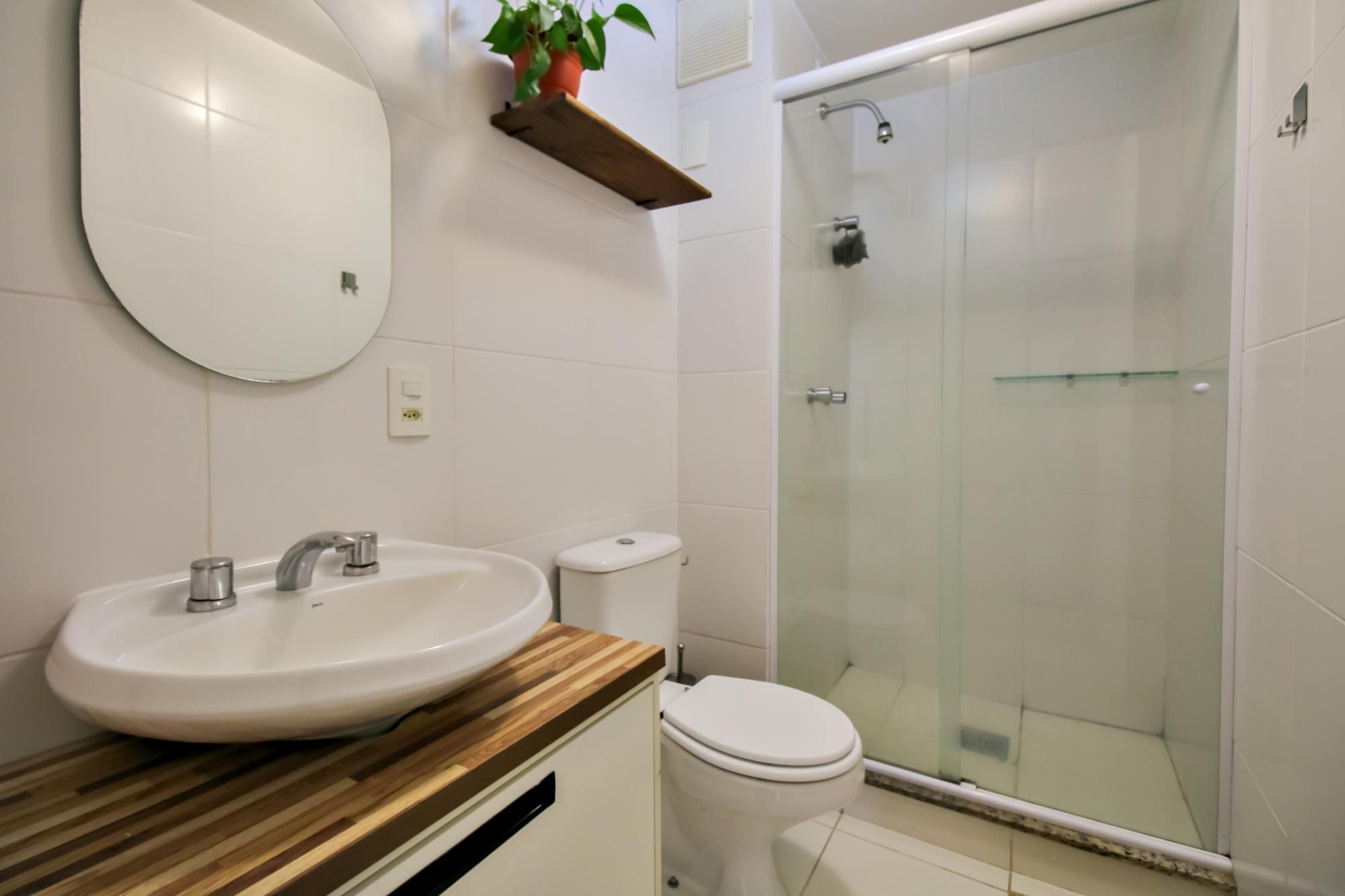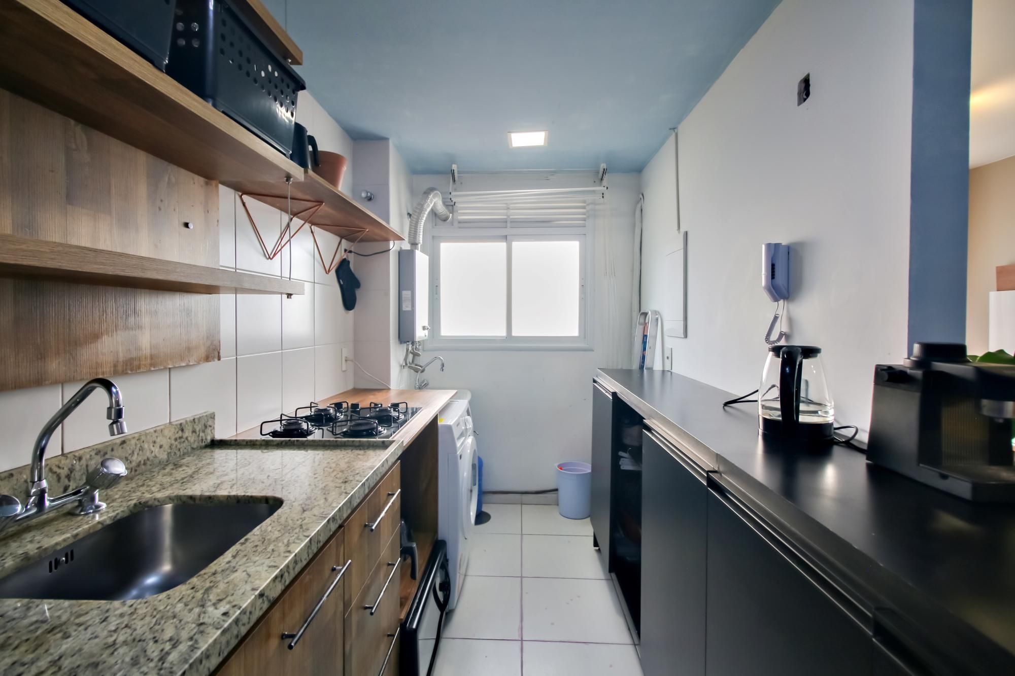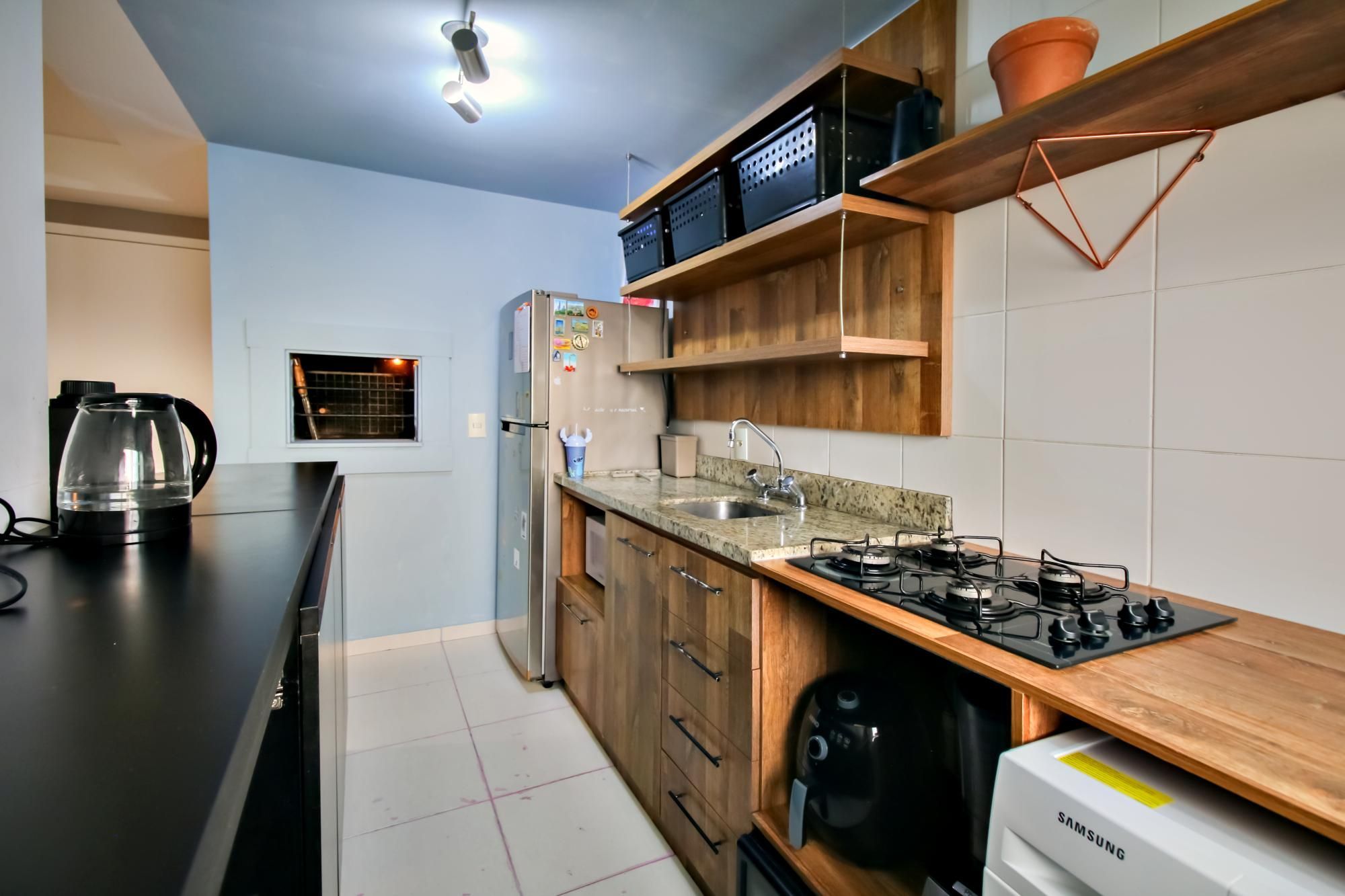 68 m², suíte, churrasqueira e uma vaga escriturada e coberta.