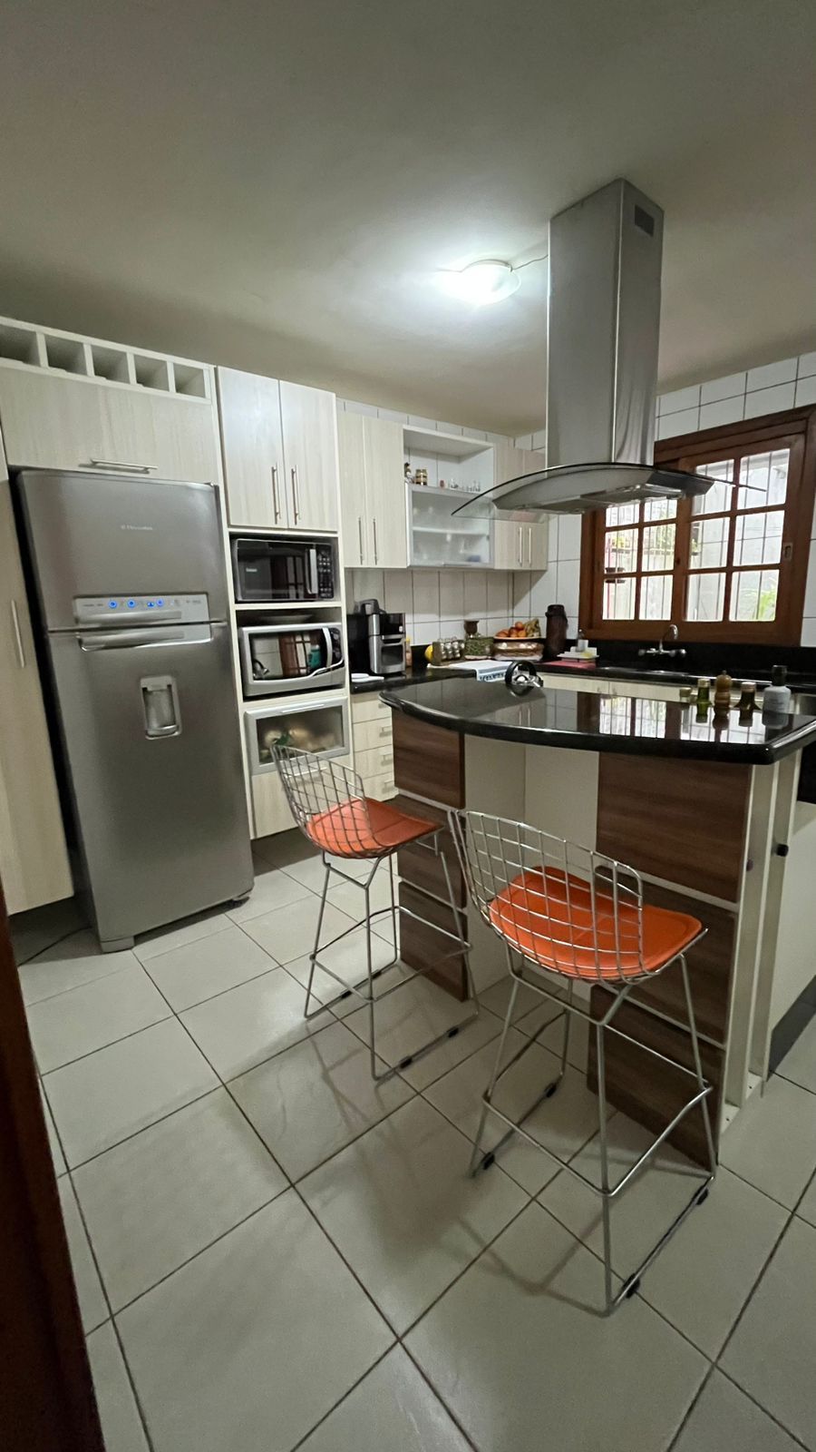 A área social é muito bem distribuída, com sala de estar aconchegante com lareira, sala de jantar integrada, varanda e churrasqueira, criando o ambiente ideal para receber amigos e familiares. O imóvel dispõe ainda de dois banheiros e cozinha em padrão tradicional, funcional e bem posicionada na planta.