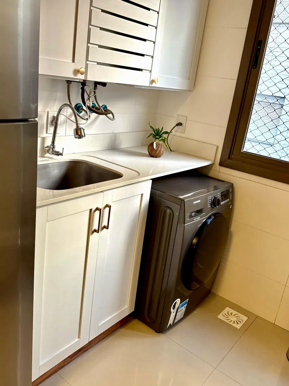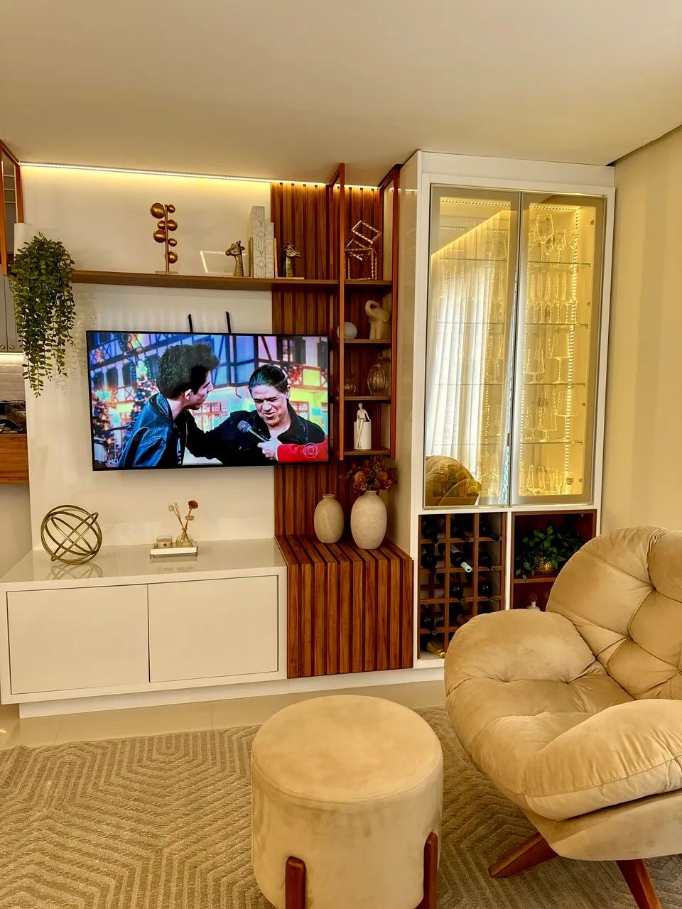 Apartamento moderno e muito bem distribuído, mobília de alto padrão, composto por 2 dormitórios, sendo 1 suíte com closet, banheiro social, sala de estar aconchegante, cozinha funcional e área de serviço.