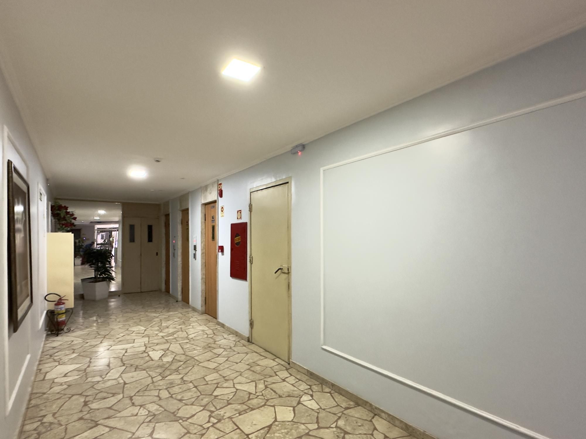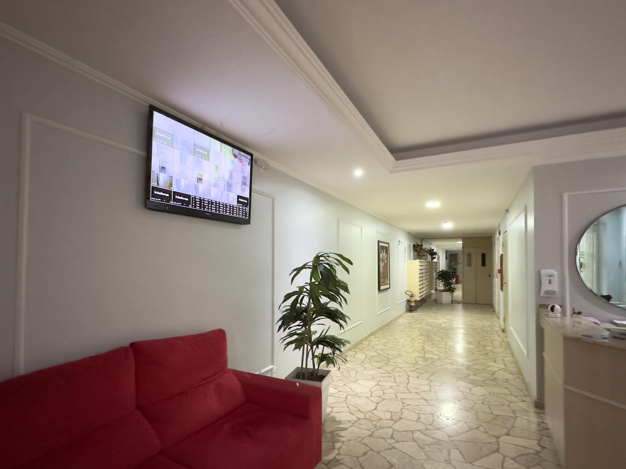 Apartamento 1 dormitório, andar alto, sala, cozinha e banheiro. Prédio com portaria, 3 elevadores e interfone.