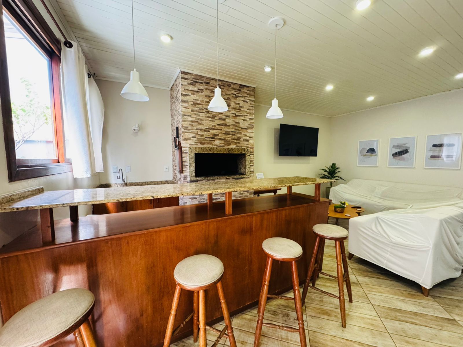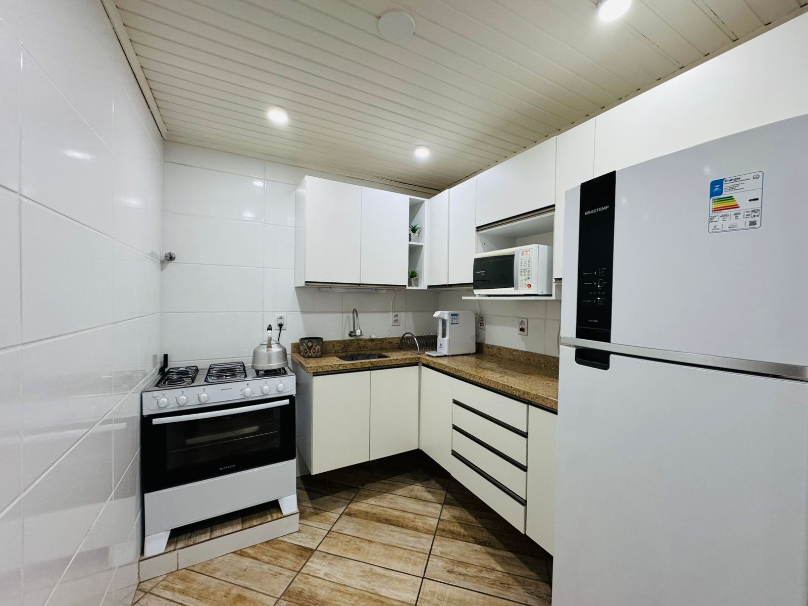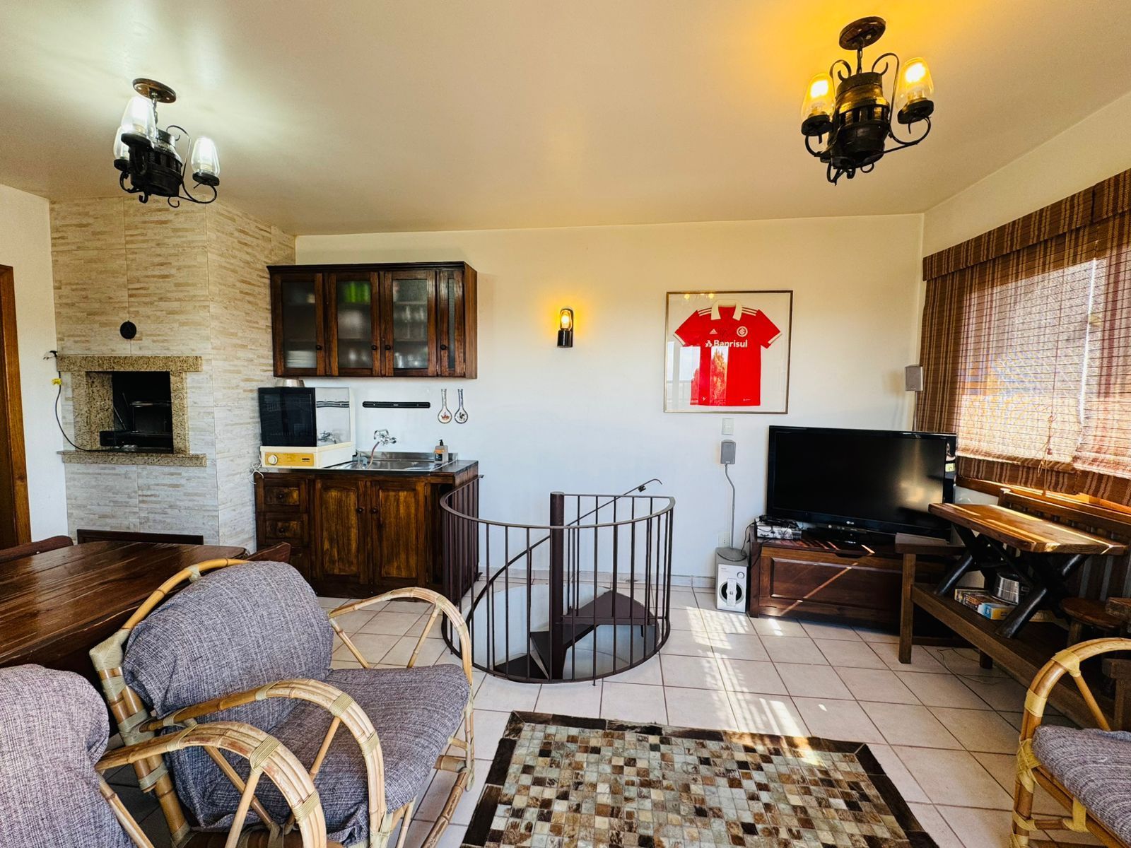 No pavimento inferior, o imóvel conta com 2 dormitórios, sendo 1 suíte, living para dois ambientes, cozinha funcional, área de serviço separada e banheiro social. Ambientes bem distribuídos, iluminados e com ventilação natural.
