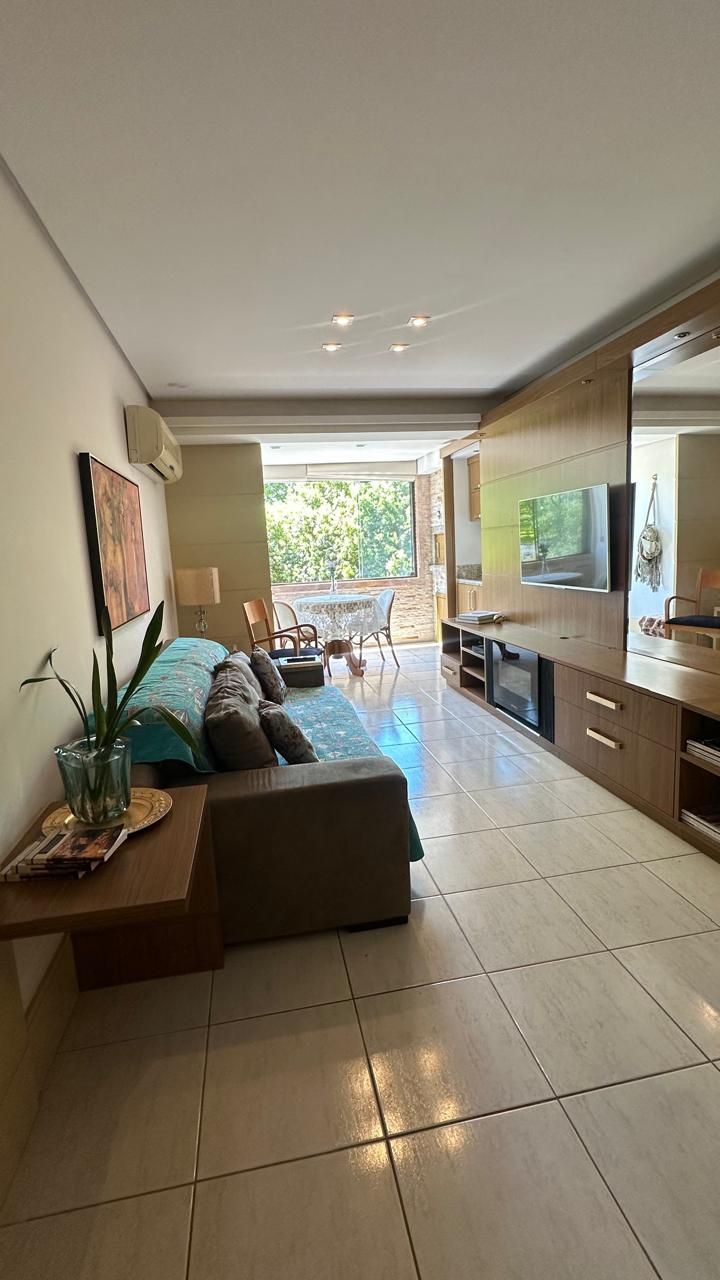 Apartamento 84,36 m², semimobiliado, living com sacada integrada com churrasqueira, lareira a gás.