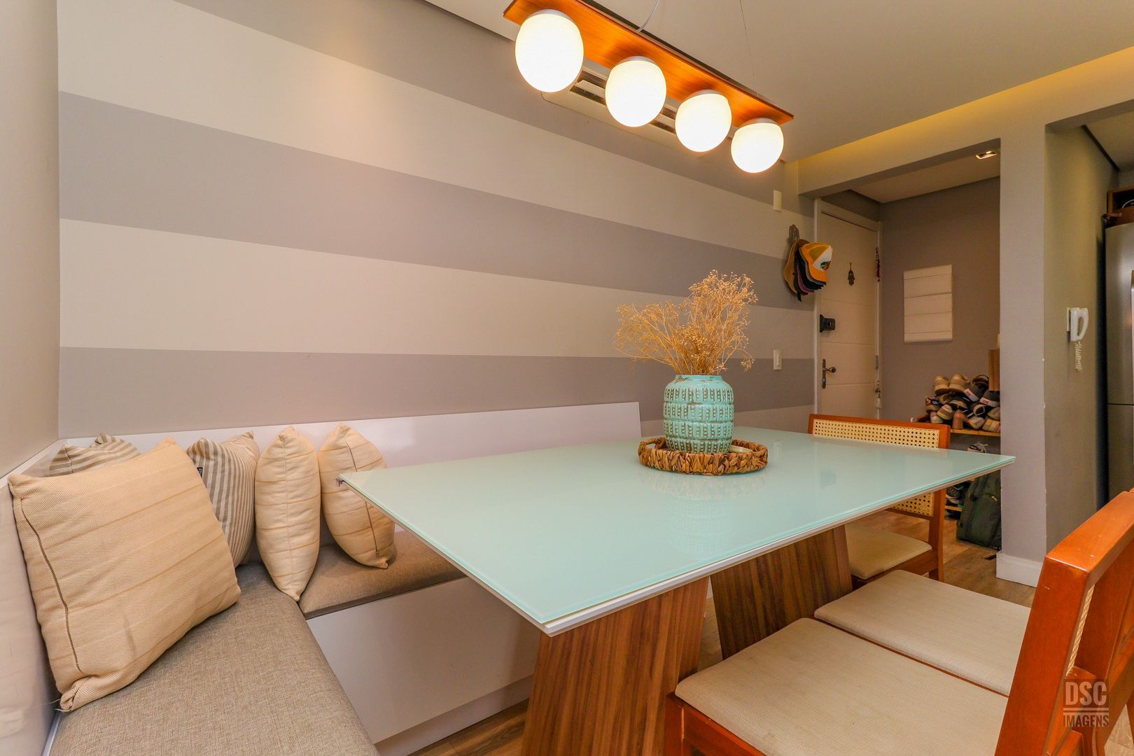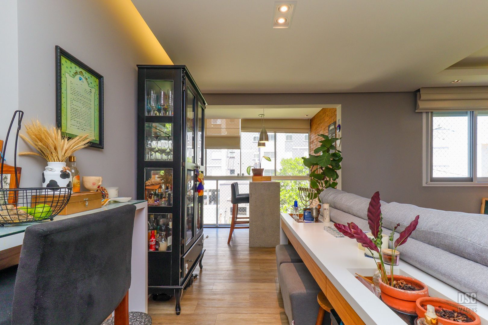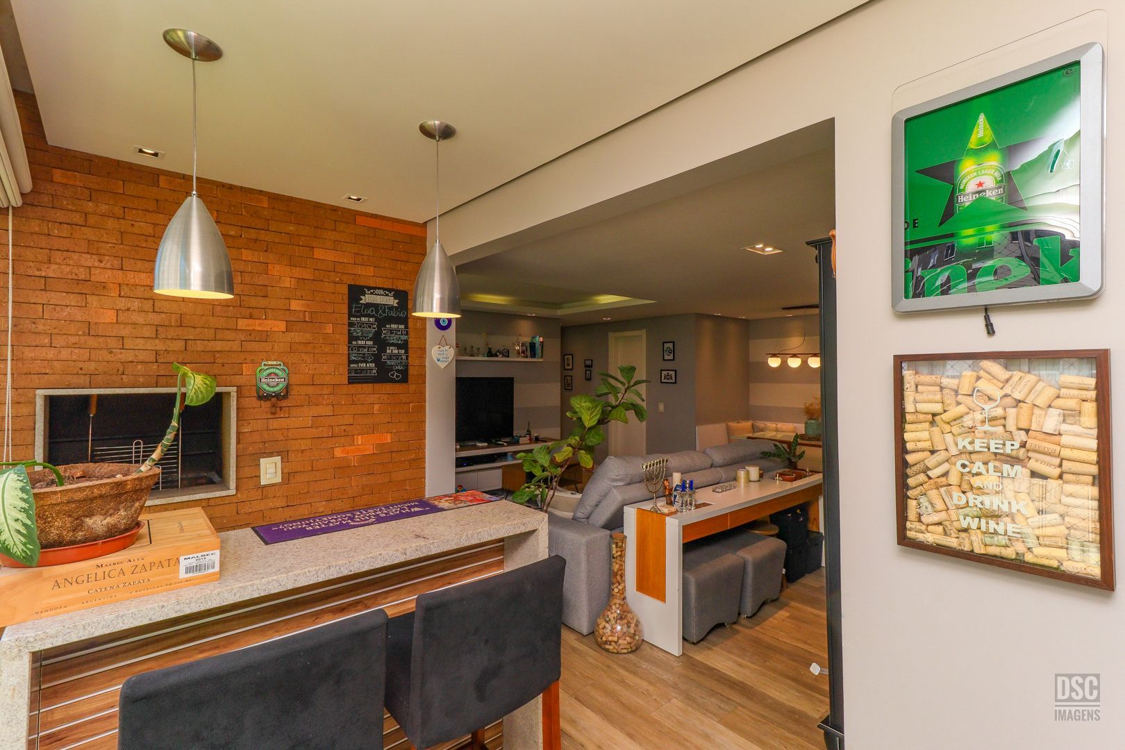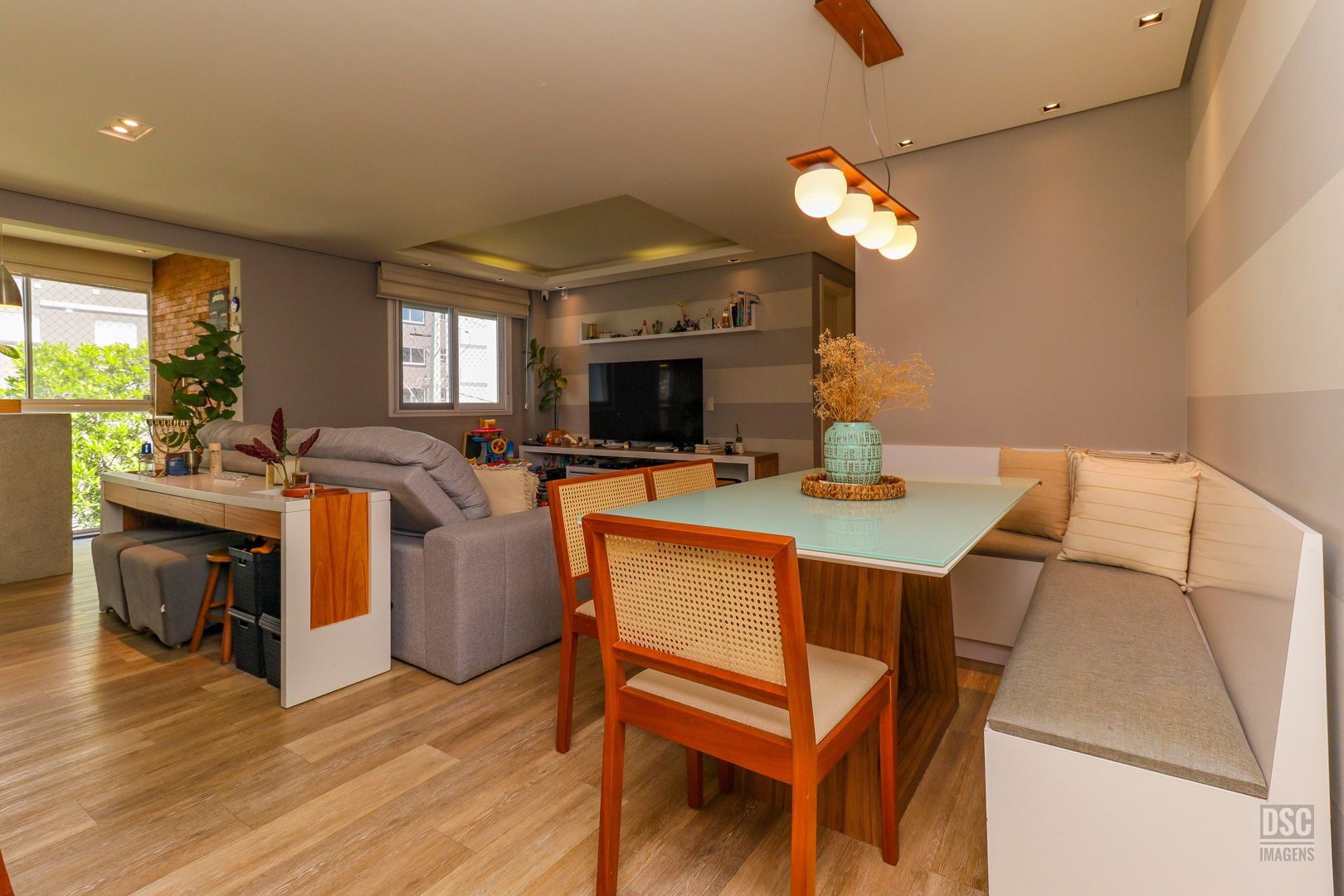 3 quartos ( transformado em 2 com living estendido), suíte, cozinha americana, sacada fechada com churrasqueira e 2 vagas de garagem.