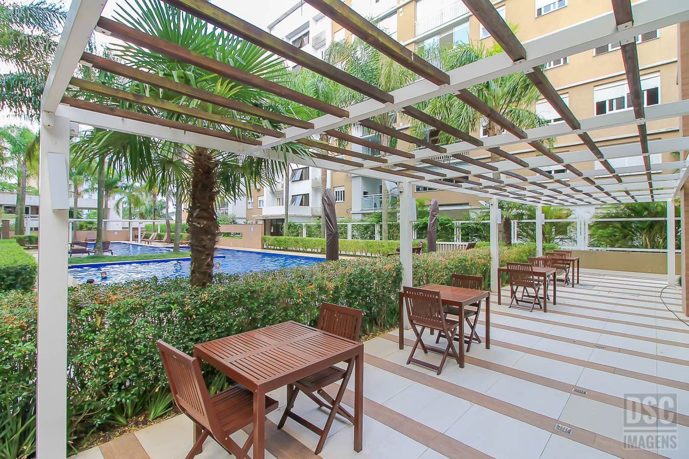 Infraestrutura completa de lazer, contando ainda com quadra de tênis, piscina com quebra gel, salões de festas quadra poli esportiva e mercado interno