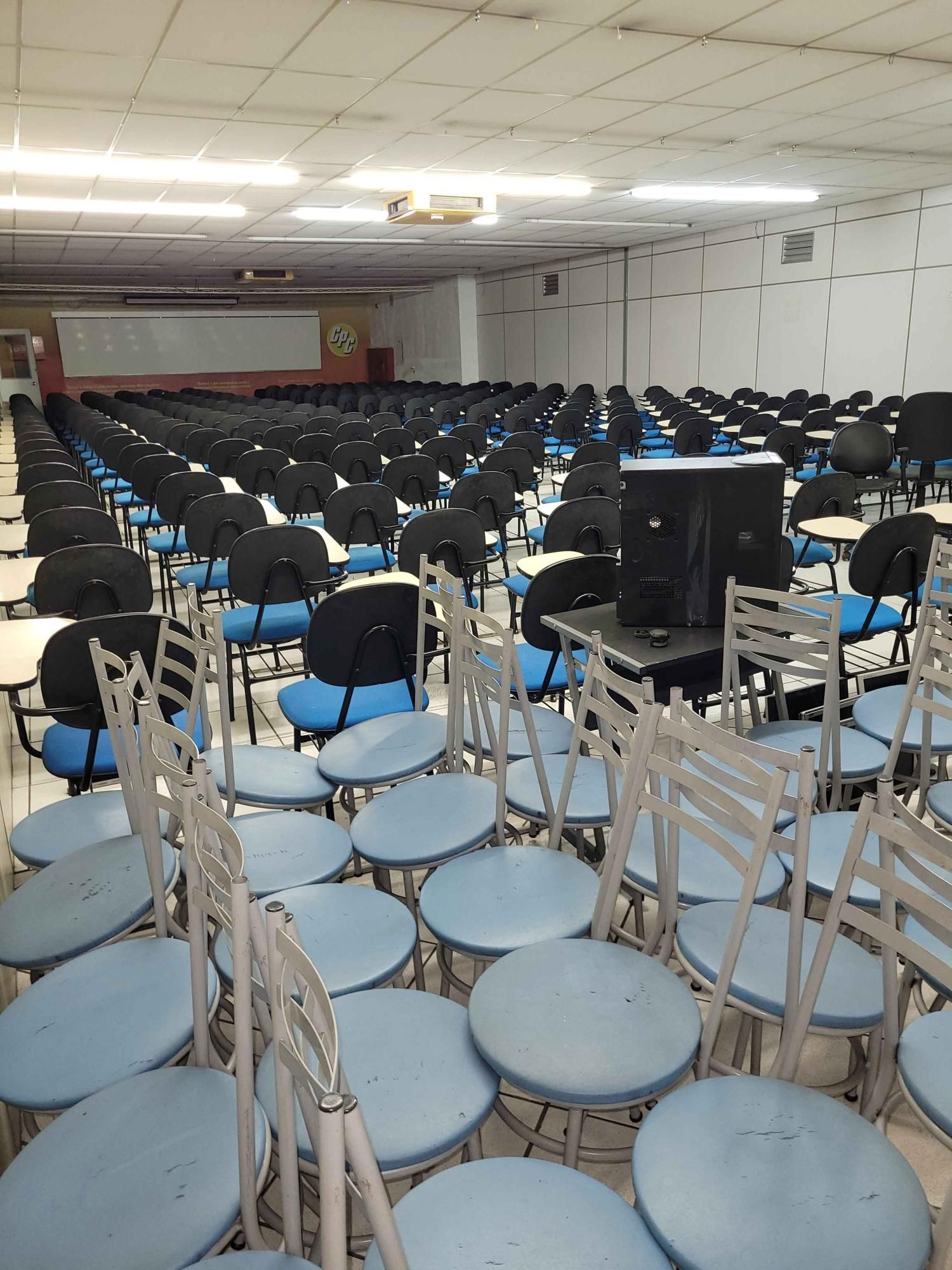 📍 Parte superior com salão amplo, diversas salas e banheiros coletivos.