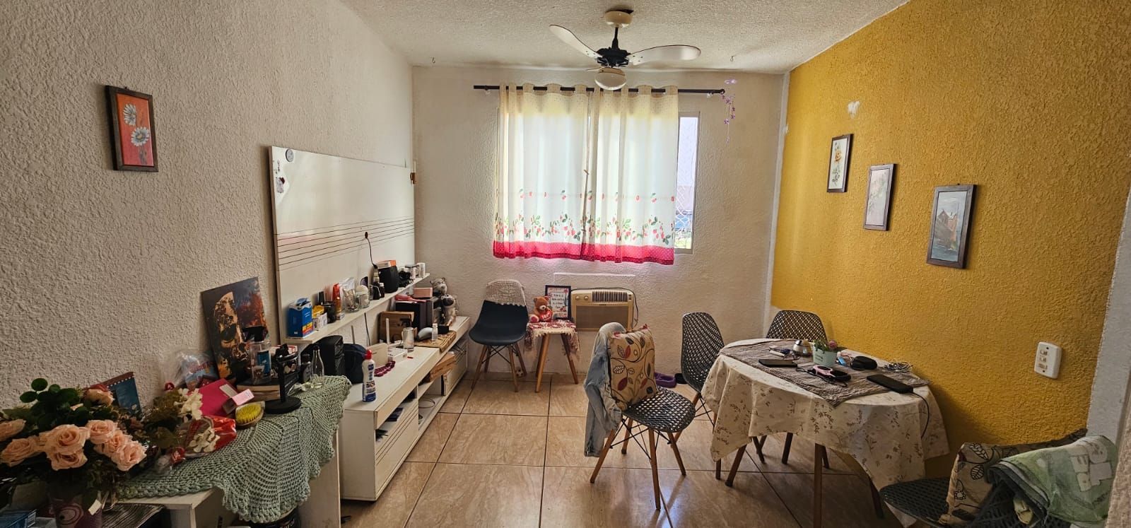 O apartamento oferece 2 quartos, Cozinha, Sala e 1 banheiro social