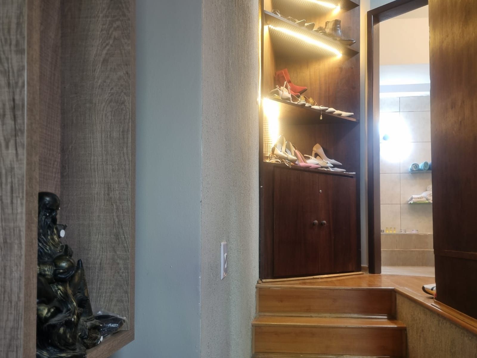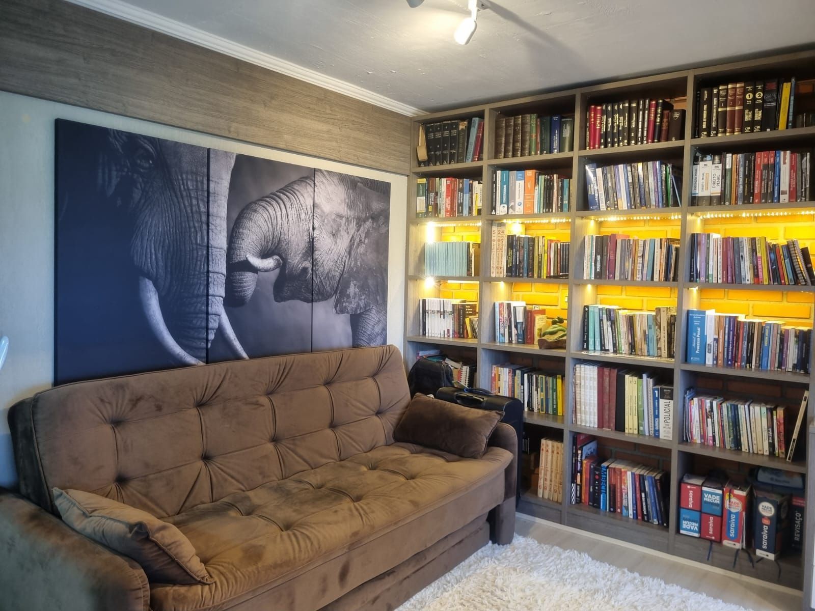 Um dos andares é totalmente destinado à suíte ou dormitório master, integrando: Biblioteca, Sala íntima e Escritório.