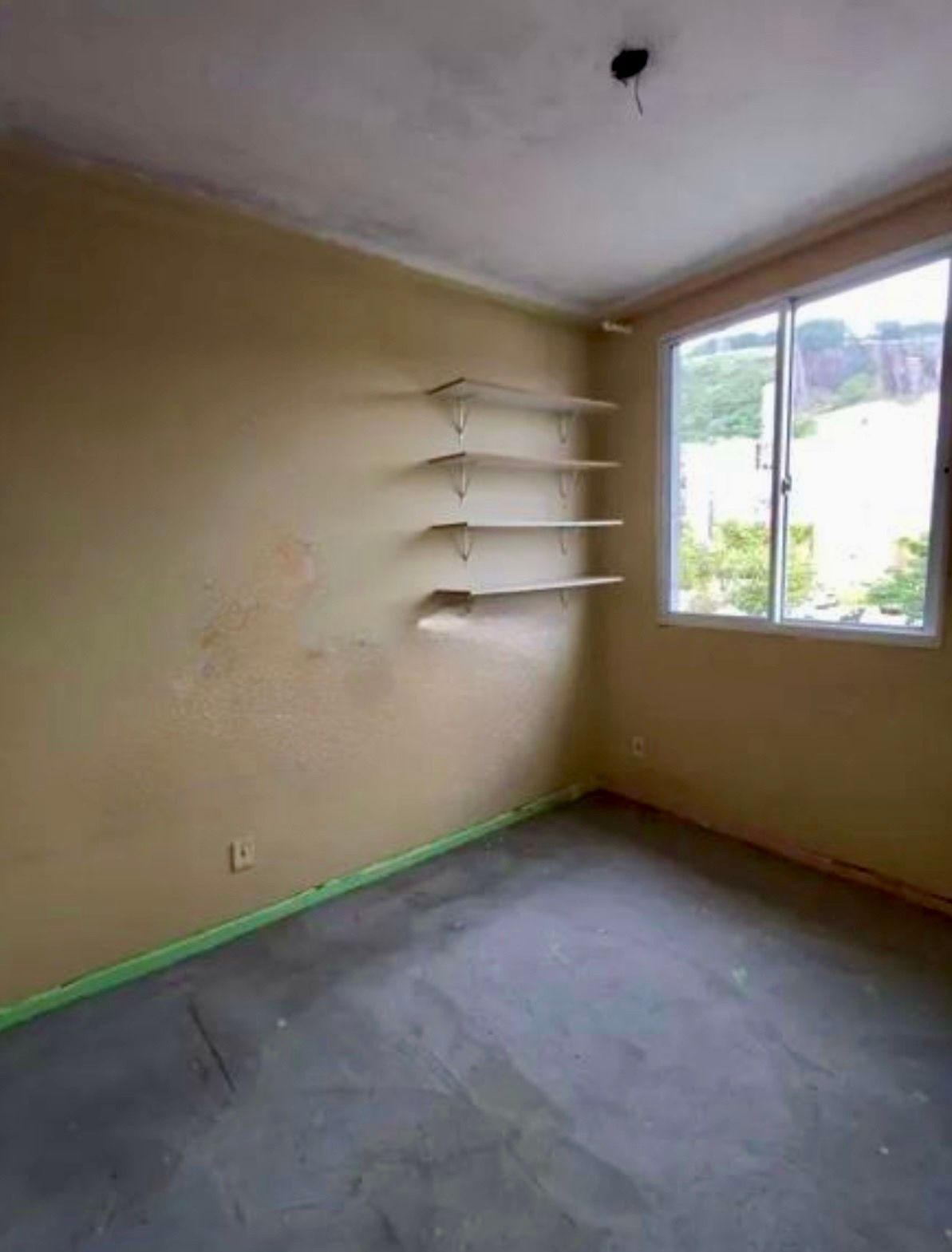 Sala em 2 ambientes com vista livre, cozinha com área de serviço separada, 2 dormitórios com privacidade e banheiro com ventilação natural.