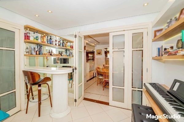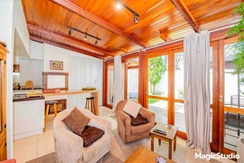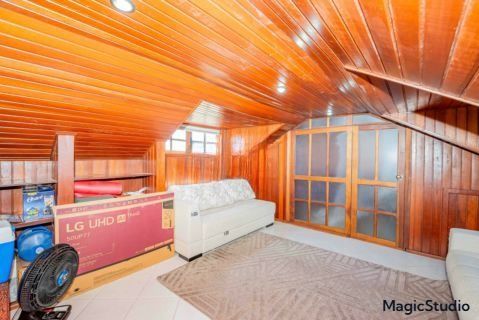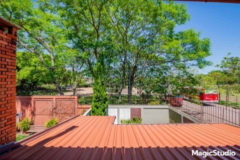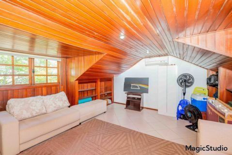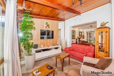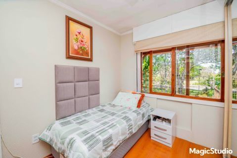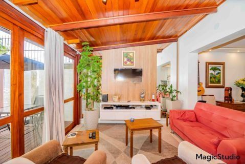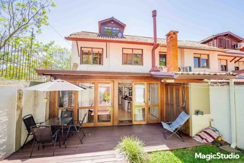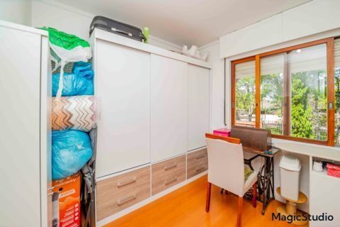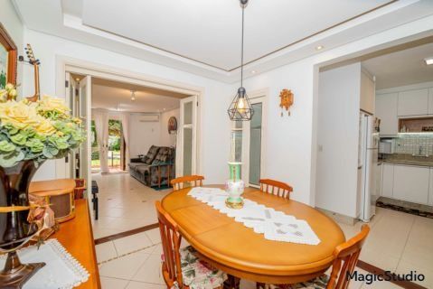 casa de 3 dormitórios em condomínio fechado na zona sul de Porto Alegre, na Rua Eduardo Prado, bairro Cavalhada. A casa conta com gramado e varanda na frente, garagem para dois carros, duas salas de estar e uma sala de jantar, lavabo, cozinha americana com churrasqueira, além de uma varanda nos fundos, pátio e spa. São três dormitórios, sendo uma suíte, e banheiro social. Possui ainda um sótão que pode ser utilizado como sala ou escritório.