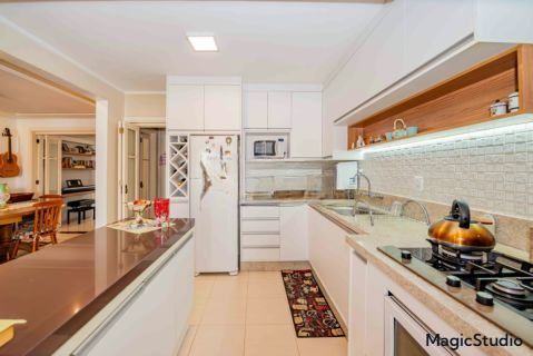 O imóvel conta com armários sob medida e planejados na sala, cozinha, área de serviço, dormitórios e banheiros.