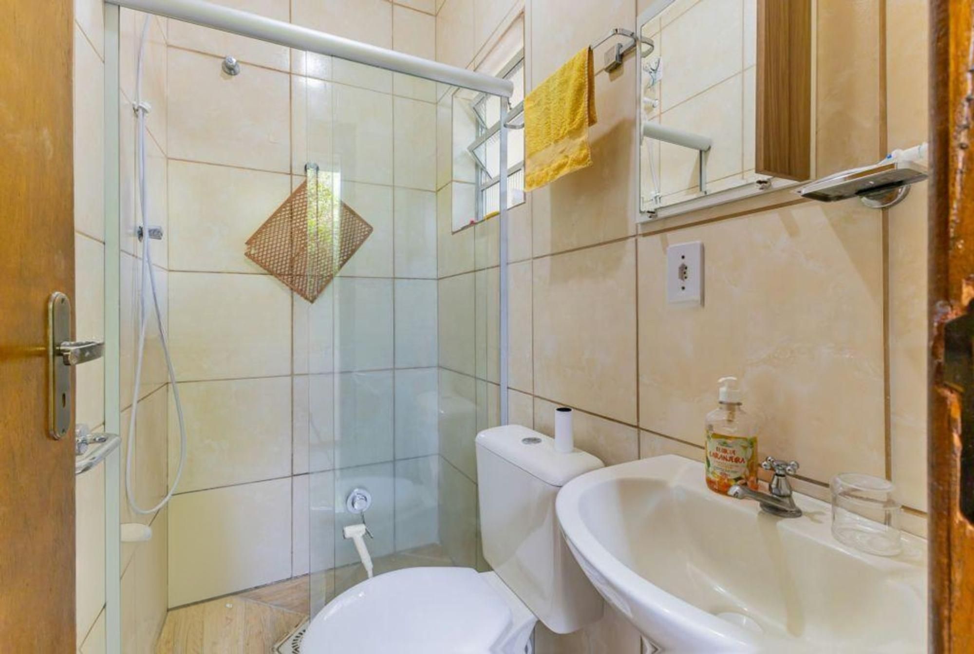 Uma segunda casa nos fundos, totalmente independente, com 1 dormitório com suíte, sala, cozinha e banheiro.