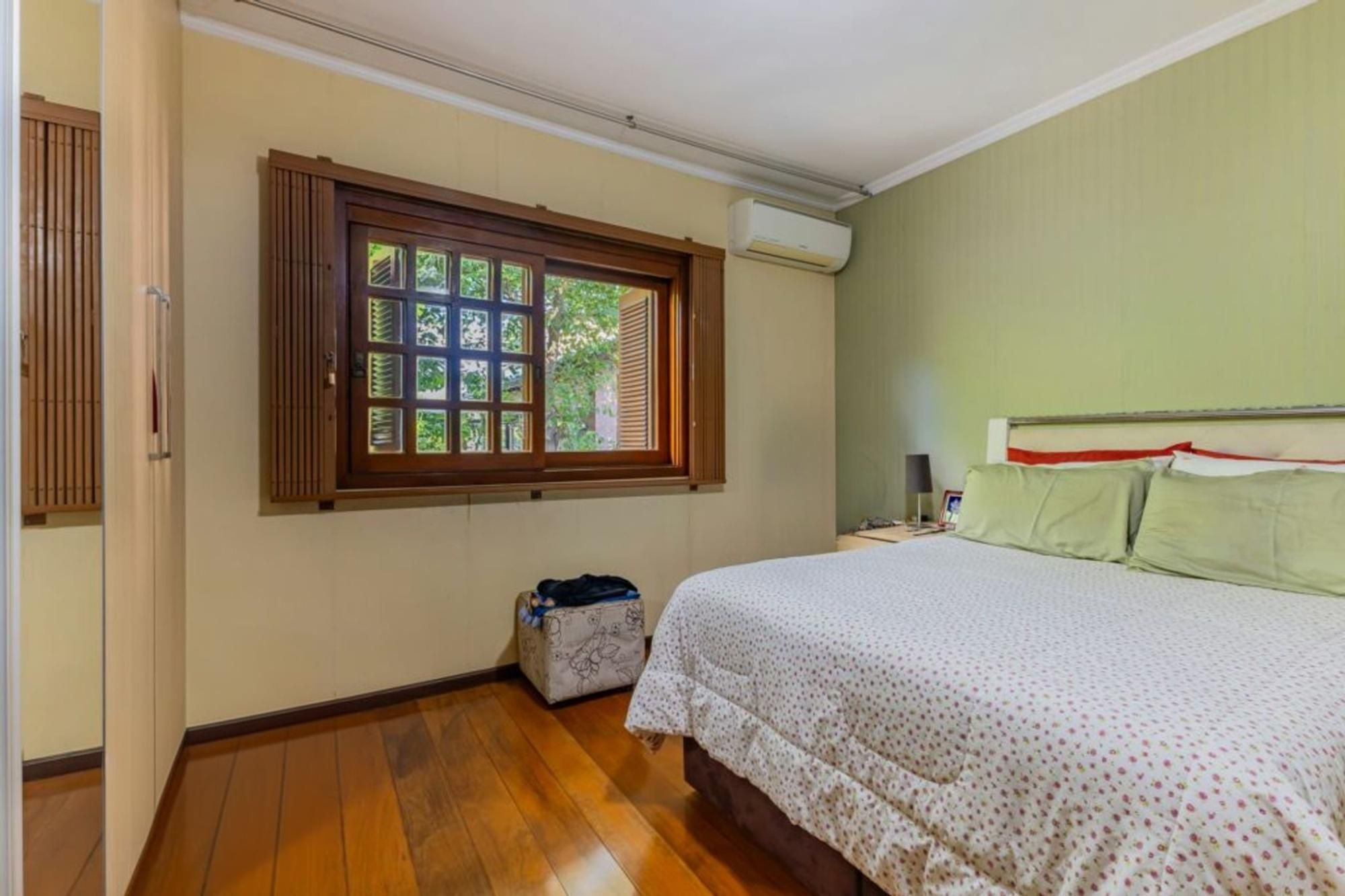 A casa principal conta com 2 quartos amplos e bem ventilados, ambos com suíte, ar-condicionado e piso em madeira. Sala de estar aconchegante e bem iluminada, lavabo, cozinha espaçosa e área de serviço independente. Todos os cômodos possuem aquecimento central.