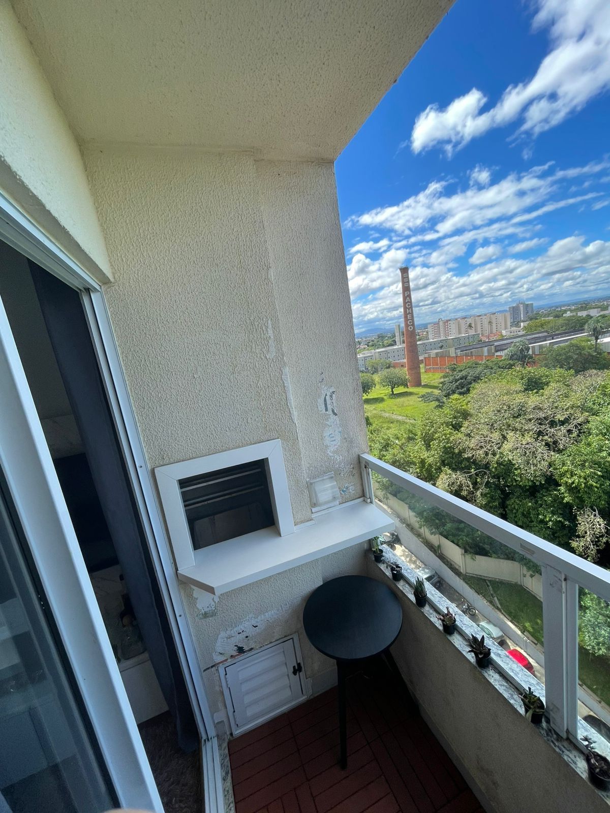 Sacada com churrasqueira e uma vista do topo das árvores.