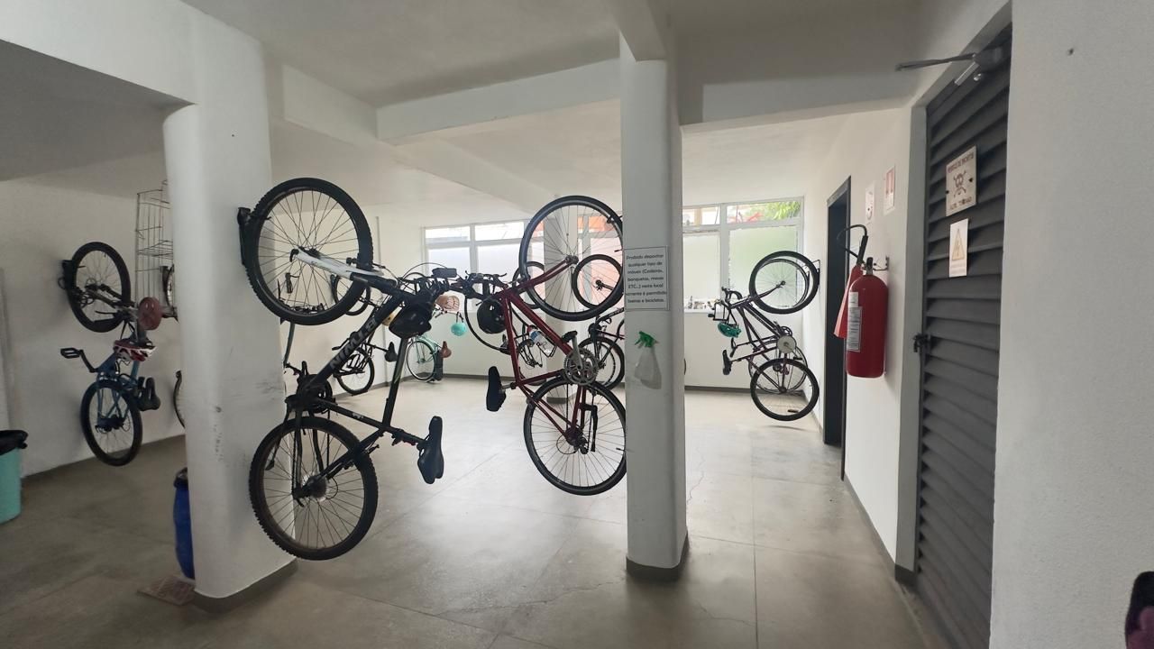 Prédio com terraço, churrasqueira coletiva, salão de festas, espaço pet, bicicletário e elevador.