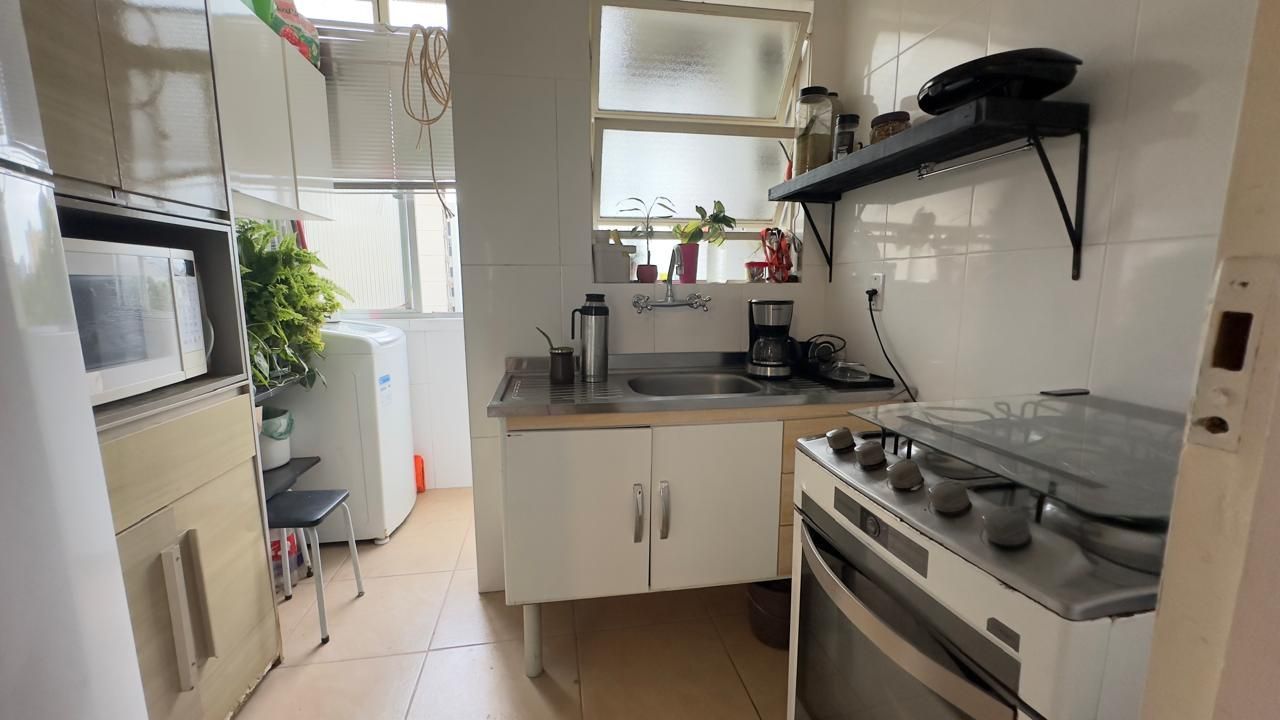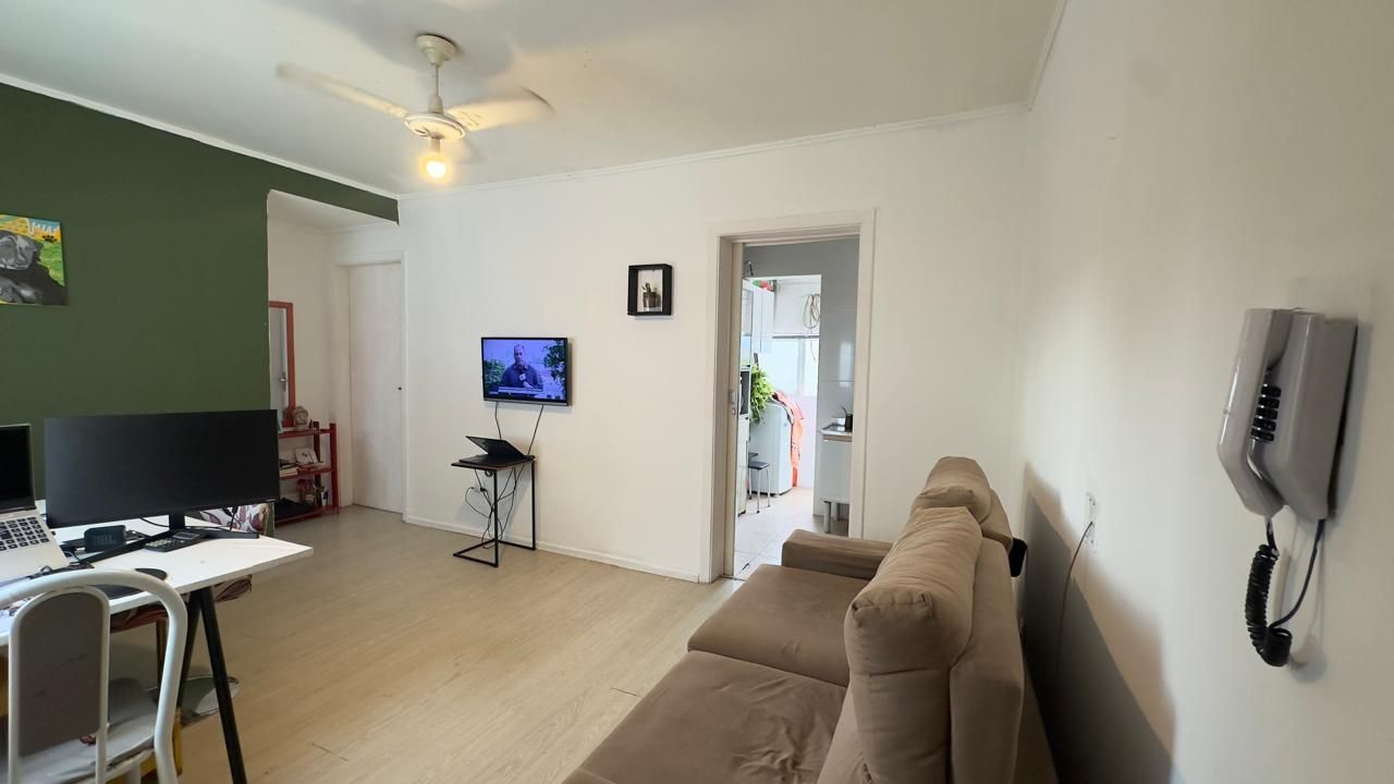 Apartamento de 40 m², 1 dormitório ensolarado e ventilado, living para dois ambientes, banheiro social, cozinha e área de serviço separada.