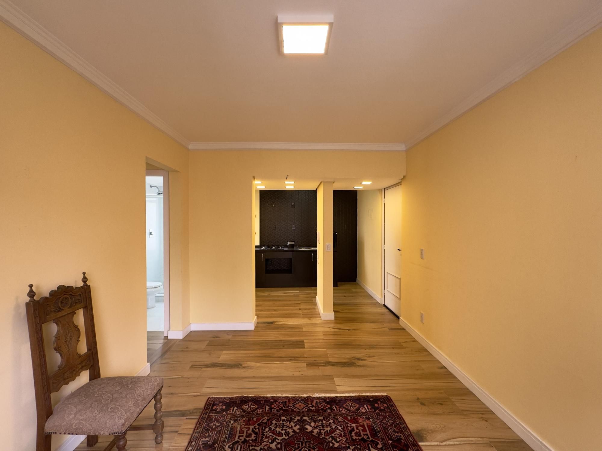 Apartamento reformado de 68m², 2 dormitórios, living para dois ambientes, cozinha americana com móveis sob medida, área de serviço integrada e 1 banheiro. Imóvel com orientação solar Norte (excelente insolação) e bastante silencioso.