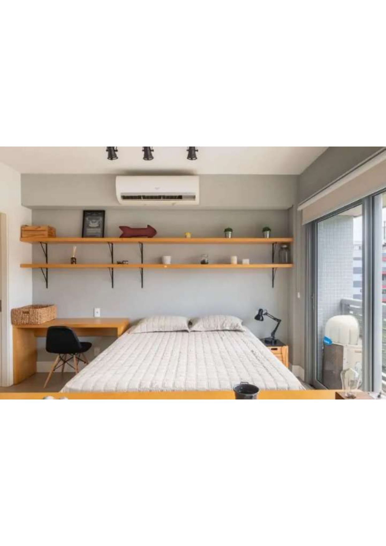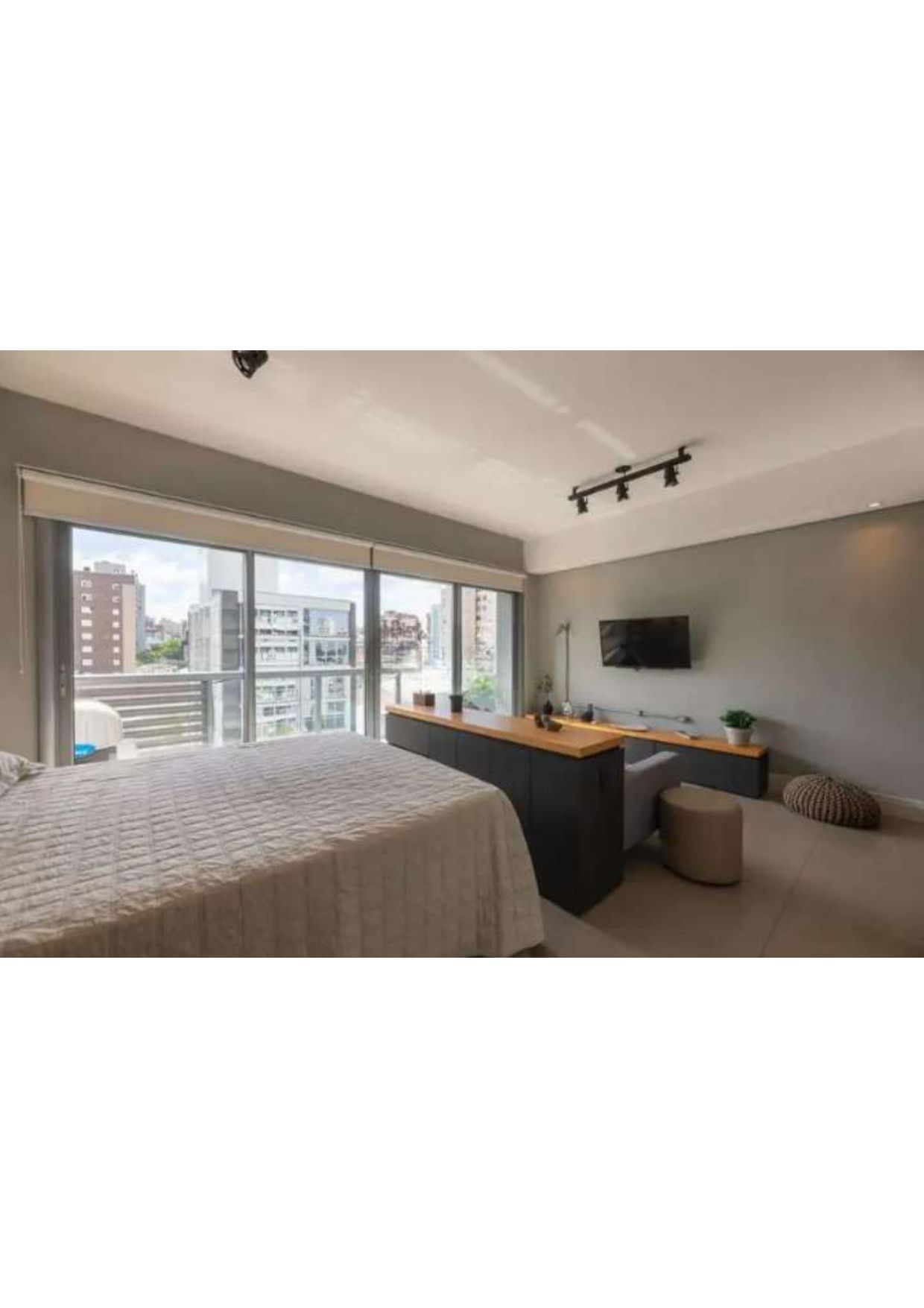 Mobiliado: Gracioso studio, andar alto com 39,63m2 privativos. Próximo a todos os recursos do bairro. Fica moveis, eletrodomésticos, enxoval e itens de decoração.