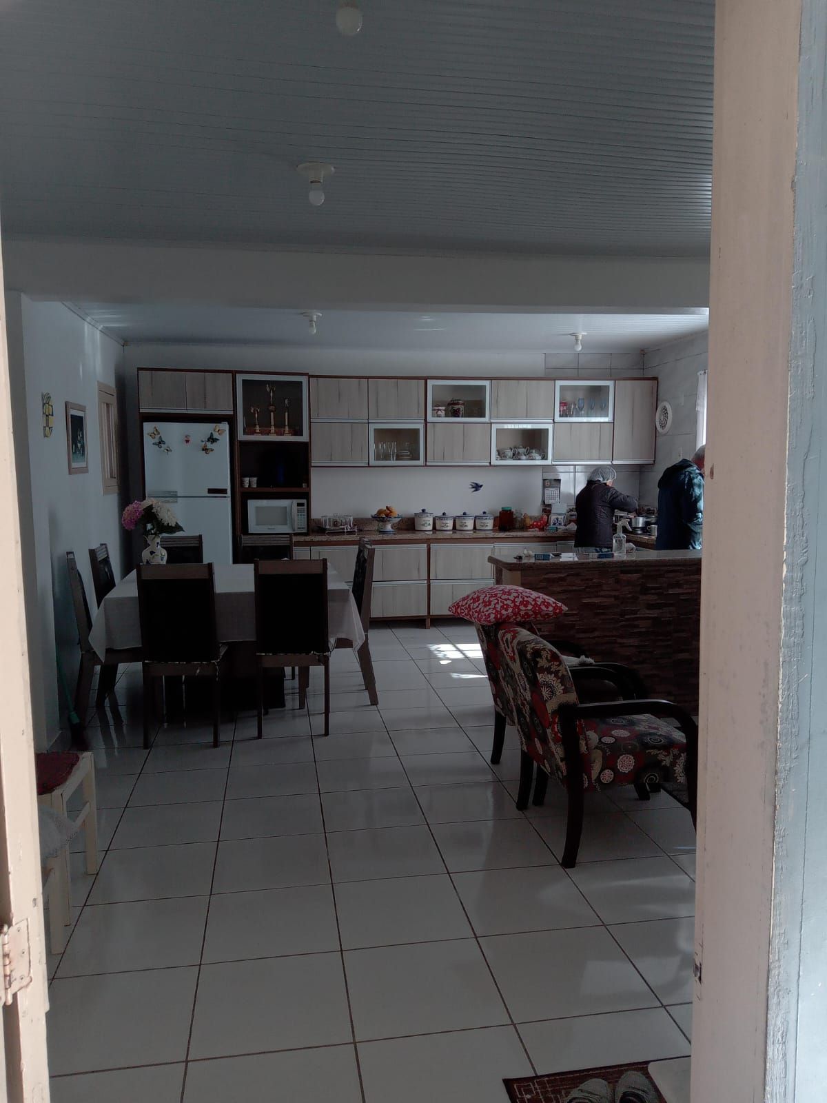 Casa, ampla e bem arejada, com três dormitorios sendo uma suite, sala, varanda com lareira integrada com a cozinha mobiliada e mesa com 8 cadeira, banheiro social, vaga coberta para carros, edicula com churrasqueira banheiro, área de serviço. Patio medindo 10x30 com lindo jardim, todo mudado e gradil na frente, com portão eletrôcinco.