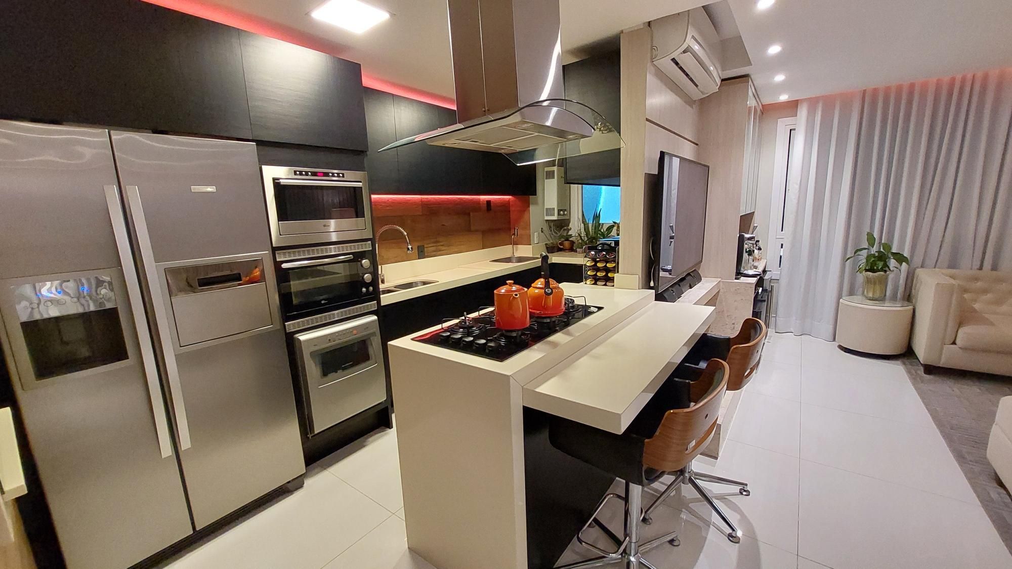 Apartamento com sala ampla, com janelas grandes que garantem excelente iluminação solar e ventilação natural. Cozinha com móveis planejados, arejada e iluminada, em piso porcelanato, com janelas amplas. Área de serviço arejada e iluminada, com gás central.