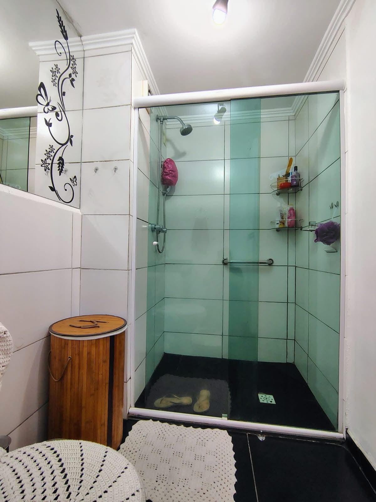 O condomínio dispõe de salão de festas, 3 quiosques, duas piscinas, bicicletário, quadra poliesportivo, playground, mercadinho 24 horas, portaria 24 horas