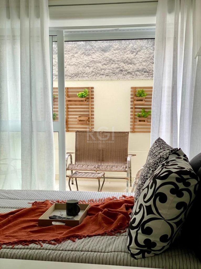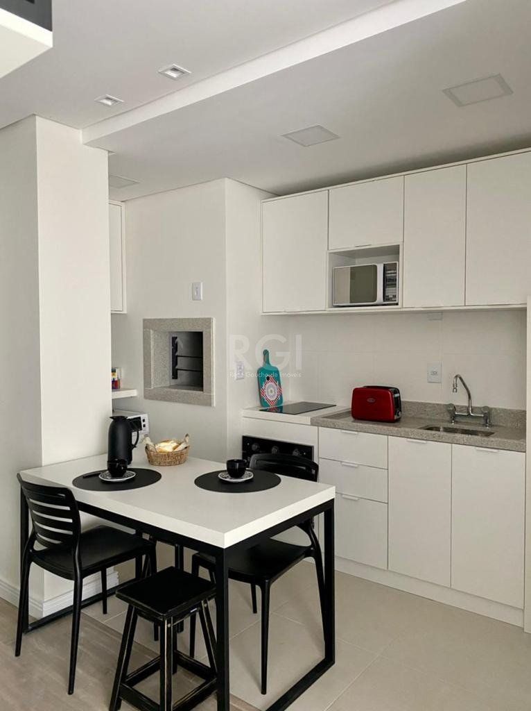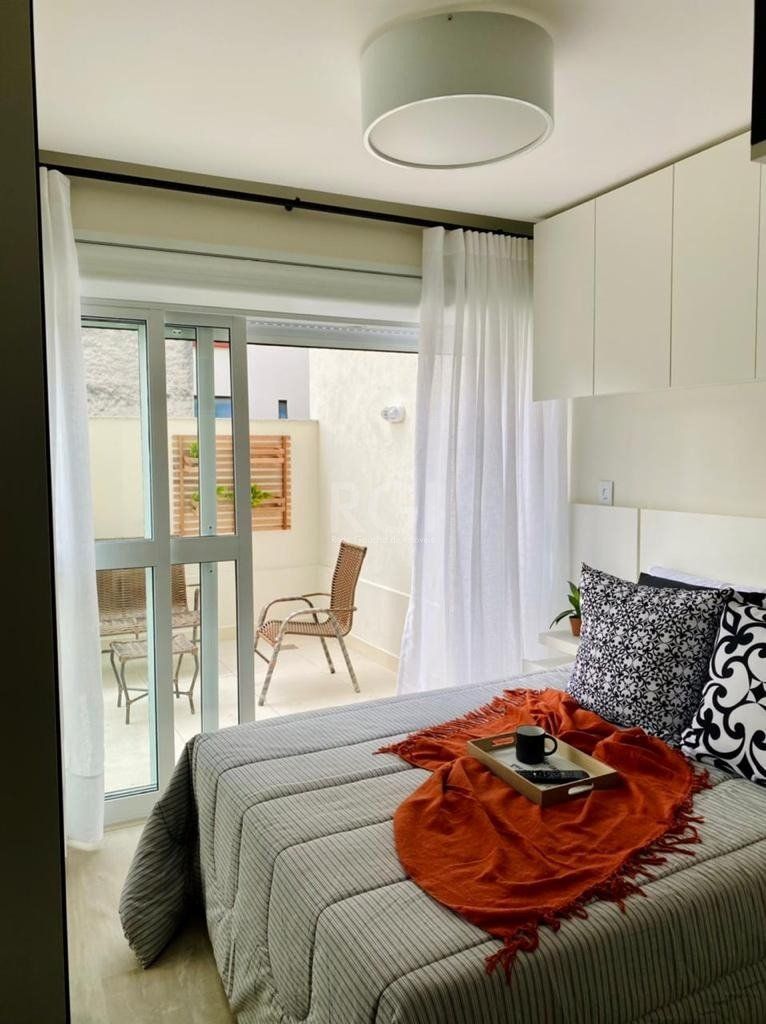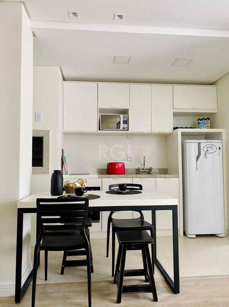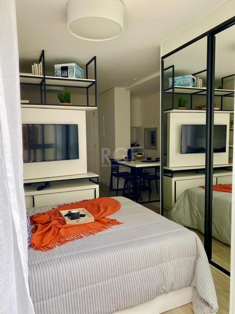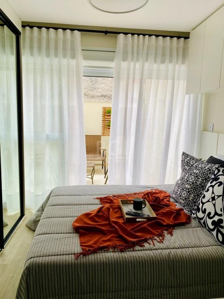 Studio mobiliado com garden e vaga de garagem 31m² privativos + 17,26m² do garden composto de Estar/Dormitório cozinha americana com churrasqueira e banheiro.