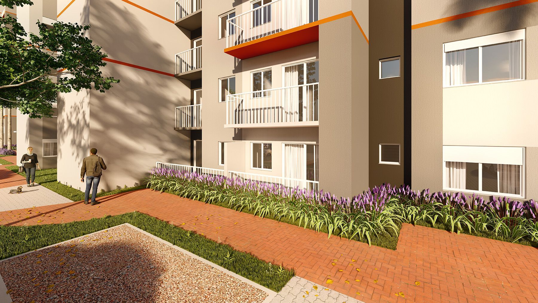 •	Living integrado à cozinha, proporcionando amplitude e conforto.