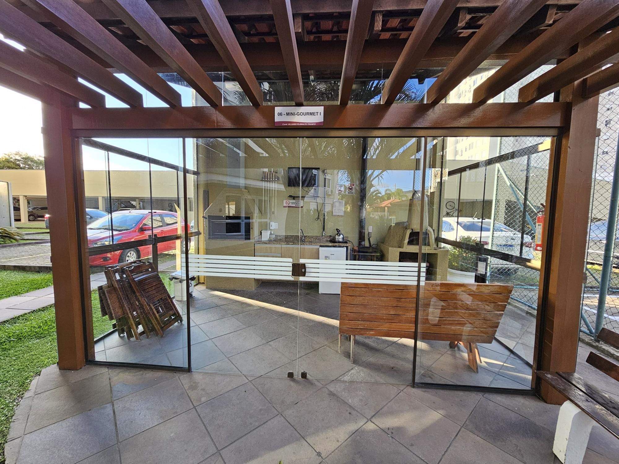 Belíssimo apartamento na zona norte de Porto Alegre em andar alto, na melhor posição do condomínio com uma linda vista para área verde de preservação ambiental e pronto para você, entrar e morar. São 2 dormitórios, living e cozinha americana. Apartamento semi mobiliado com móveis sob medida nos dois dormitórios, banheiro, cozinha. Living com canto alemão e bancada com banquetas. Split no dormitório de casal. Condomínio com infra completa incluindo quadra poliesportiva, piscinas, quiosques com churrasqueira, pet place, brinquedoteca, bicicletário, academia, sala de jogos, playground, Mercado self-service 24h, webspace (escritório) equipado com computador e internet, horta coletiva e portaria 24h.