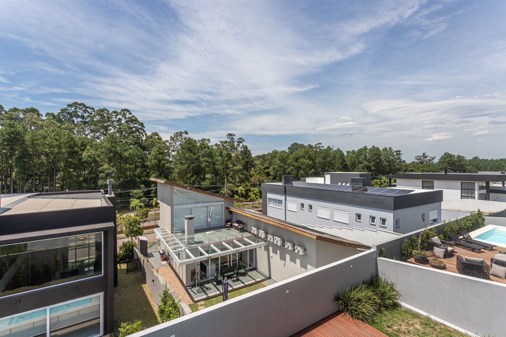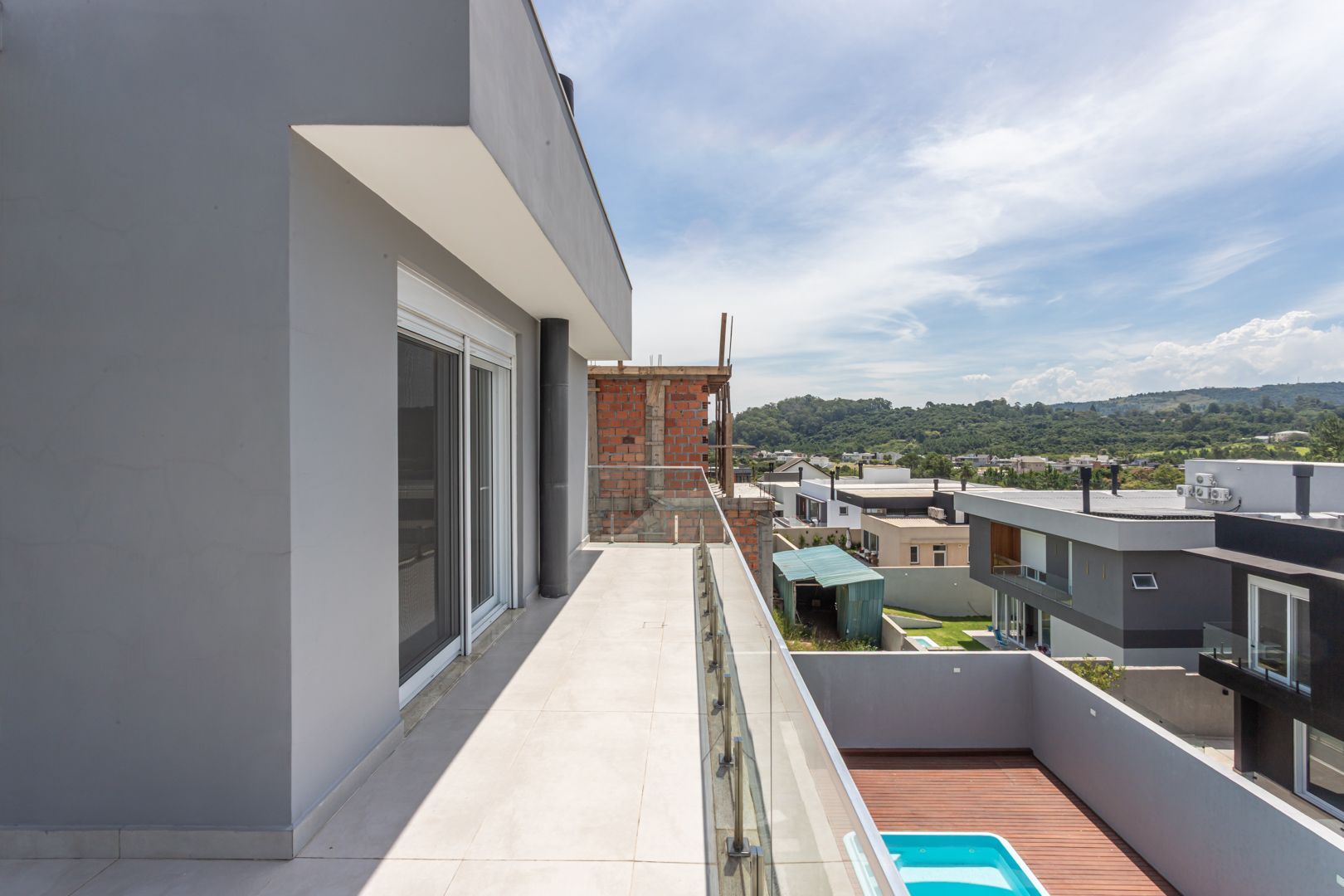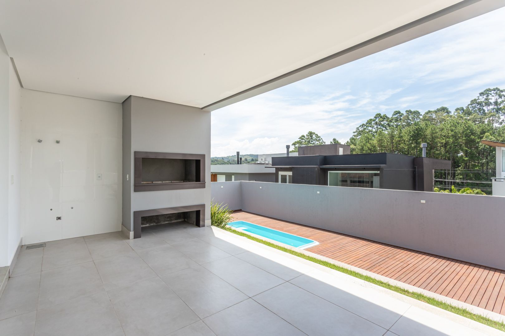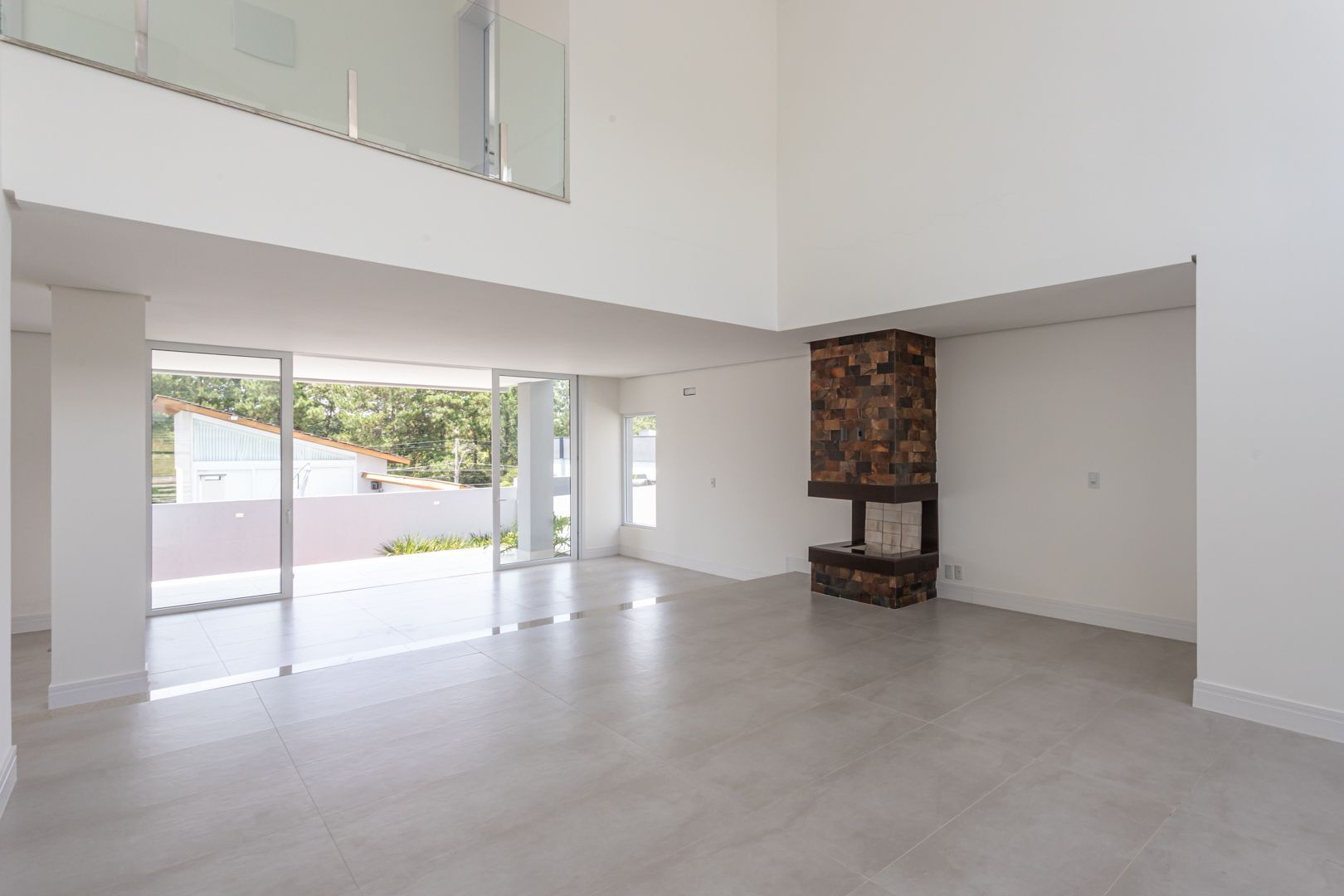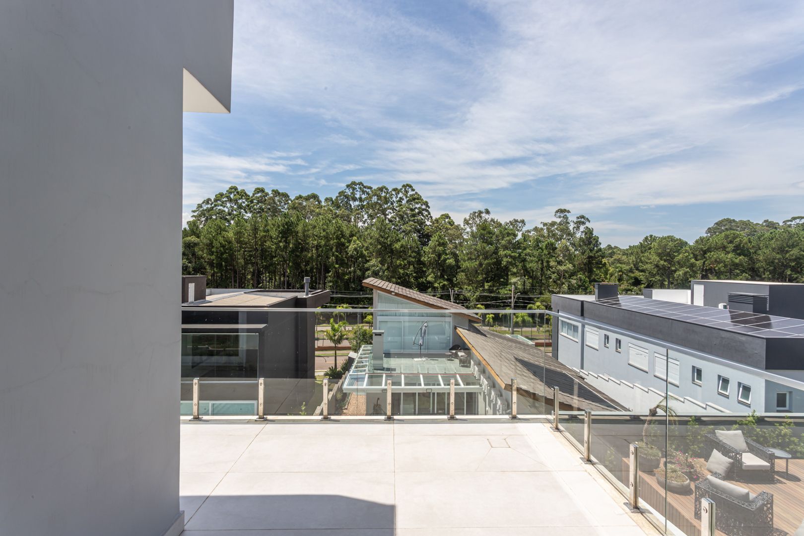 Com 484,92 m² de área privativa, a casa apresenta um living amplo e elegante, com possibilidade de até três ambientes, lareira, pé-direito elevado, piso em porcelanato e grandes esquadrias que garantem excelente iluminação natural e ventilação cruzada.