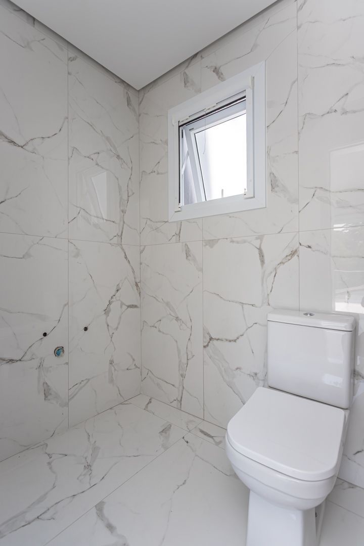A casa possui esquadrias em alumínio em todos os ambientes, reforçando durabilidade e estética contemporânea.