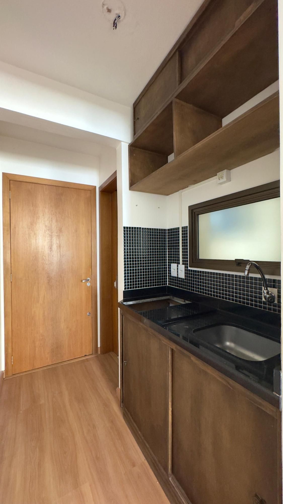 Studio com 30m², amplo, living e dormitório com ambientes bem definidos e com ventilação natural, cozinha, banheiro com espaço para máquina de lavar roupas. Imóvel com ótima ventilação e iluminação, conta com ar condicionado e cozinha americana.