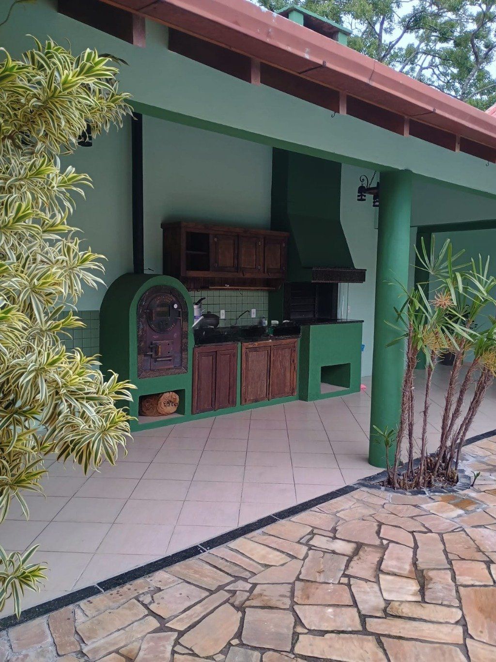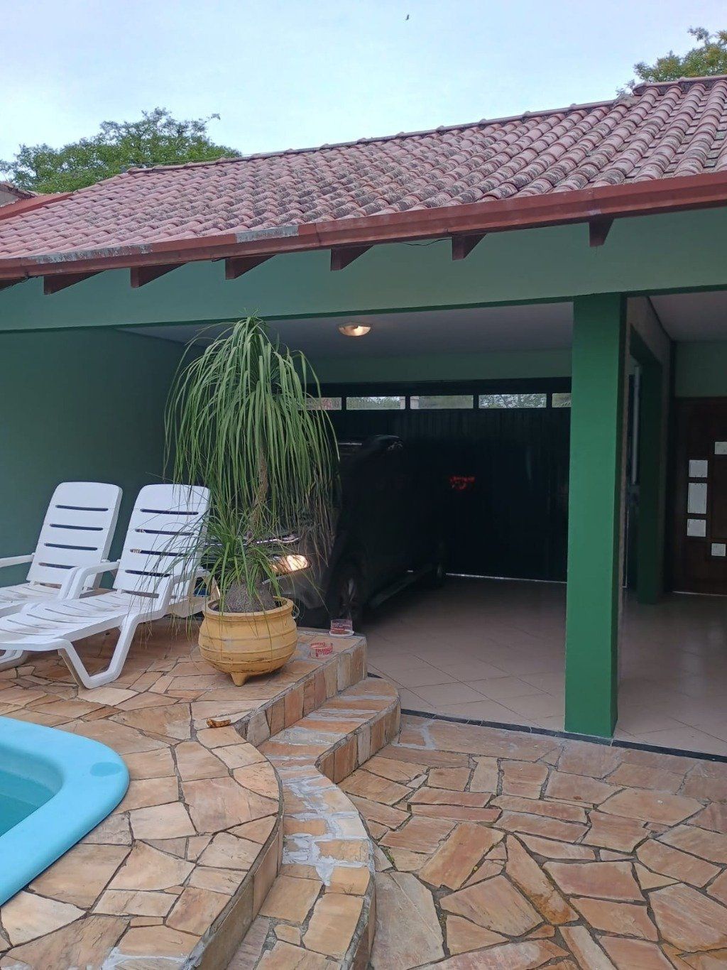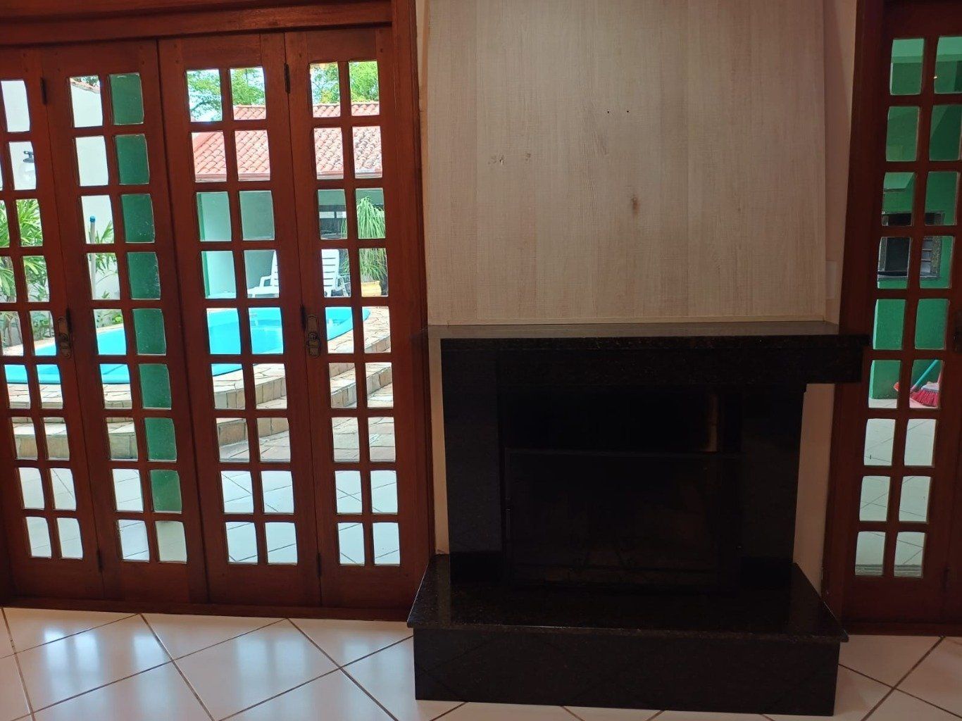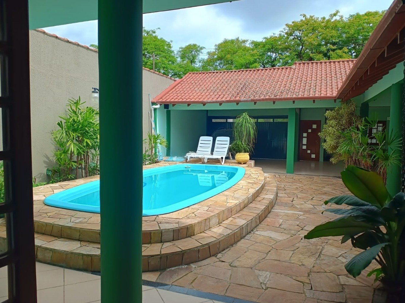 Espaço gourmet semi aberta integrada a piscina com pátio frente e fundos.