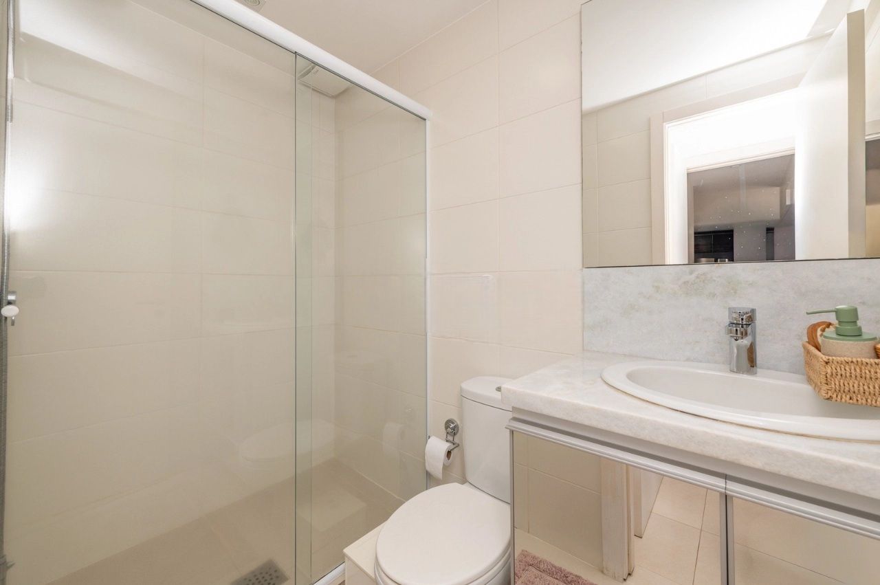 Totalmente mobiliado, o apartamento está pronto para morar e oferece ainda churrasqueira privativa, banheiro social e excelente iluminação natural, graças ao andar alto e à ótima orientação solar.
