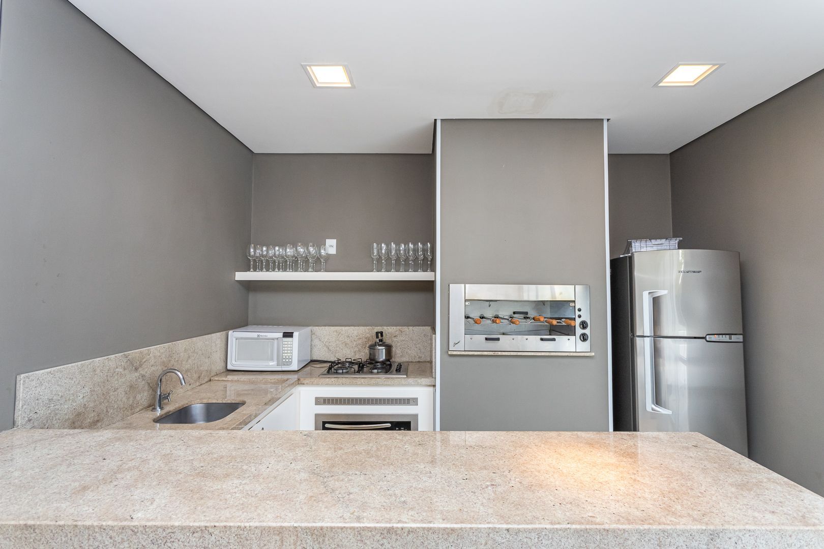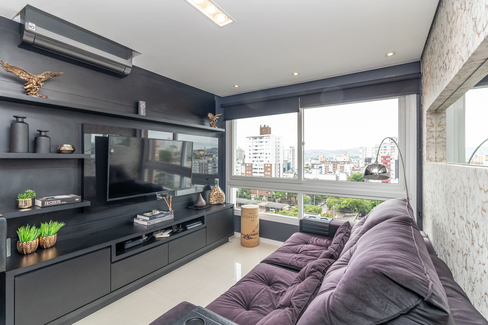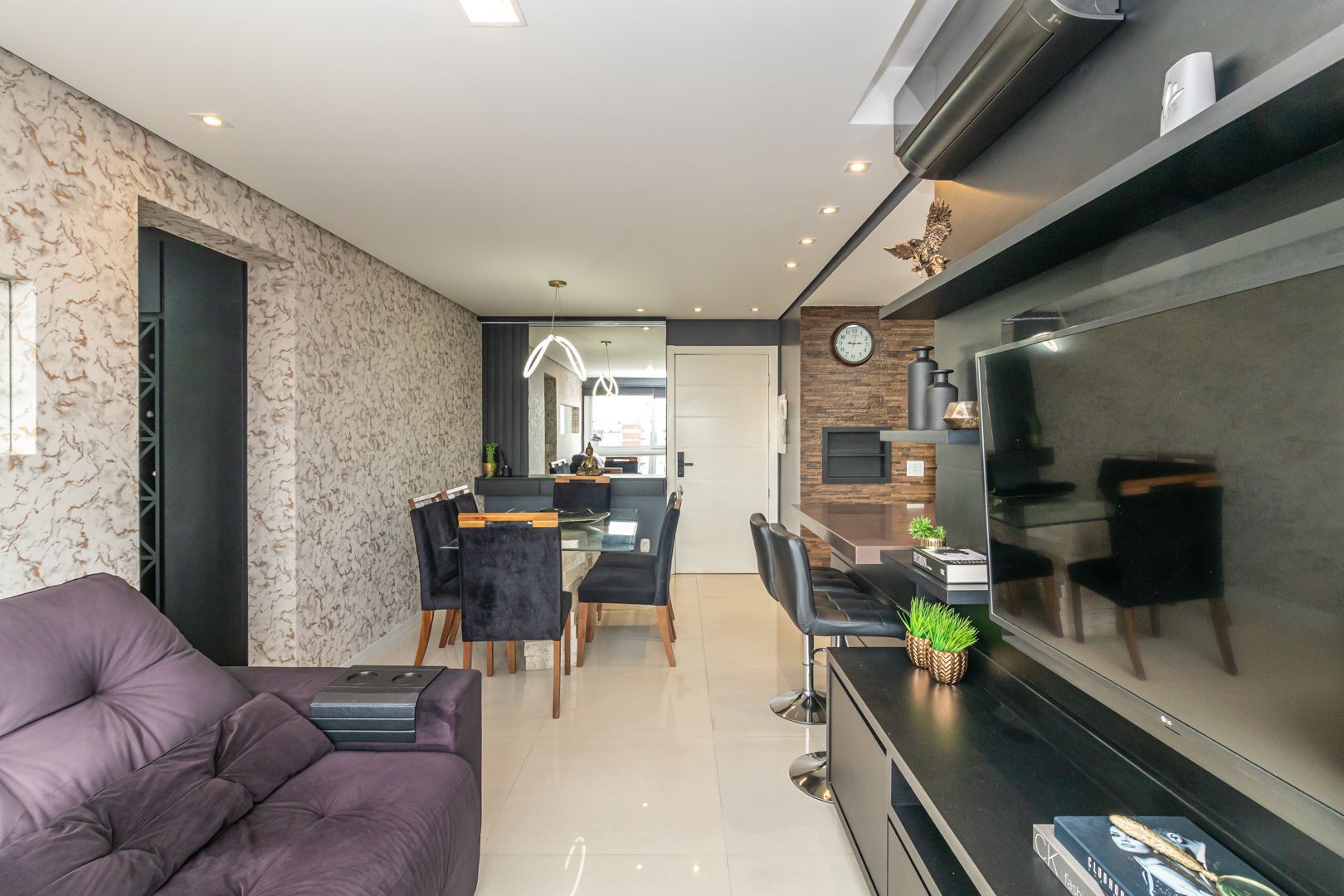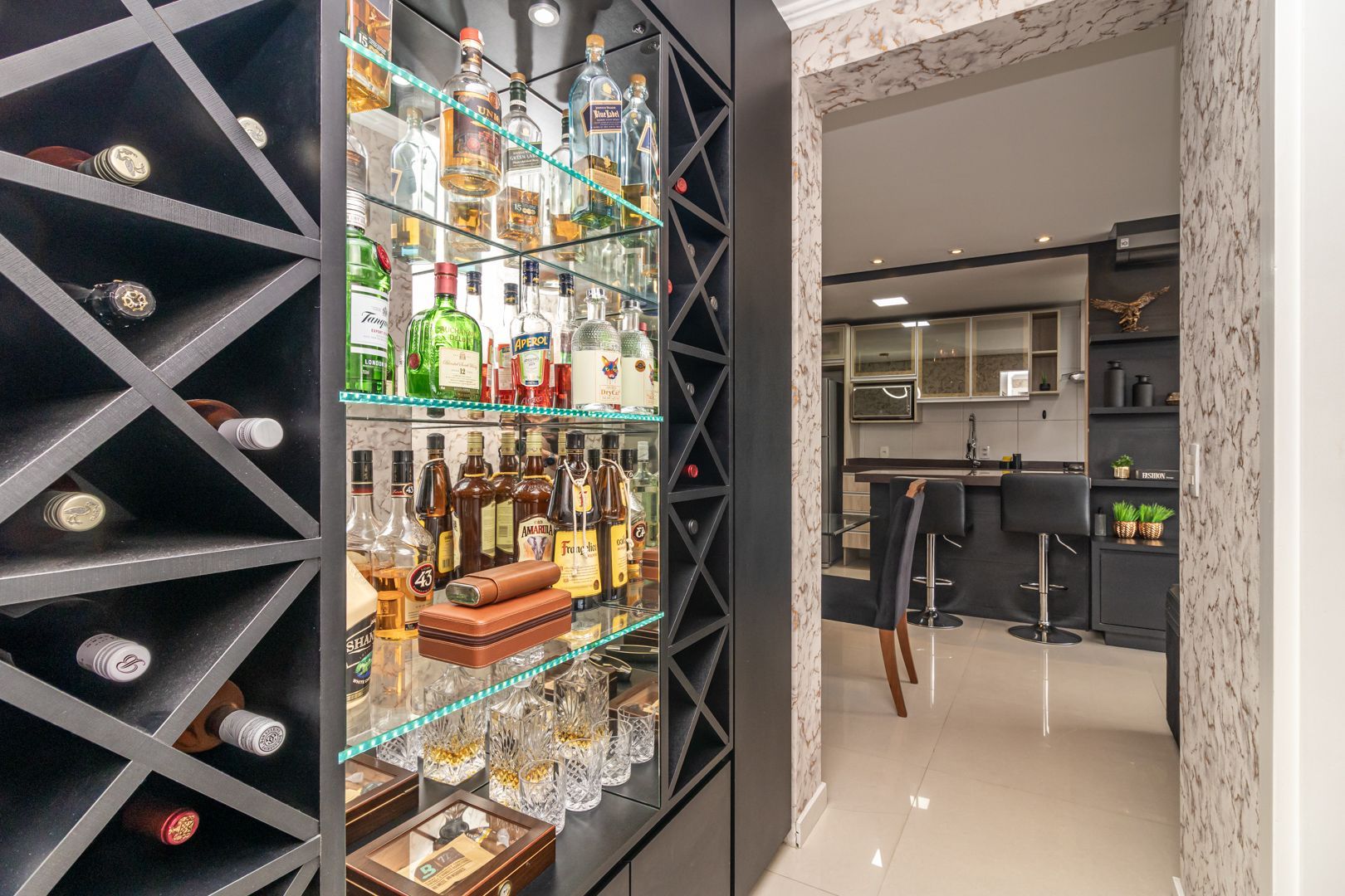 Belíssimo apartamento totalmente decorado com móveis sob medida de alta qualidade. Cozinha integrada com lavanderia, sala de estar e jantar para 6 pessoas. Bar e adega sob medida na circulação. Home office/rouparia e dormitório de hóspedes. 01 suíte com muito espaço e armários sob medida. Pedras das bancadas em quartzo marrom. 2 banheiros, sendo o social com cuba esculpida. Muito bem iluminado e ventilado, vista livre. Permanecem no imóvel todos os splits, todos os móveis sob medida, todas as luminárias, e a maioria dos eletrodomésticos.