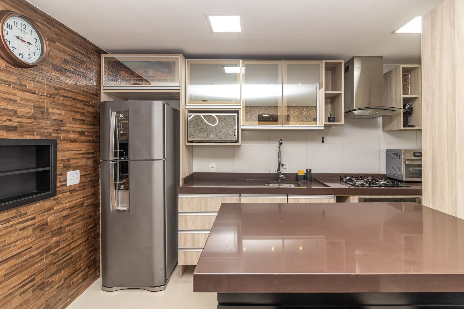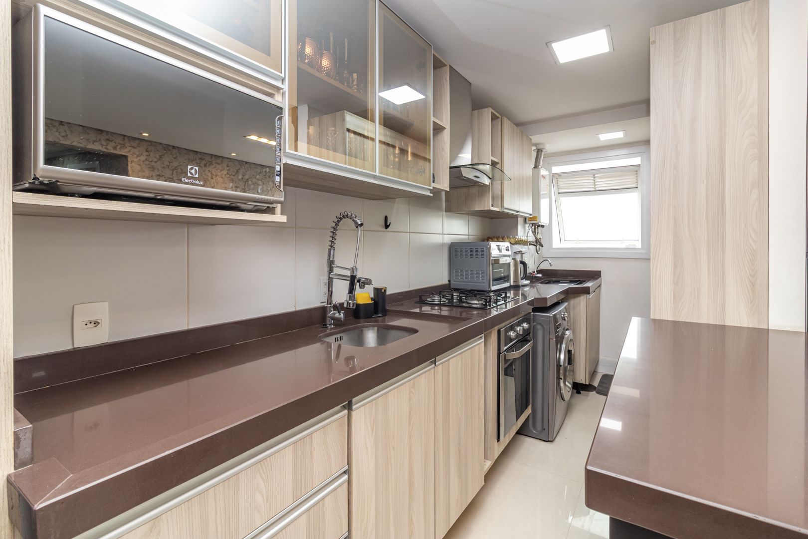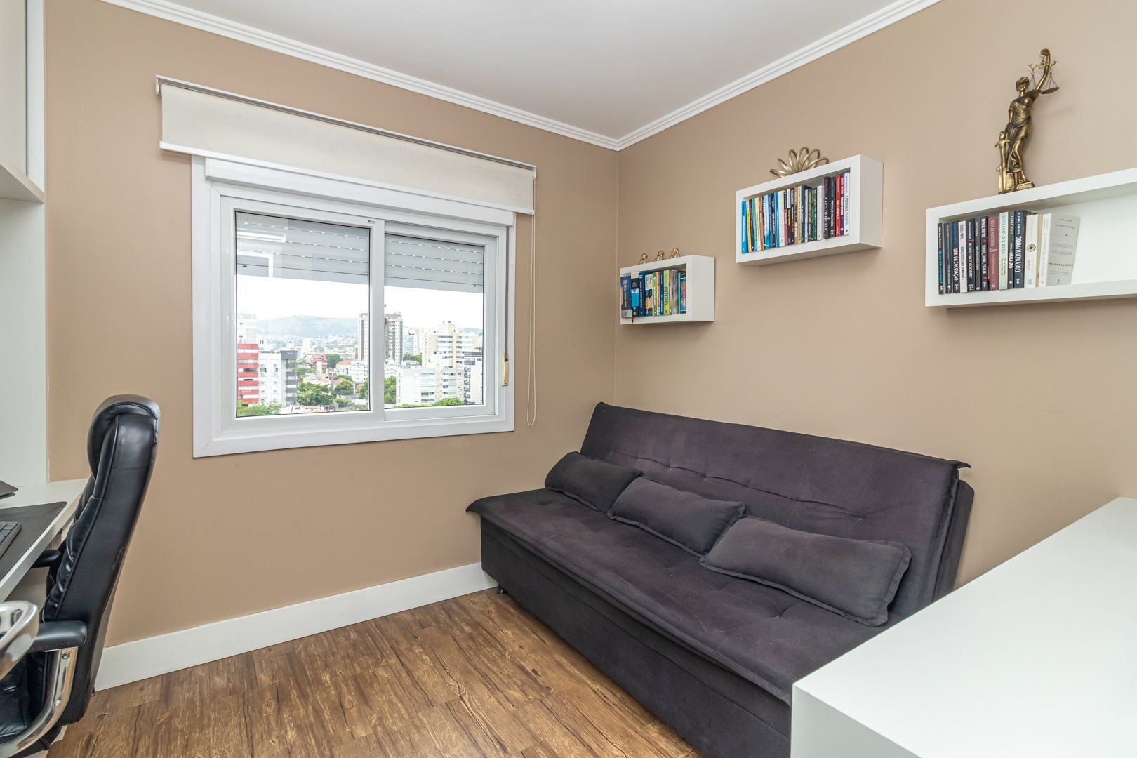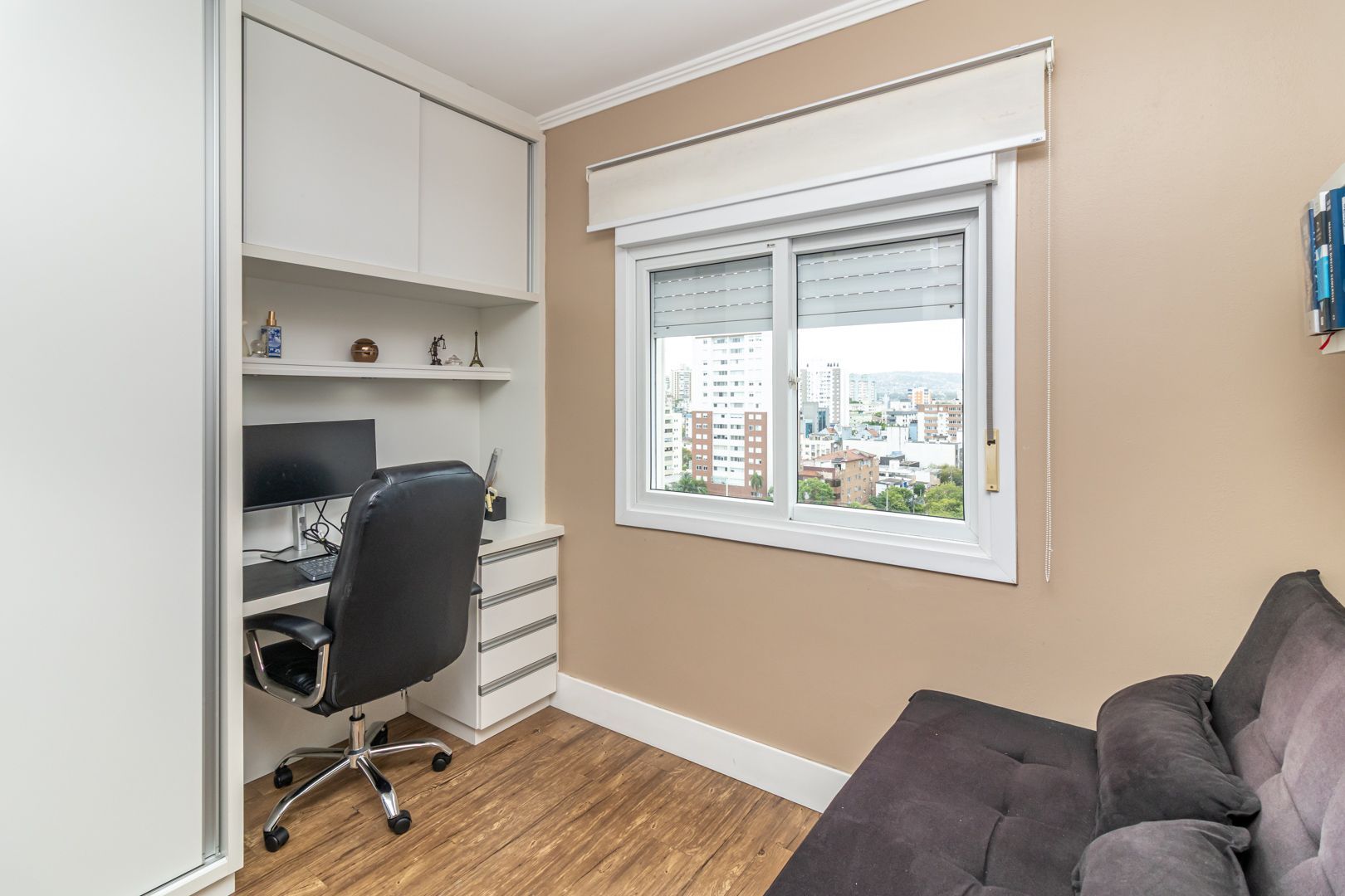 Belíssimo apartamento totalmente decorado com móveis sob medida de alta qualidade. Cozinha integrada com lavanderia, sala de estar e jantar para 6 pessoas. Bar e adega sob medida na circulação. Home office/rouparia e dormitório de hóspedes. 01 suíte com muito espaço e armários sob medida. Pedras das bancadas em quartzo marrom. 2 banheiros, sendo o social com cuba esculpida. Muito bem iluminado e ventilado, vista livre. Permanecem no imóvel todos os splits, todos os móveis sob medida, todas as luminárias, e a maioria dos eletrodomésticos.