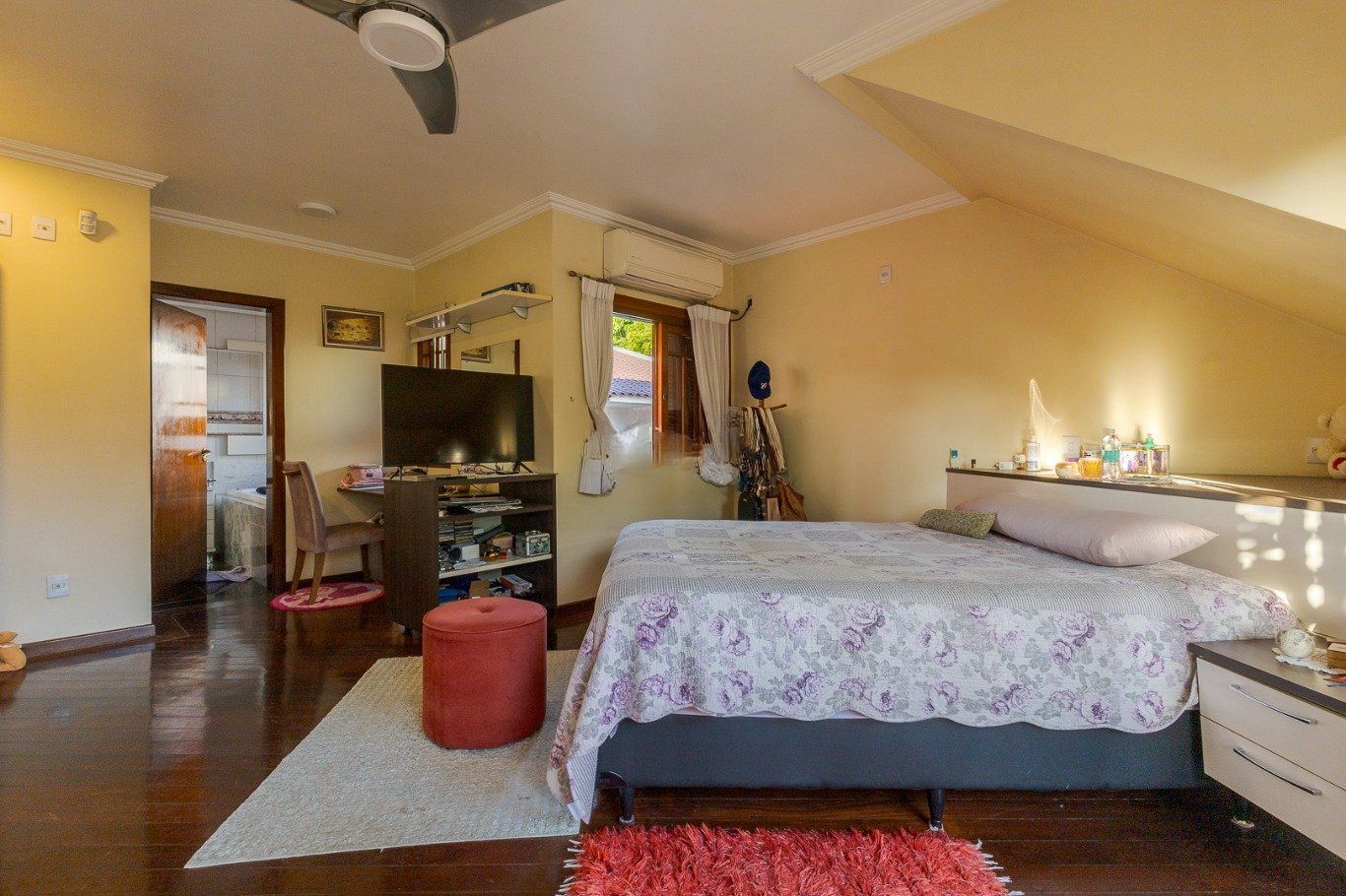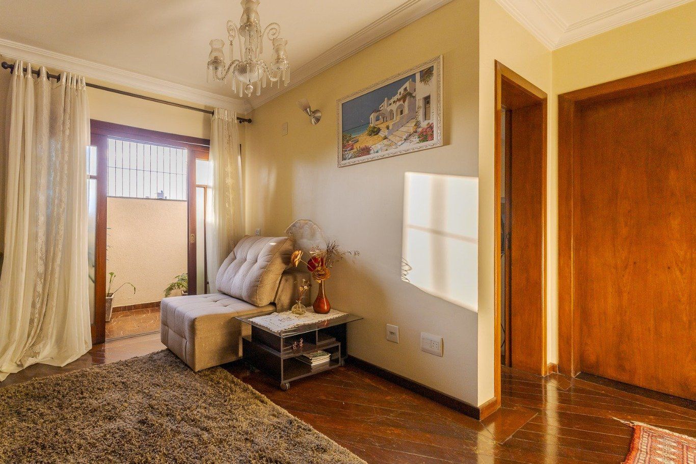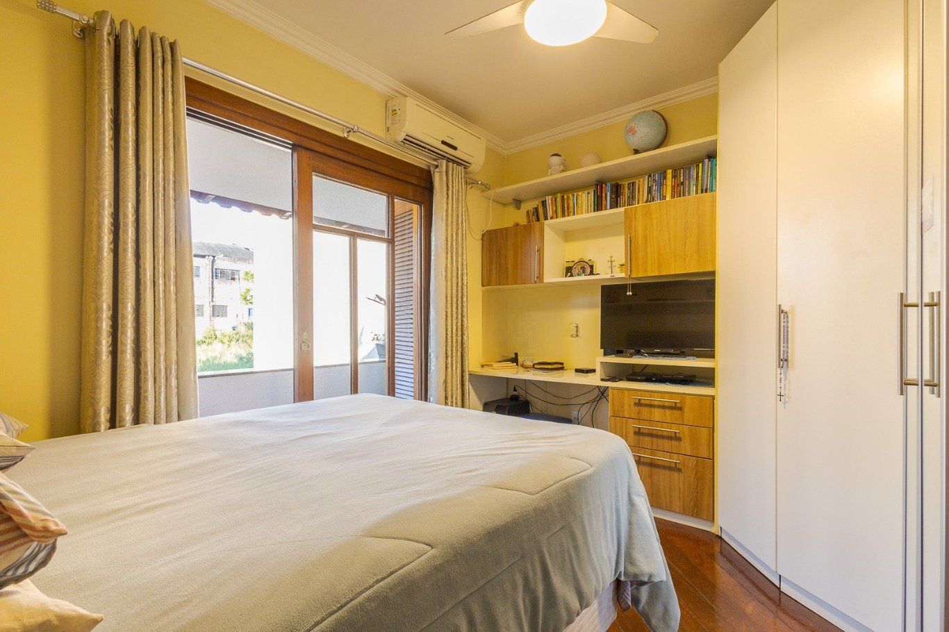 Ampla sala com diversos ambientes. Quartos planejados com sacada, uma suíte com hidromassagem, todos com aberturas grandes.