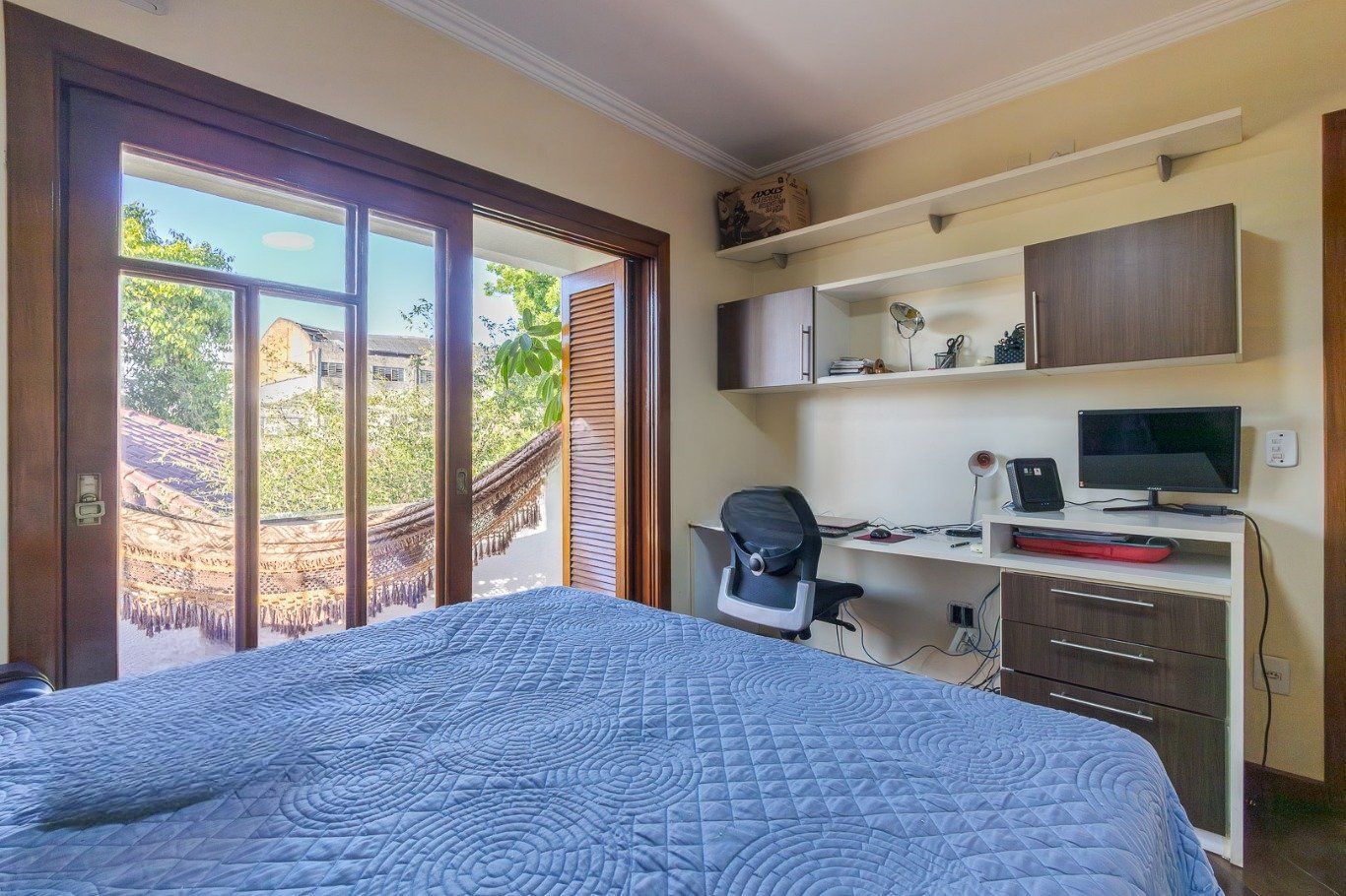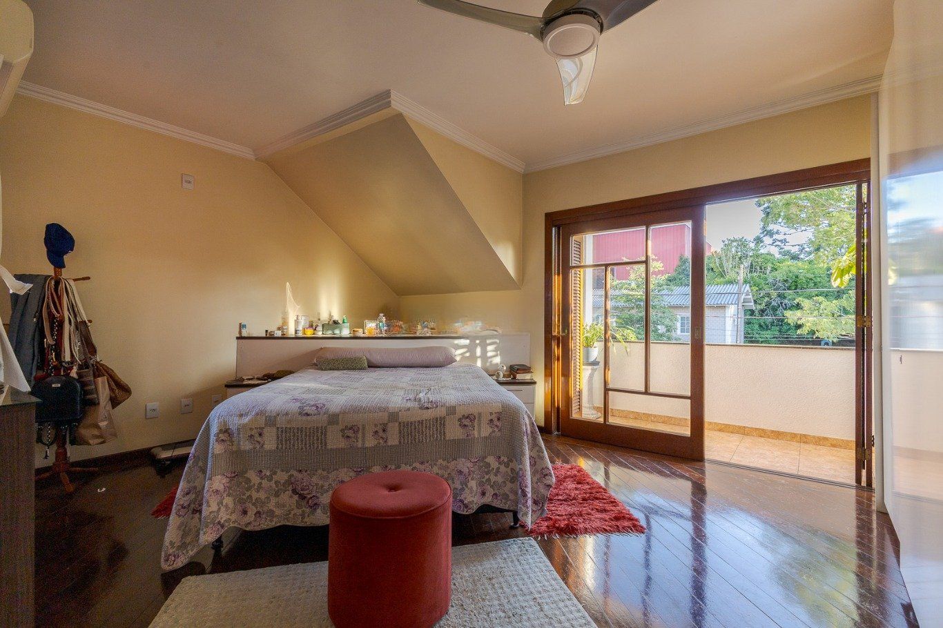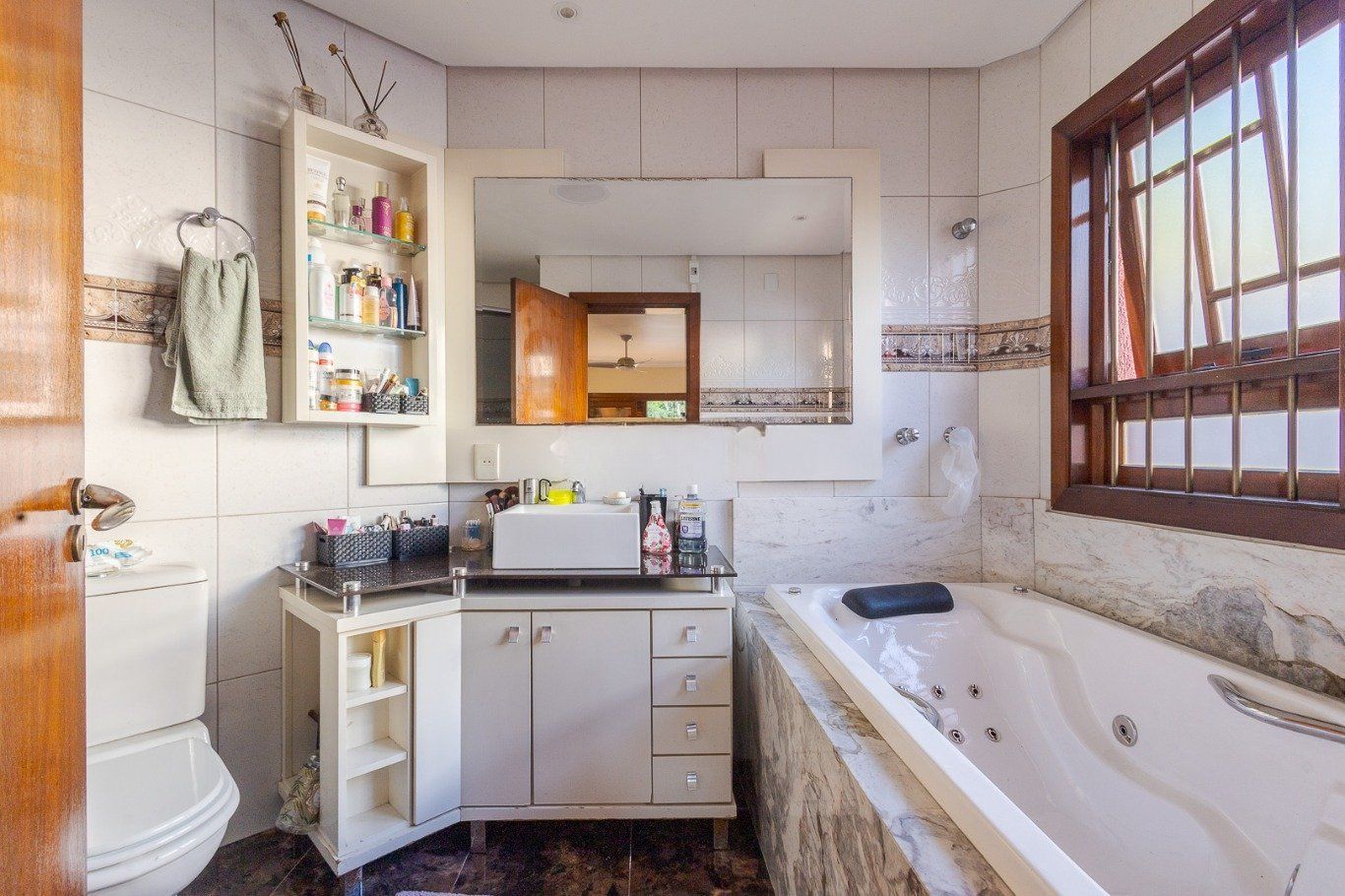 Ampla sala com diversos ambientes. Quartos planejados com sacada, uma suíte com hidromassagem, todos com aberturas grandes.