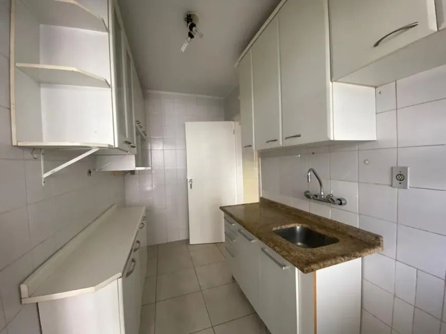 O apartamento conta com 3 dormitórios bem distribuídos, cozinha com armários, banheiro social com banheira, banheiro auxiliar, área de serviço separada e dependência de empregada, oferecendo praticidade e funcionalidade no dia a dia.