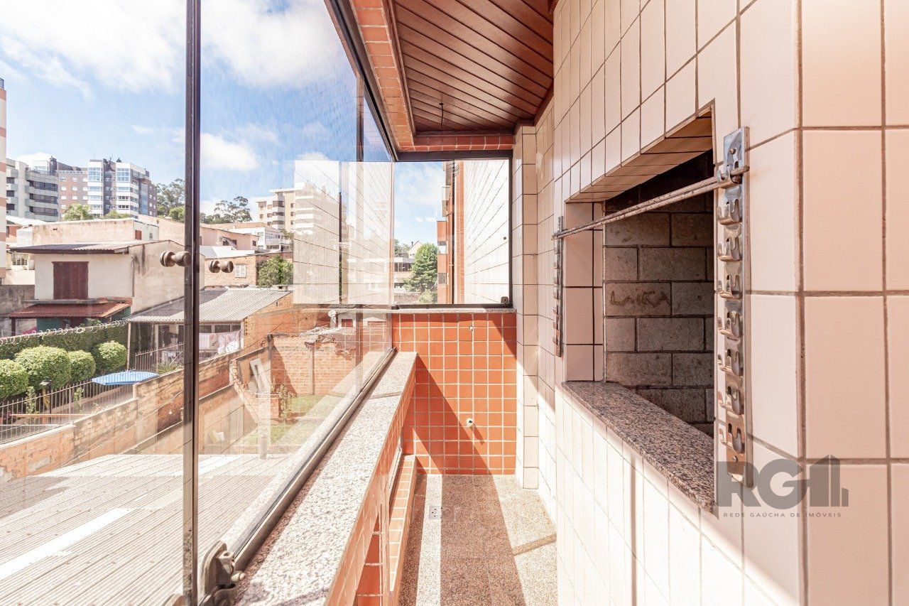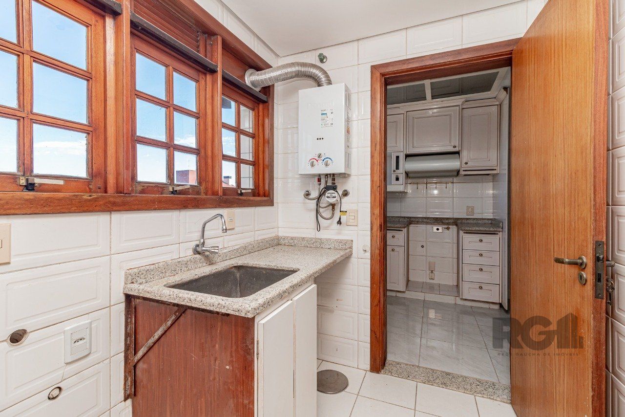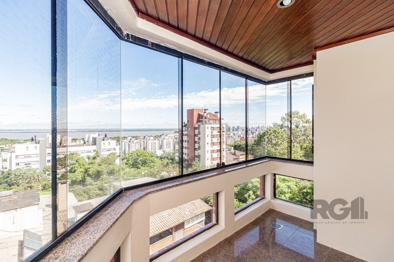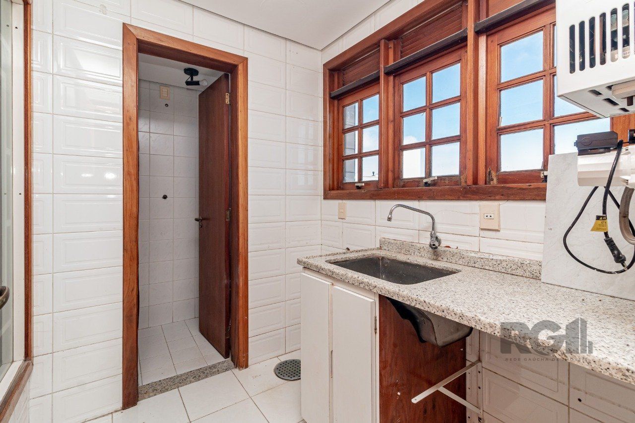 Ampla cozinha e copa, área de serviço , sacada com churrasqueira e vaga coberta para veículo. Localizado nos altos do Bairro Menino Deus, na rua Barão do Cerro Largo.