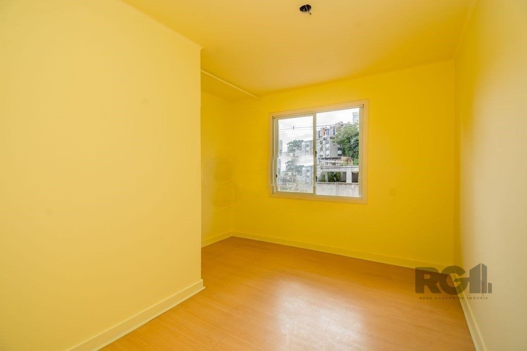 Ótimo apartamento de dois quartos semi-mobiliado na Avenida Mariland, Porto Alegre, com cozinha reformada e equipada com armários, área de serviço, living para dois ambientes, sacada e banheiro social.