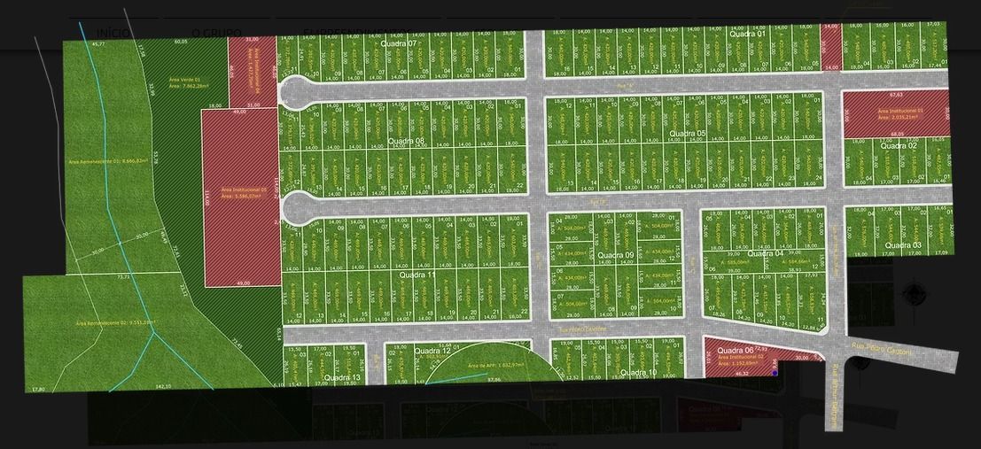 Infra estrutura toda feita com terraplanagem, rede de água, rede de drenagem pluvial, rede de esgoto sanitário, rede elétrica e pavimentação.
